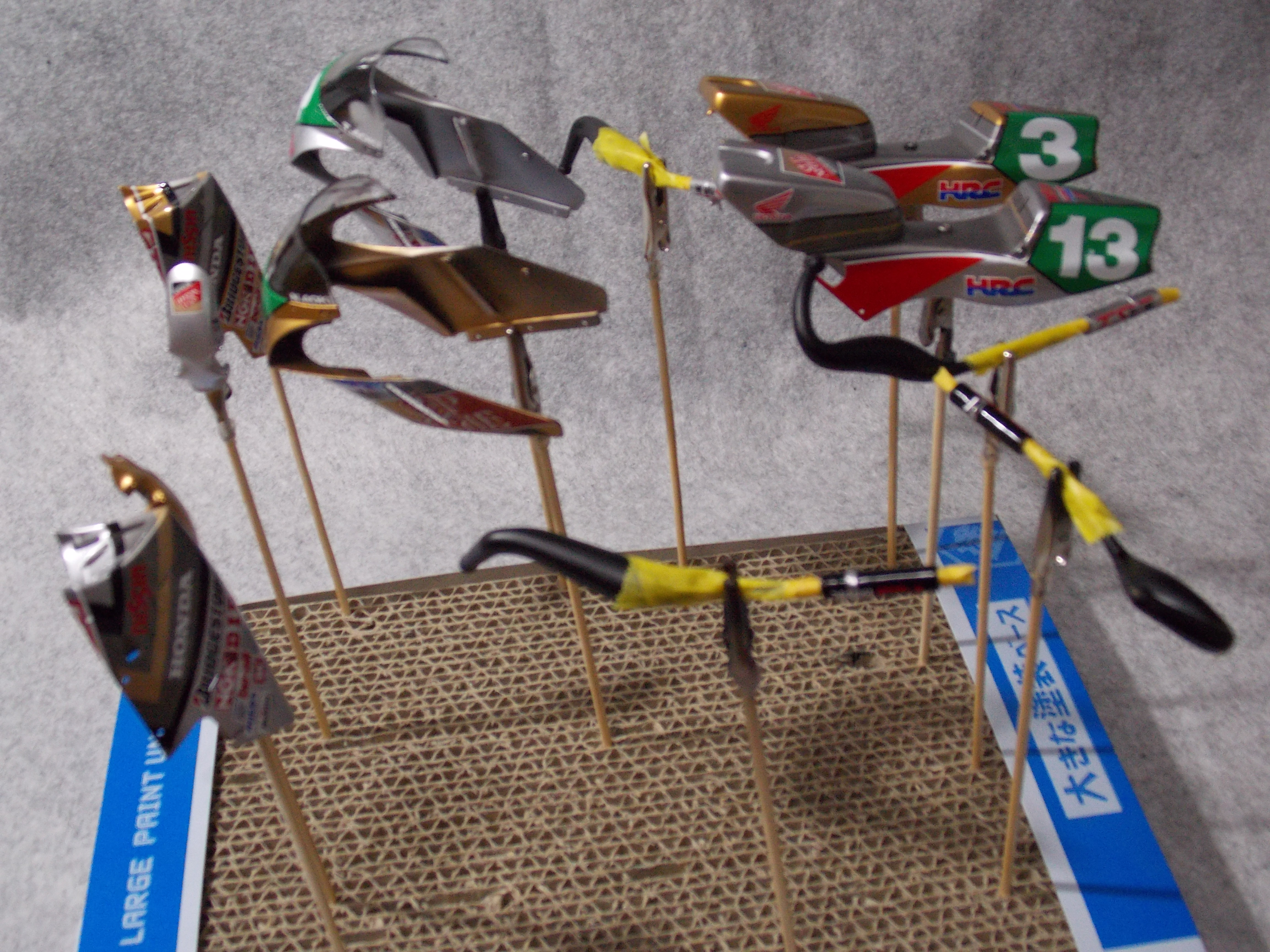 #12 1/12 CUP NOODLE HONDA NSR250(デカール貼り編) チョットだけパーツを接着。 デカールを貼りました。 8時間くらいかかってデカールを貼るを貼り終えました。 銀の方しか貼れなかったです。 所々気に入らない所もありますが良しとしときます。 次は金の方です。 今日はここまで。