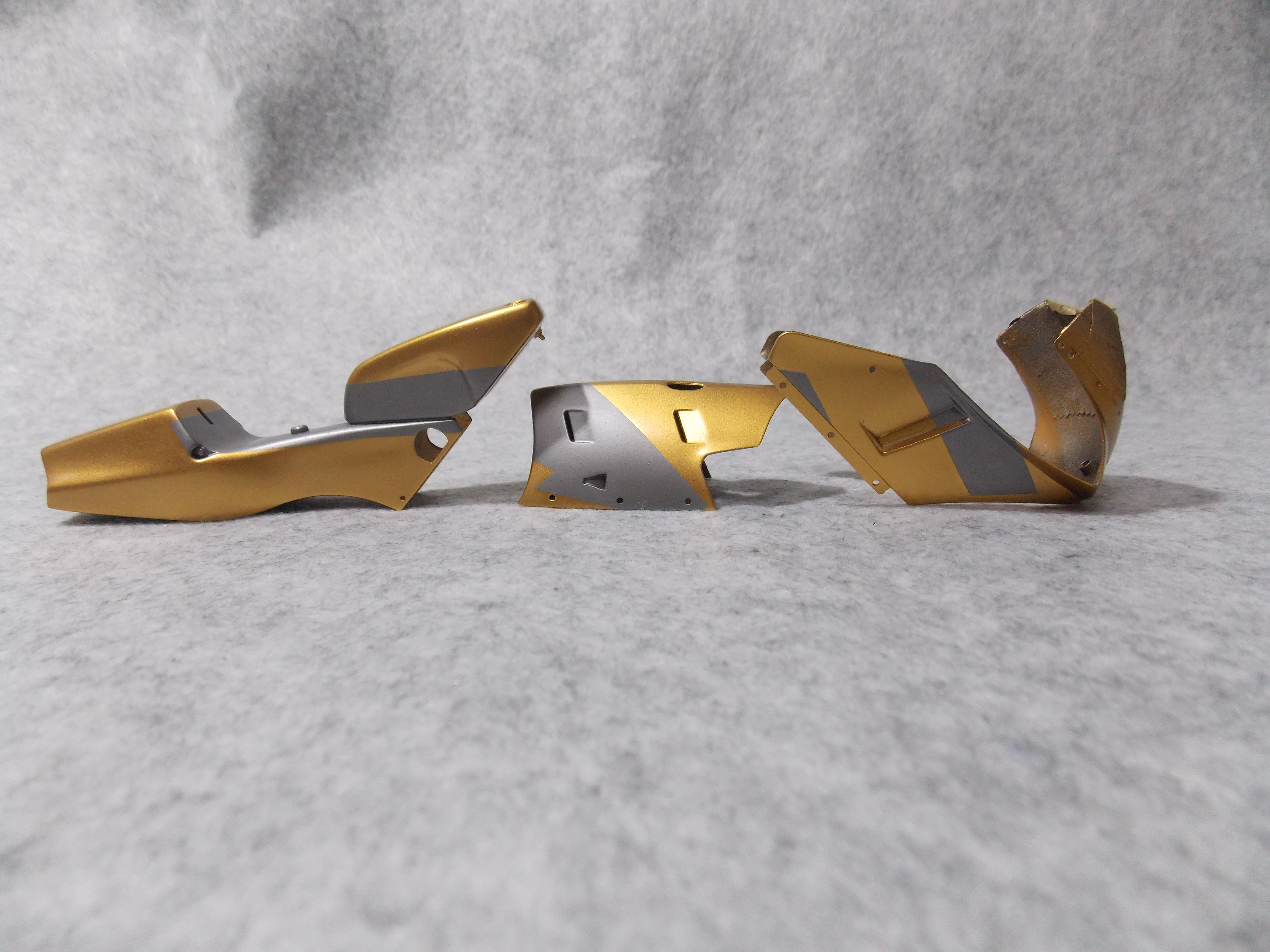 #10 1/12 CUP NOODLE HONDA NSR250(塗分け塗装編) 付属デカールをスキャンして、ステカでマスキングシートをカットして、塗分け部分にマスキング。 シルバーと黒鉄色を1:2で調合して塗分け。 こちらも同様に塗分けました。 後日、デカールを貼っていきます。 今日はここまで。