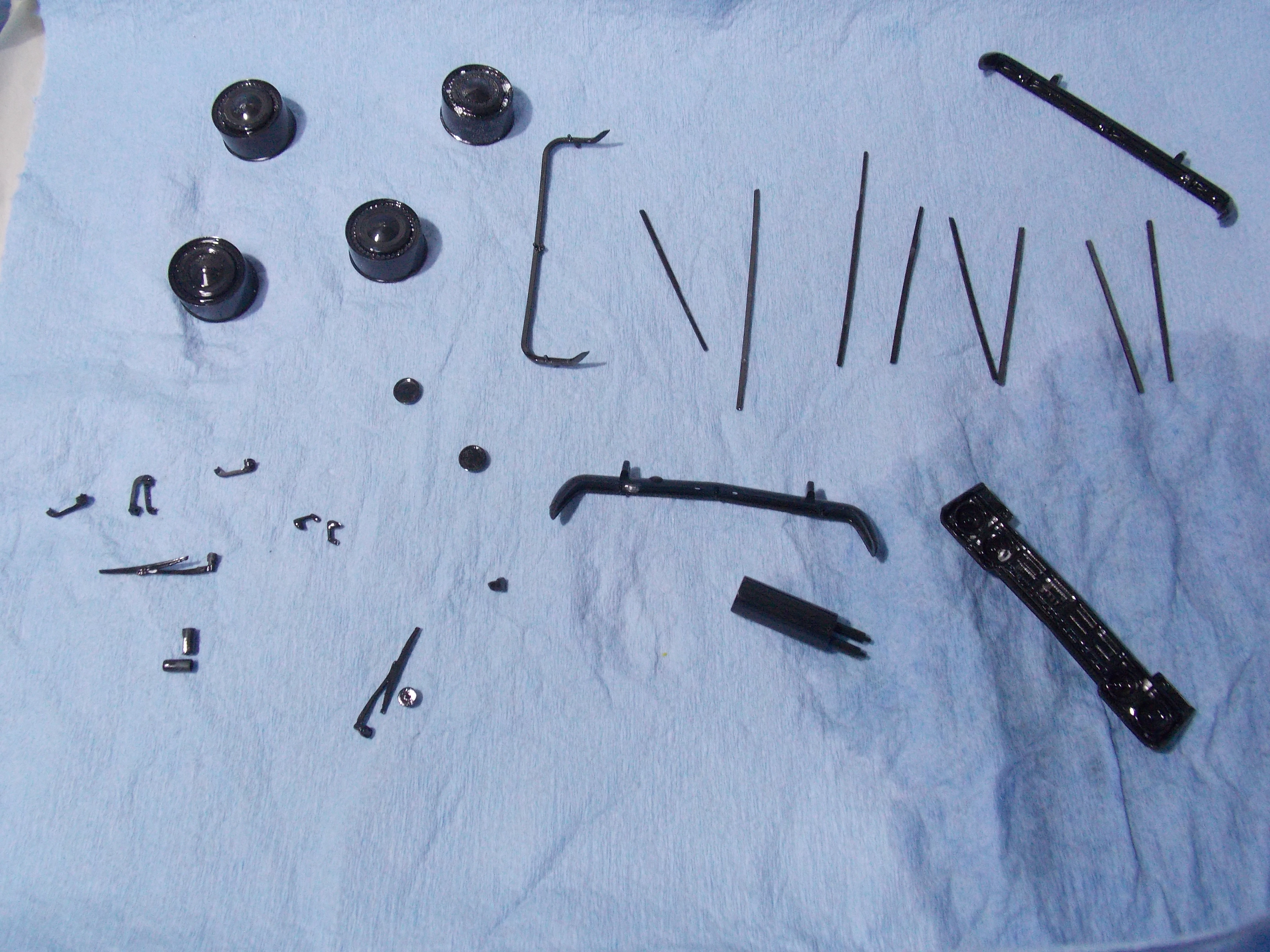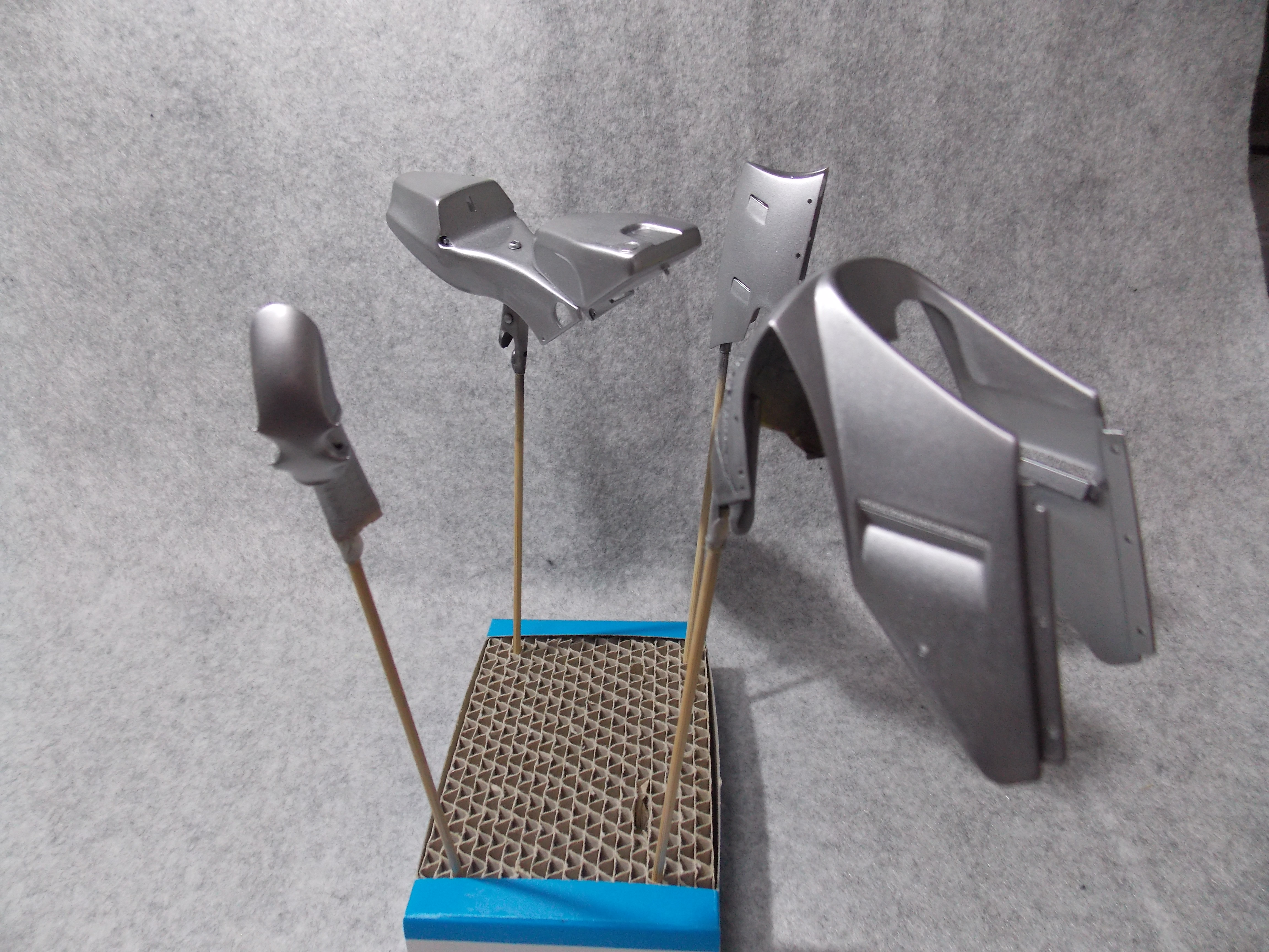 #3 1/24 SKYLINE 2000GT-B(S54B) (塗装&メッキ剥がし編) 一部最初からメッキの部品が剥がれていたので、漂白剤で一旦メッキを剥がします。 その他の部品はクレオスのセミグロスブラックで塗装。 ボディーの方は、#800の紙やすりで表面を整えて、水洗い後グレーサフを塗装。 今日はここまで。