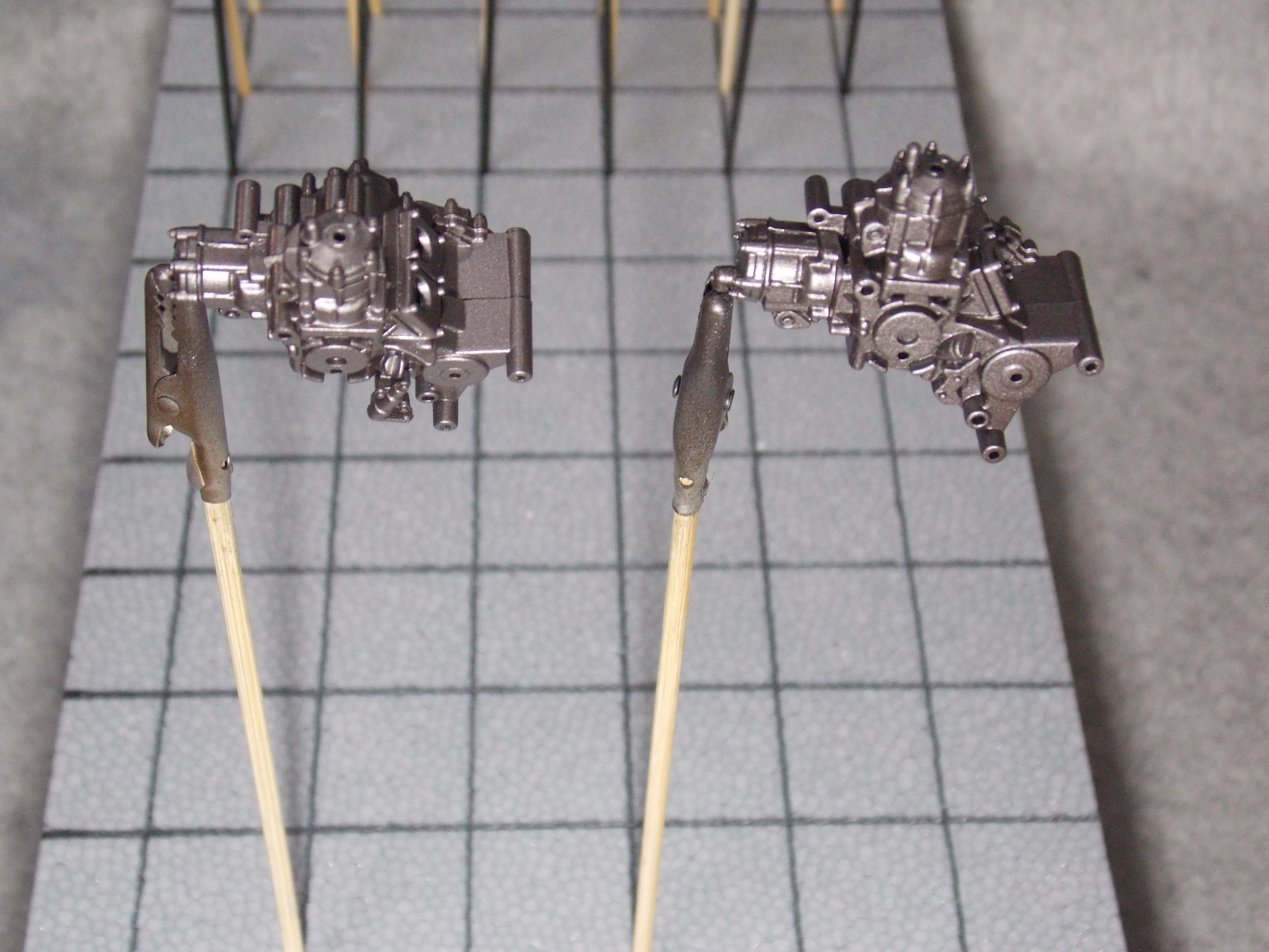 #2 1/12 CUP NOODLE HONDA NSR250(本塗装) シルバー系を塗る前にクレオスのウイノーブラックを塗装しました。 フィニッシャーズのクロームシルバーを塗装しました。 エンジンブロックを塗装しました。 今日はここまで。