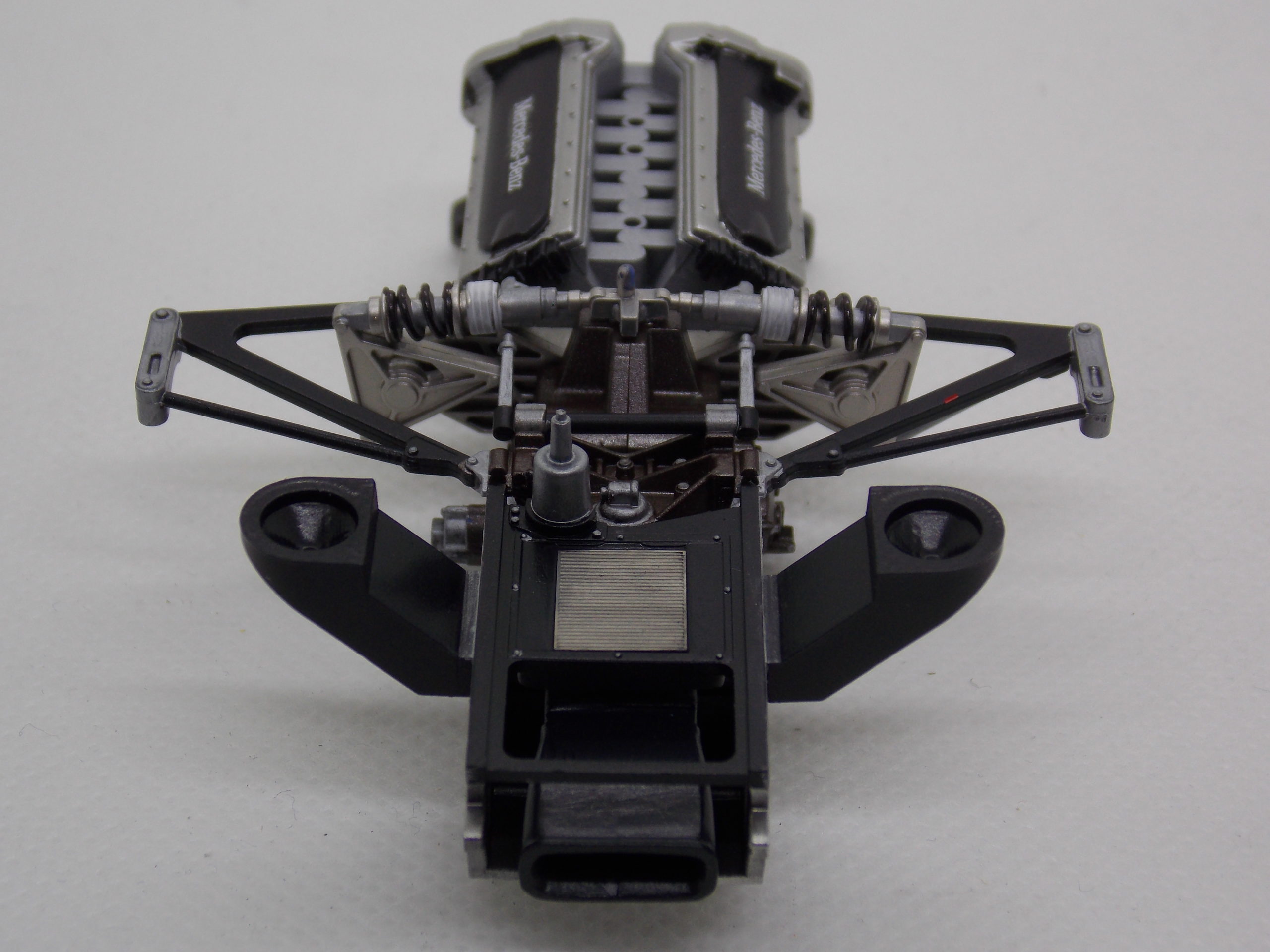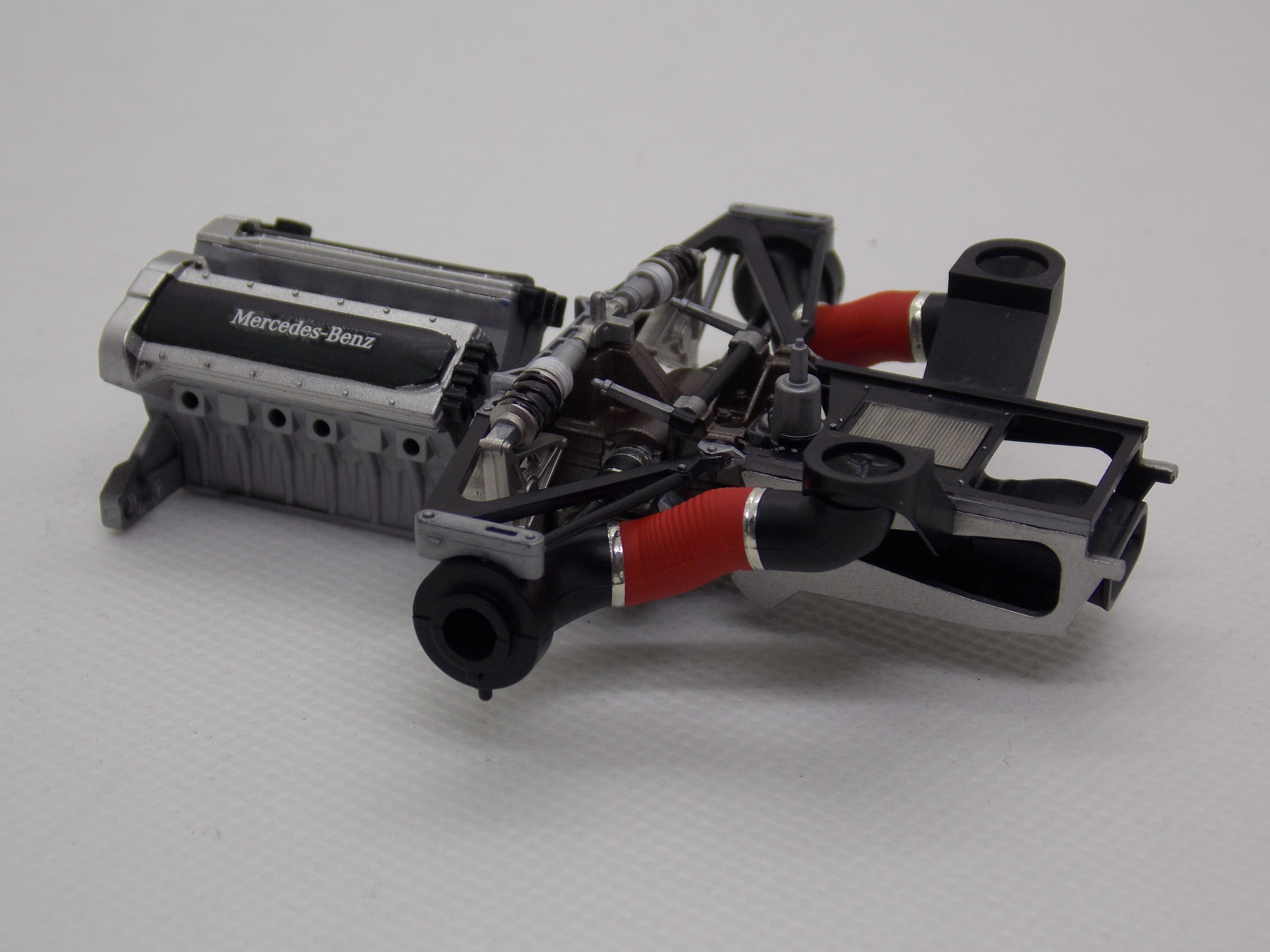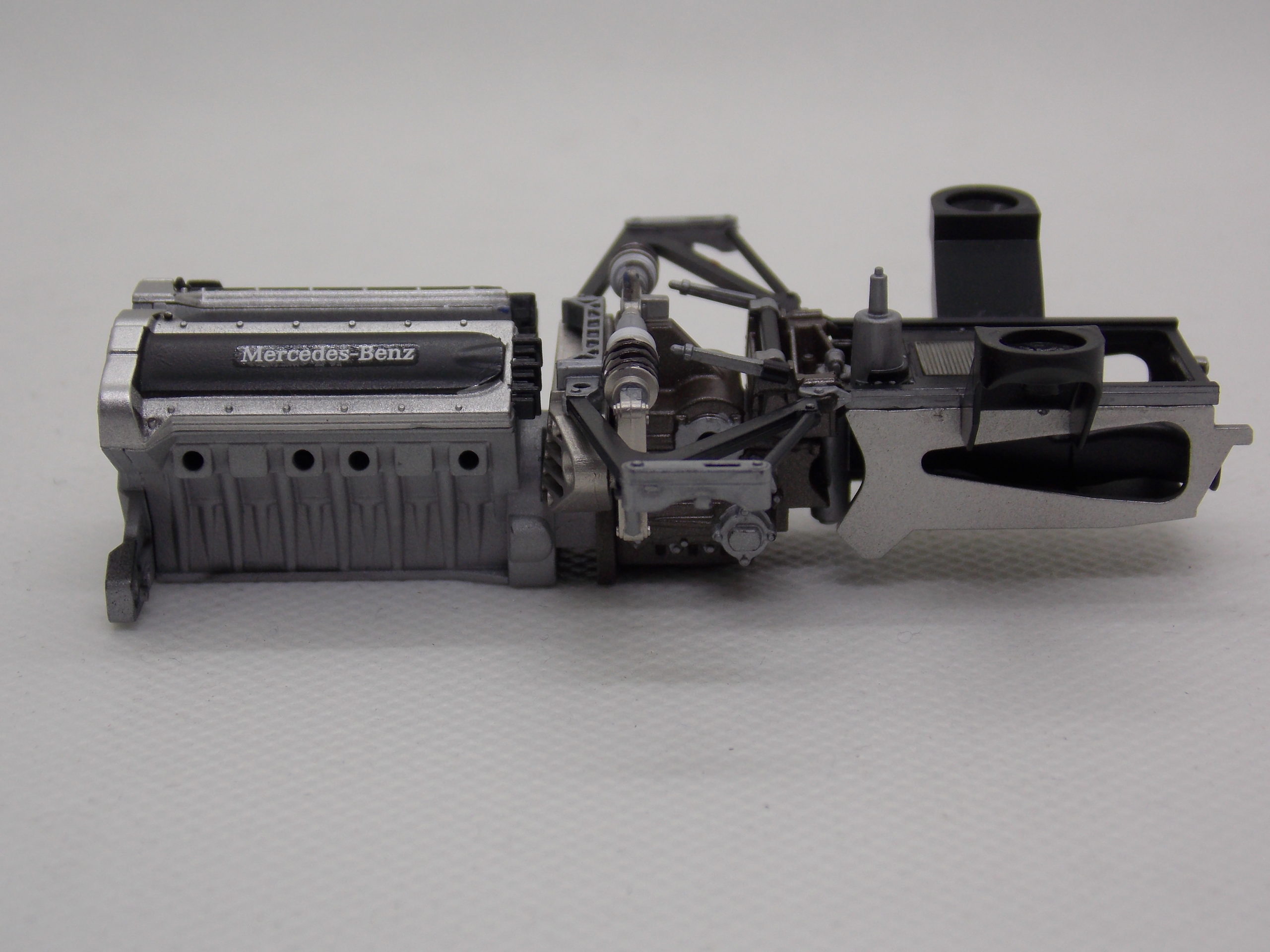 #6 1/24 Mercedes CLK-GTR Original-Teile (塗装&組み立て編) #800のスポンジヤスリでサンディング後、グレーサフを塗装。 塗分けしてエンジンを組み立てました。 インストの一番が完成しました。 デカールはまだ貼れていません。 今日はここまで。
