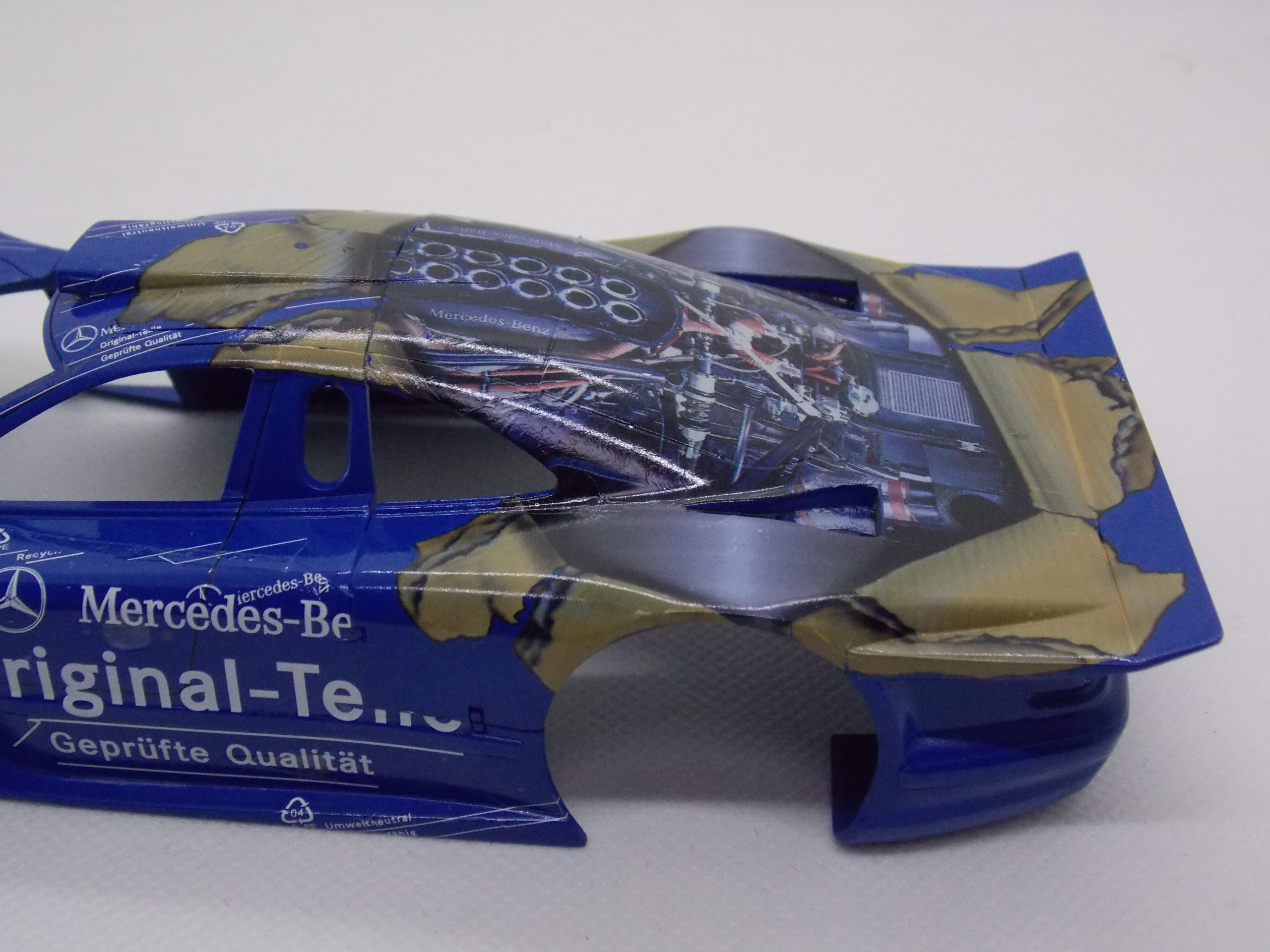 #9 1/24 Mercedes CLK-GTR Original-Teile (塗装&組み立て&デカール編) インストの⑥コックピットのくみたてをしました。 一部、大判デカールを貼りました。 一部破れてしまいました。 後ろの大判デカールを貼るのに悪戦苦闘です。 貼る順番を間違えて大判デカールを先に貼ってしまった。 文字の方が下にくるみたいです。 今日はここまで。
