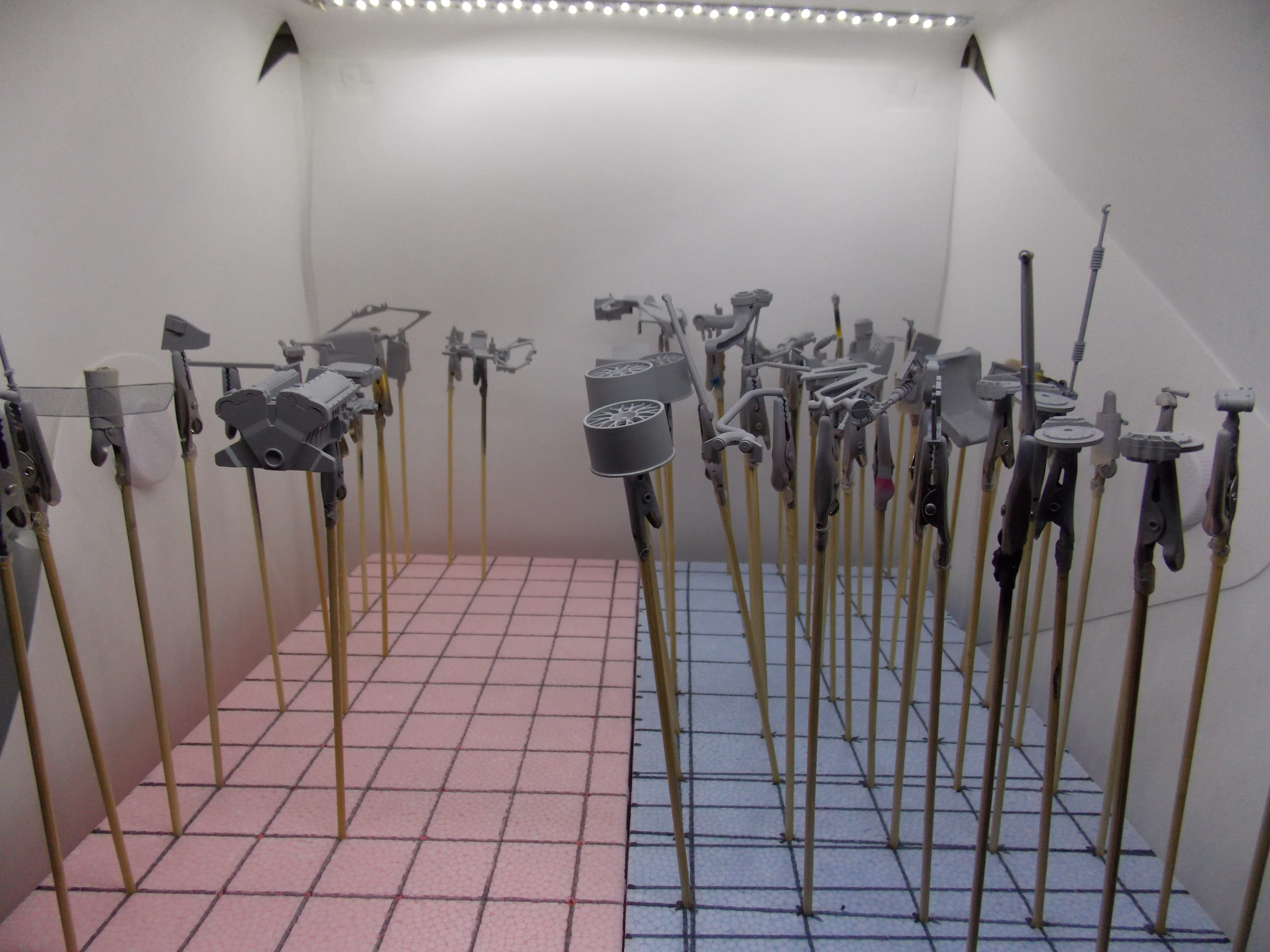 #3 1/24 Mercedes CLK-GTR Original-Teile (塗装準備編) 裏表に黒サフを塗装しました。 全てのパーツに持ち手を付けました。 次回から塗装をしていきたいと思います。 今日はここまで。