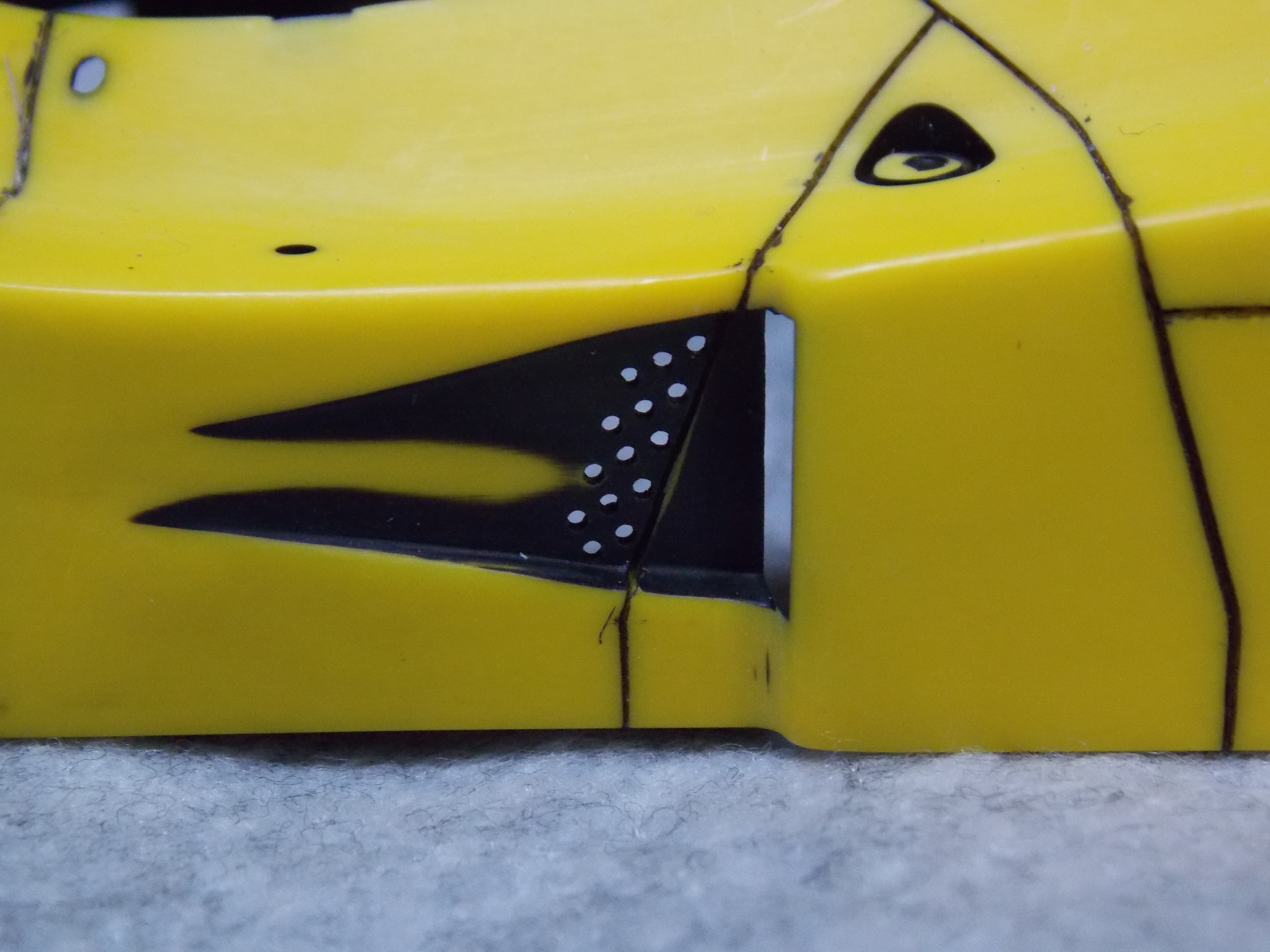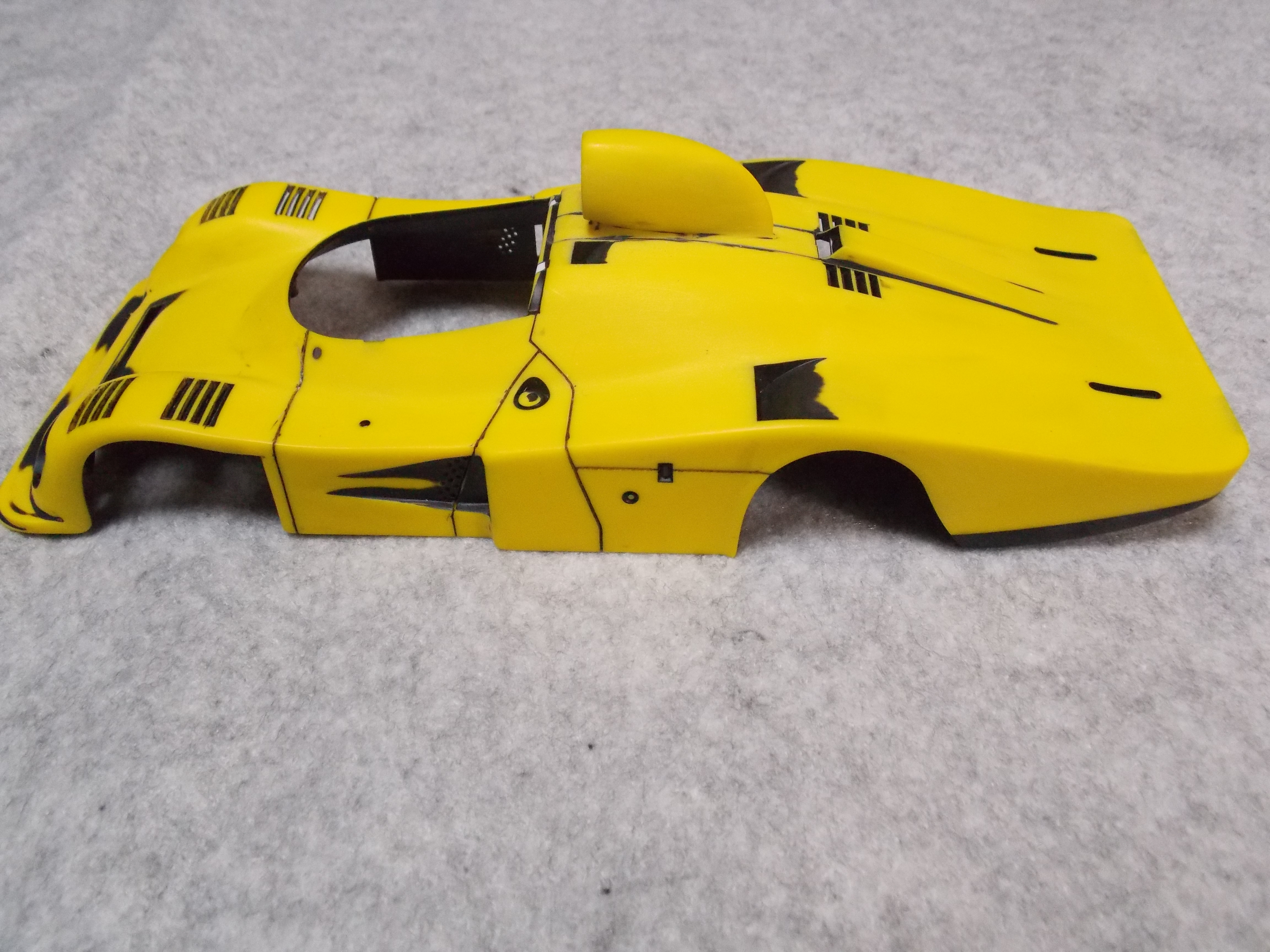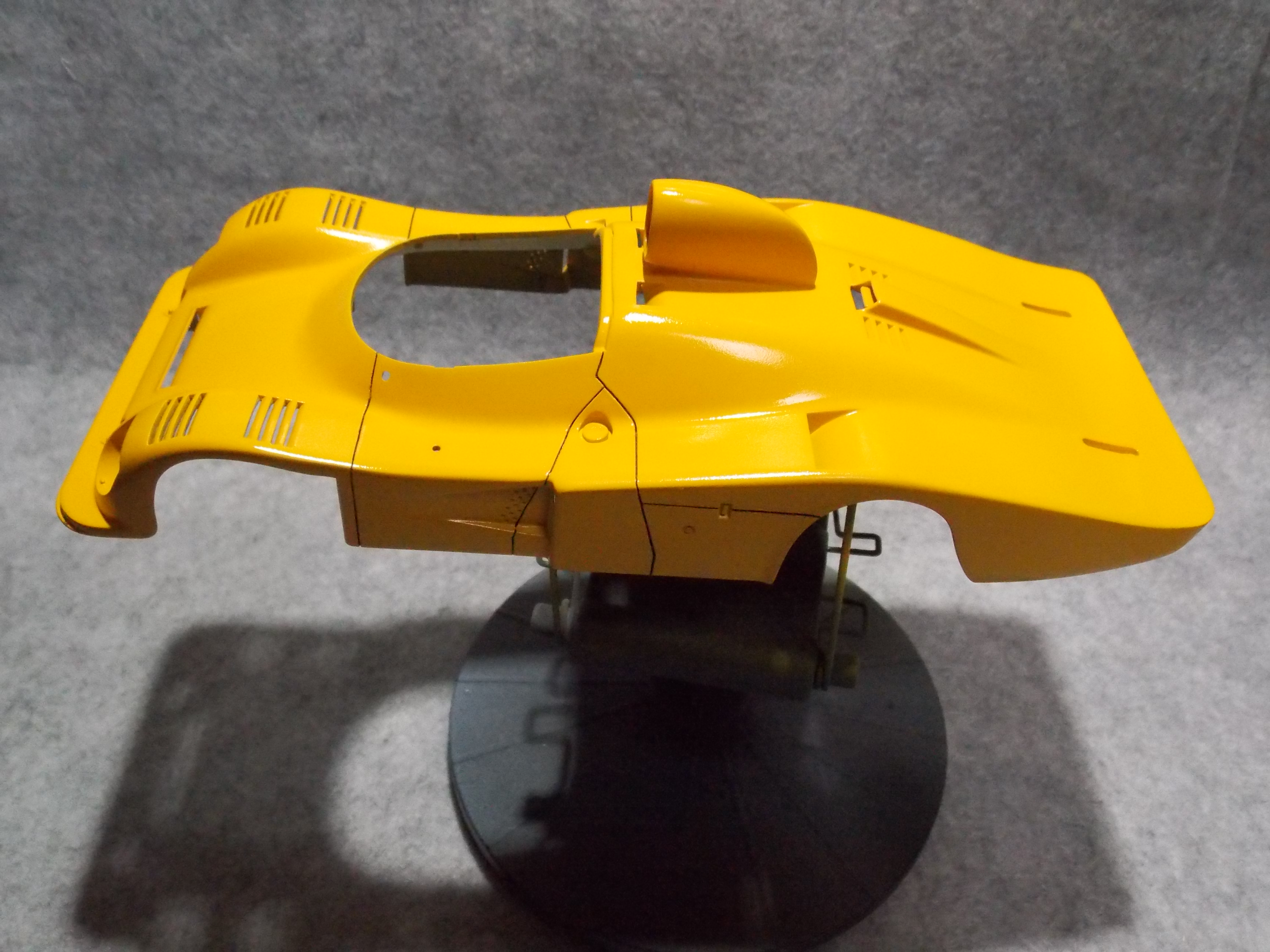 #2 1/24 ALPINE RENAULT A442B TURBO(本塗装) グレーのサフを塗装して状態に問題がないか確認。 そのあと白サフを塗装。 問題を修正後、白サフを塗装してフィニッシャーズのミディアムイエローを塗装。 横からのアングル。 リアウィングも同様にミディアムイエローを塗装しました。 今日はここまで。