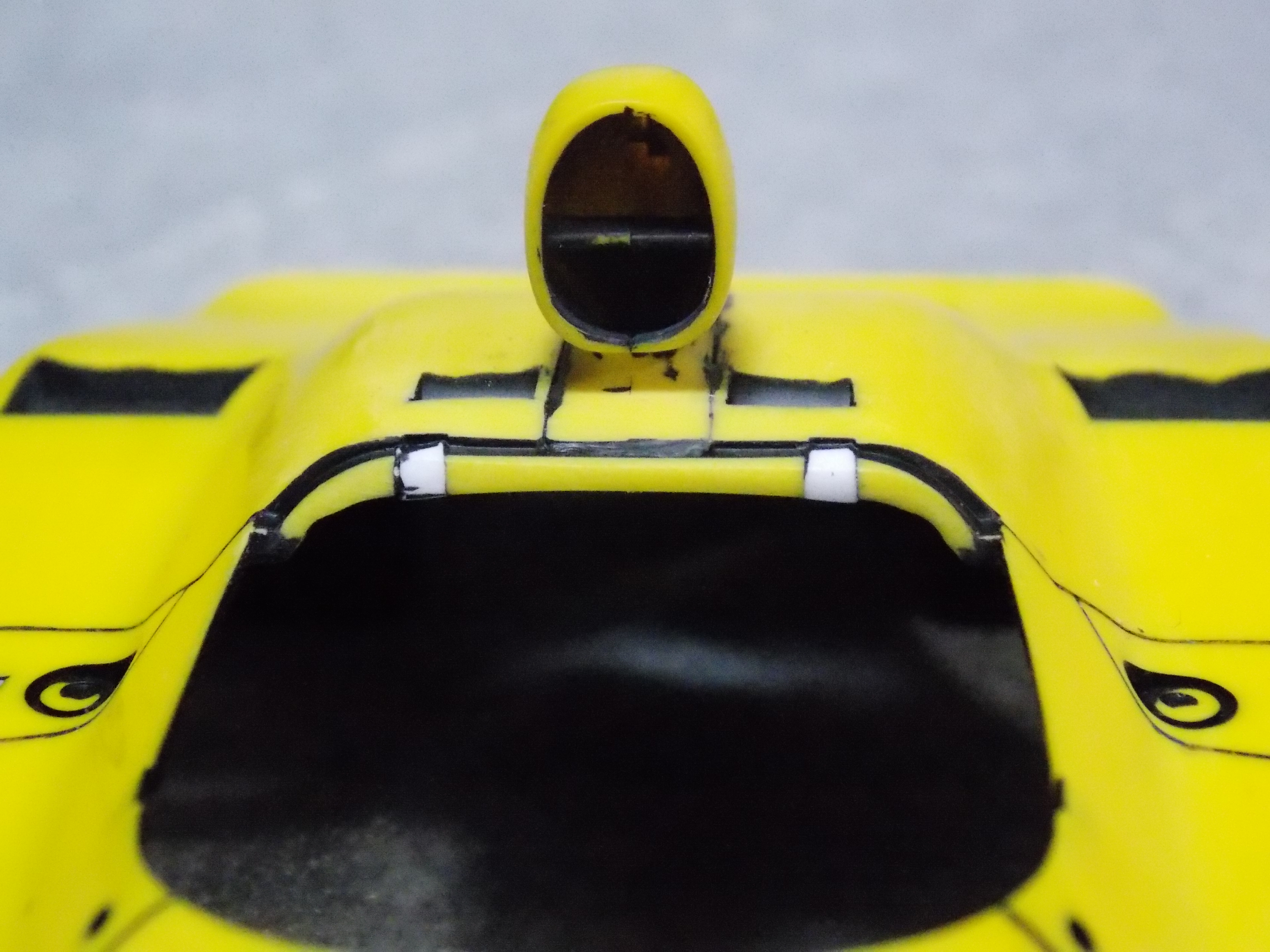 #1 1/24 ALPINE RENAULT A442B TURBO(下地処理) ALPINE RENAULT A442B TURBOを製作していきます。WEBの製作日記を参考に製作していきます。 このキット、モーターライズなのでシャーシにモーターとか電池ボックスなどあったので、それらを削り取りました。 適当にコックピットを製作。 シャーシの裏面もスイッチの穴が開いていたのでプラ板で塞ぎました。 リベットがあったのですが、削るのに邪魔だったので削りました。 裏なんてどうせみえないので・・・。 黒サフを塗装後、ペーパーで一枚皮を削った状態。 白い所は切りかけがあったので埋めました。 Φ0.7のドリルで穴をあけました。 スリットもあけました。 ほとんど見えないのでやらなくてもよかったかも。(自己満足) 今日はここまで。