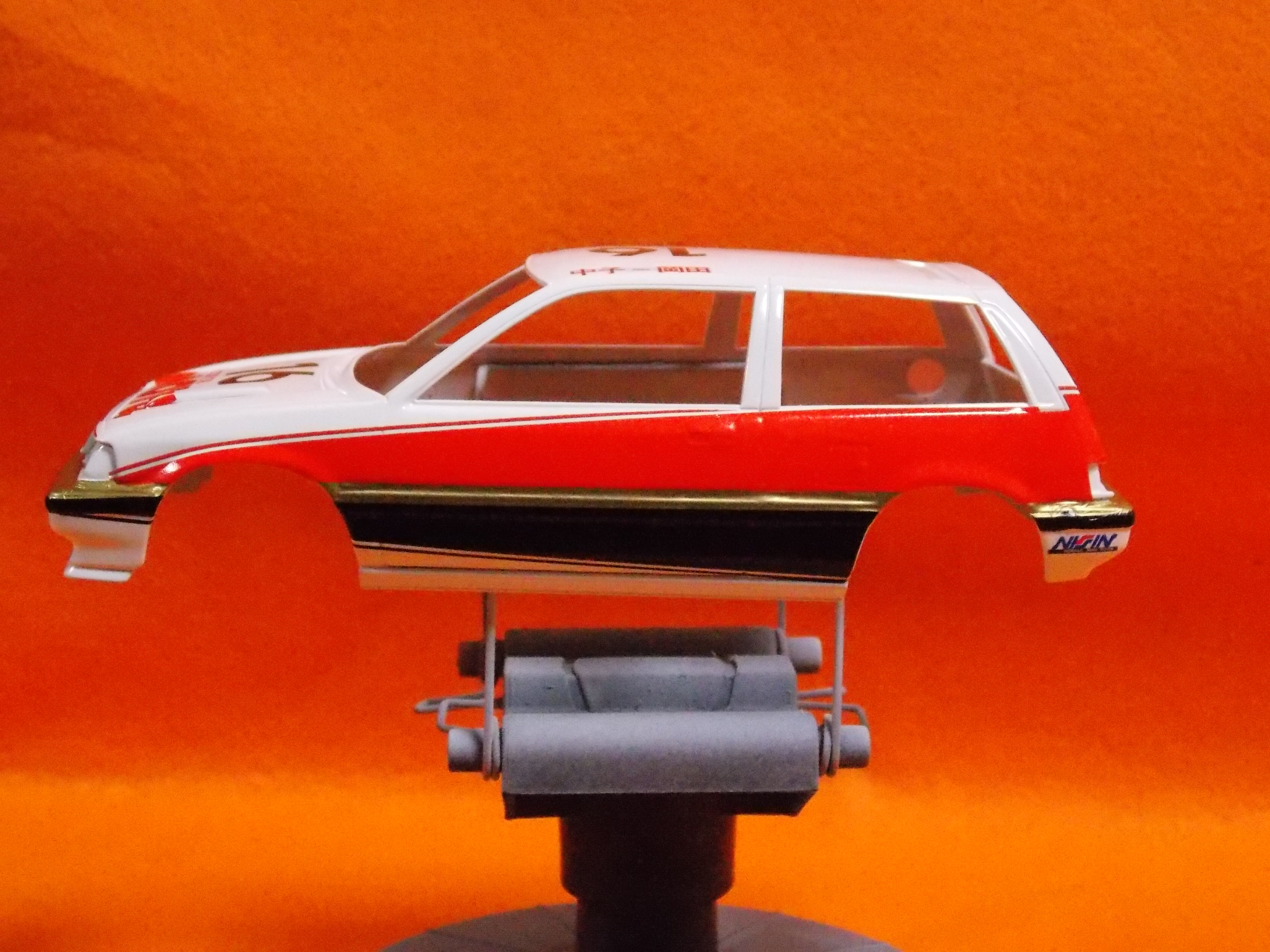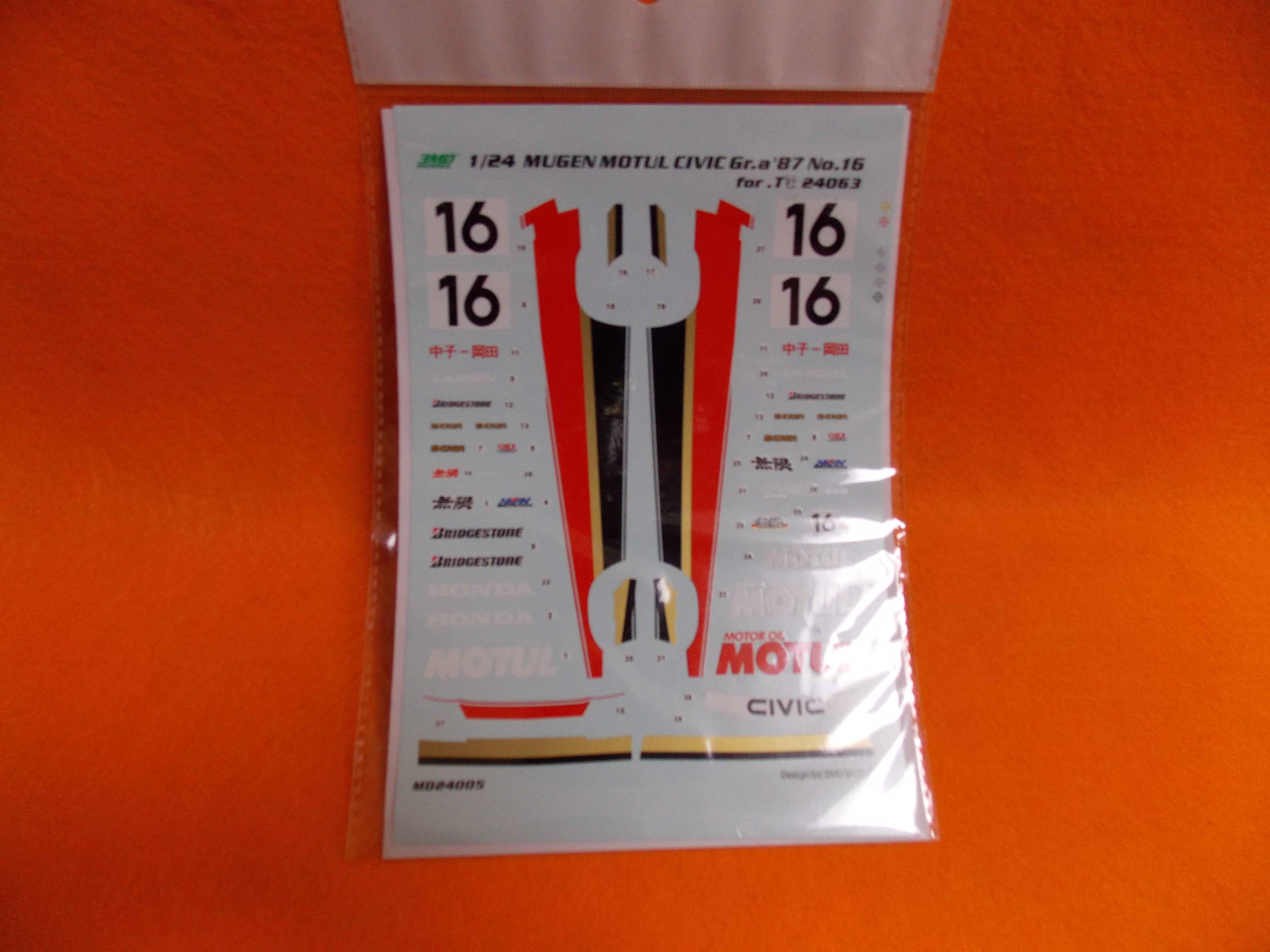 #12 1/24 HONDA MUGEN CIVIC Si Gr.A RACING(本塗装&デカール編) 本塗装をしました。 デカールを貼っていく前に、貼りやすいようにクリアーを吹きました。 付属のデカールは使えそうにないので、3MD MODELのデカールを使用。 ここまで貼りました。 湾曲したところは軟化剤や半田小手に濡らした綿棒を押し当て、綿棒が温まったらデカールに押し当てて馴染ましました。 少し浮いてるところは乾燥後修正していきます。 今日はここまで。