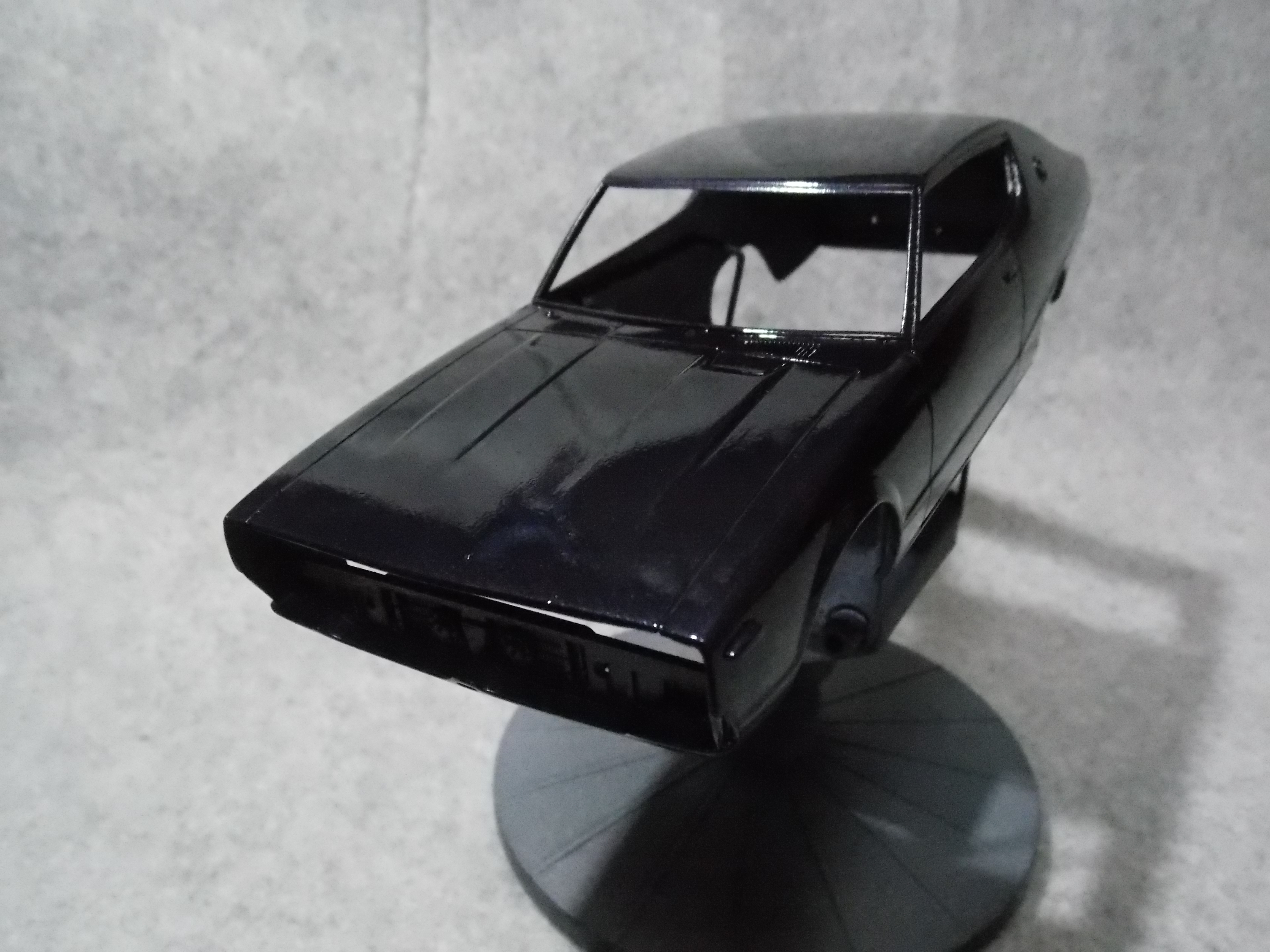 #4 1/24 SKYLINE 2000GTX-E・S GC111 ’76(本塗装&クリアー塗装編) 一応、ダークブルーメタリック(#364)を塗装しました。 板金屋の弟に頼んで色を調色してもらったのだが。 写真だと黒にしか見えないな。 ちょっと青っぽいかな。目視では暗い青になっています。 クリアーを3回に分けて塗装しています。 今日はここまで。