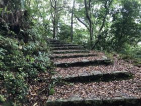 神社の横を通り過ぎて上るところを発見。次は上ったり下ったりでひたすら歩きました。