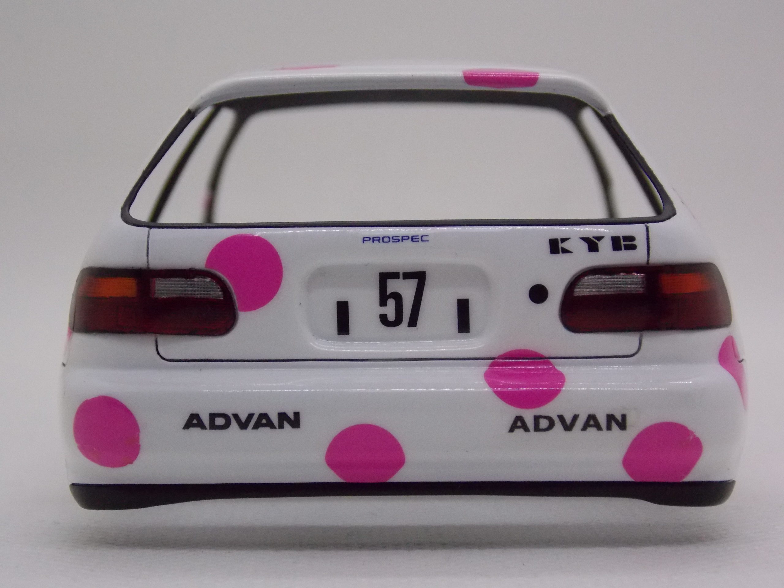 #8 1/24 のりピー♥CIVIC (完成) 完成しました。残っているパーツを接着して、シャーシと合体。 前面。 左横。 後面。 右面。 完成はしたけどいまいちな出来です。 後日、完成写真を撮影します。