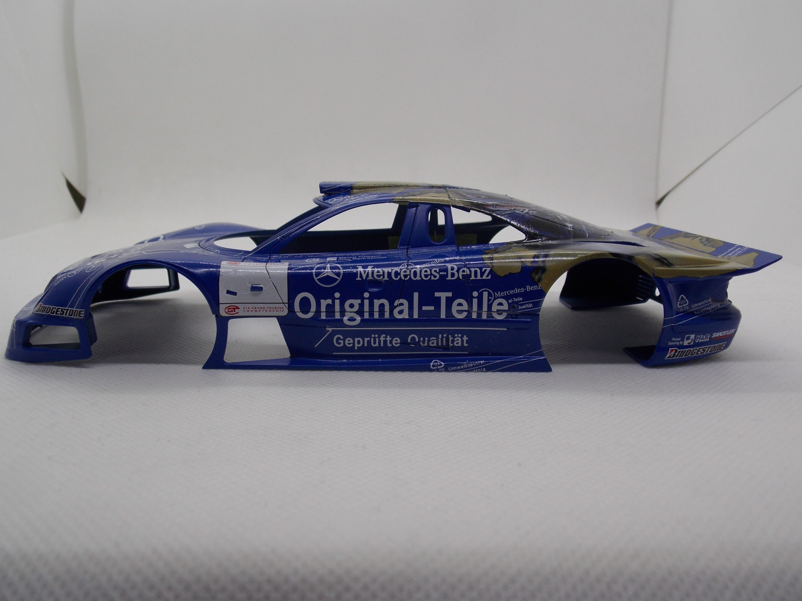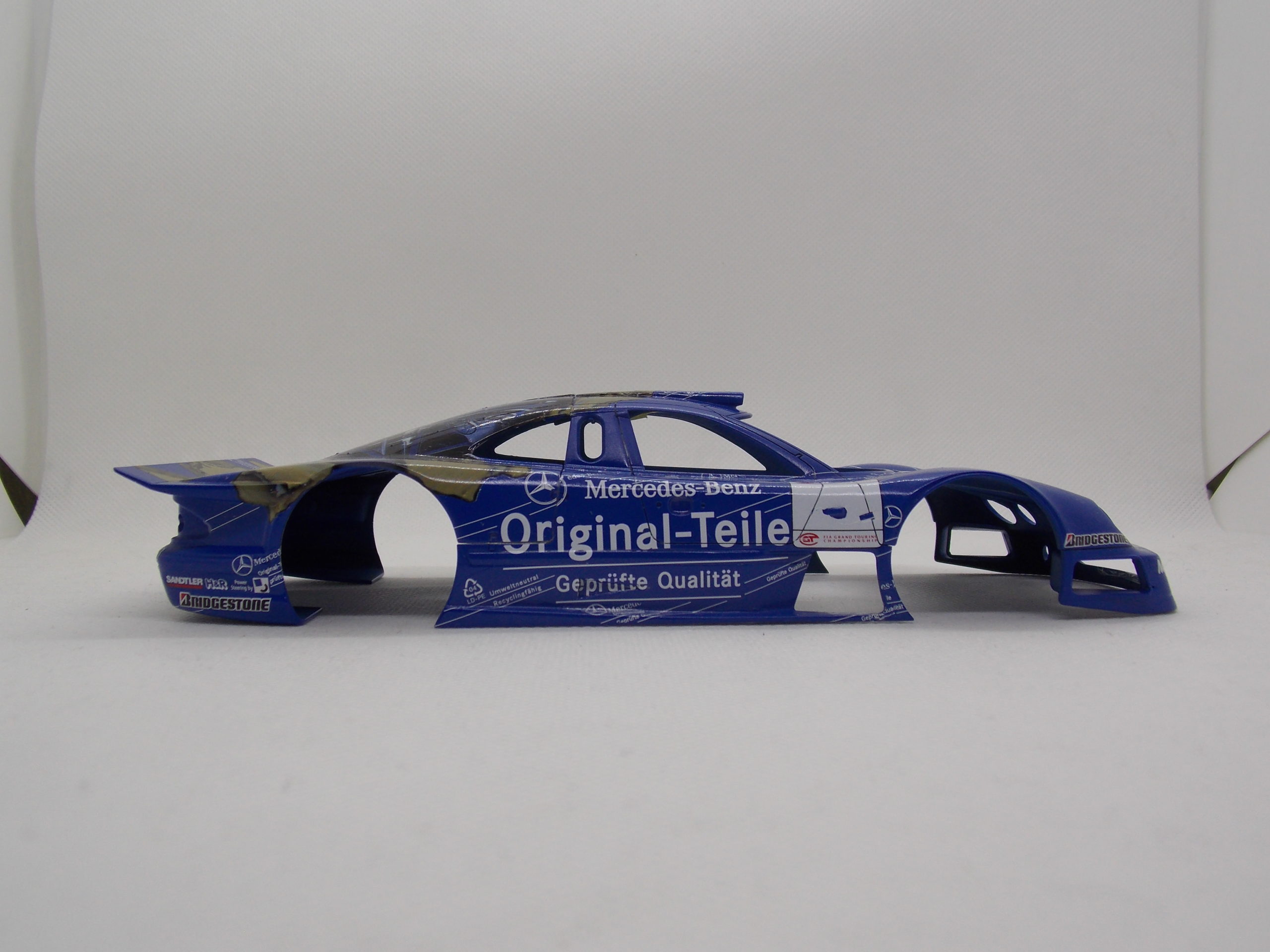 #1 1/24 Mercedes CLK-GTR Original-Teile (仮組) 色々悩んだ結果、こちらを作っていきます。 古いキットなので上手く作れるか分かりませんが頑張って作ります。 デカールはちょっと黄ばみ気味でした。 エンジンブロックを仮組しました。 ボディーも仮組。 今回はstudio27のグレードアップパーツを使っていきます。 サイドにモールドを削ってエッチングパーツを接着。 リアウィングステイもエッチングパーツに置き換えました。 結構エッチングパーツに置き換える手間がかかる。 次回から塗装に行きたいです。 今日はここまで。