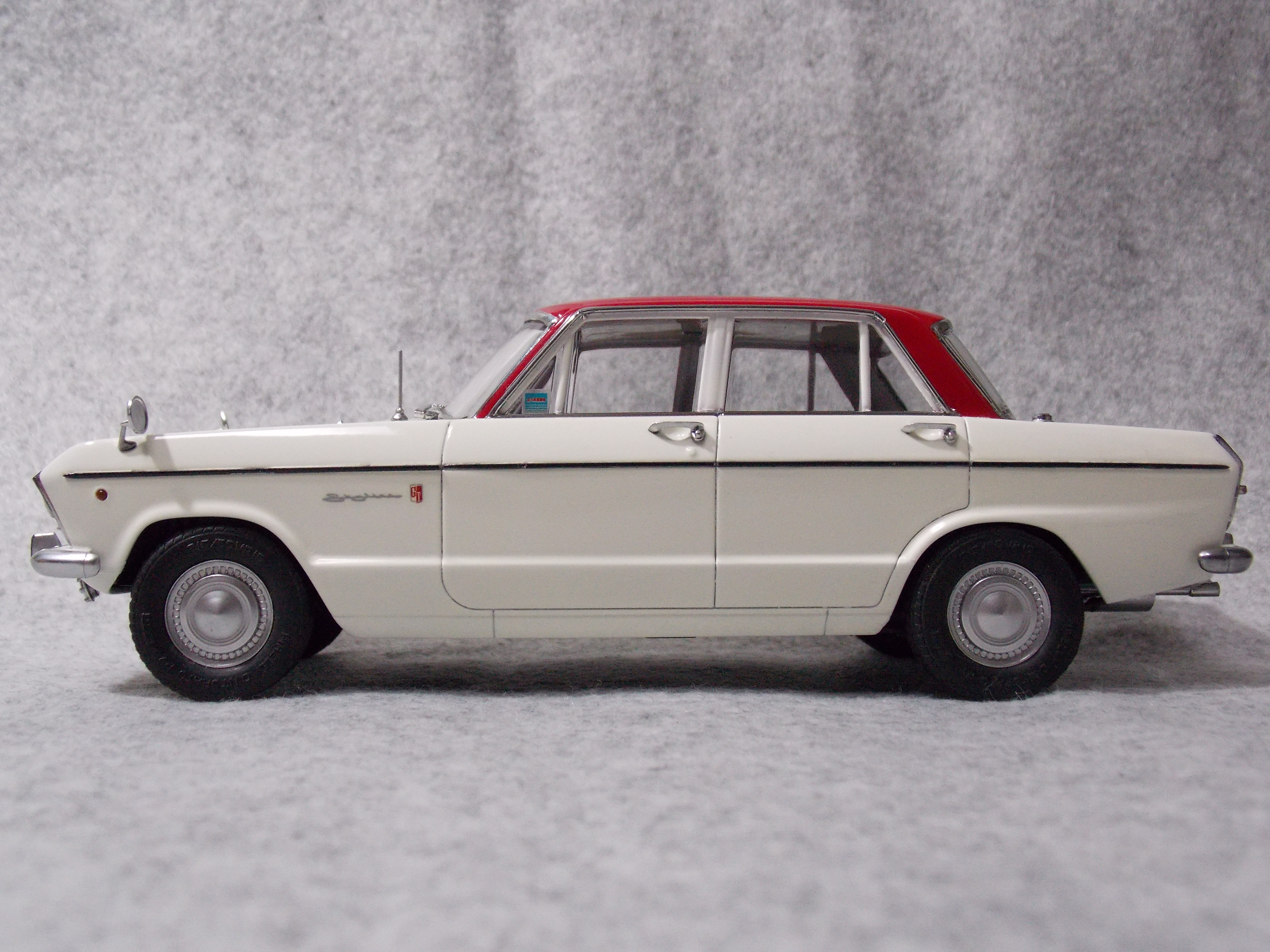 #9 1/24 SKYLINE 2000GT-B(S54B) (組み立て編) 塗装出来たパーツから組み立てていきます。 窓枠はミラーフィニッシュを貼りました。 シャーシとボディを合体するのが苦労しました。 ちょっとホイルを触っていた色が剥げてきたので、後日、再塗装します。 付けるパーツもあとわずかです。もうすぐ完成予定です。 今日はここまで。