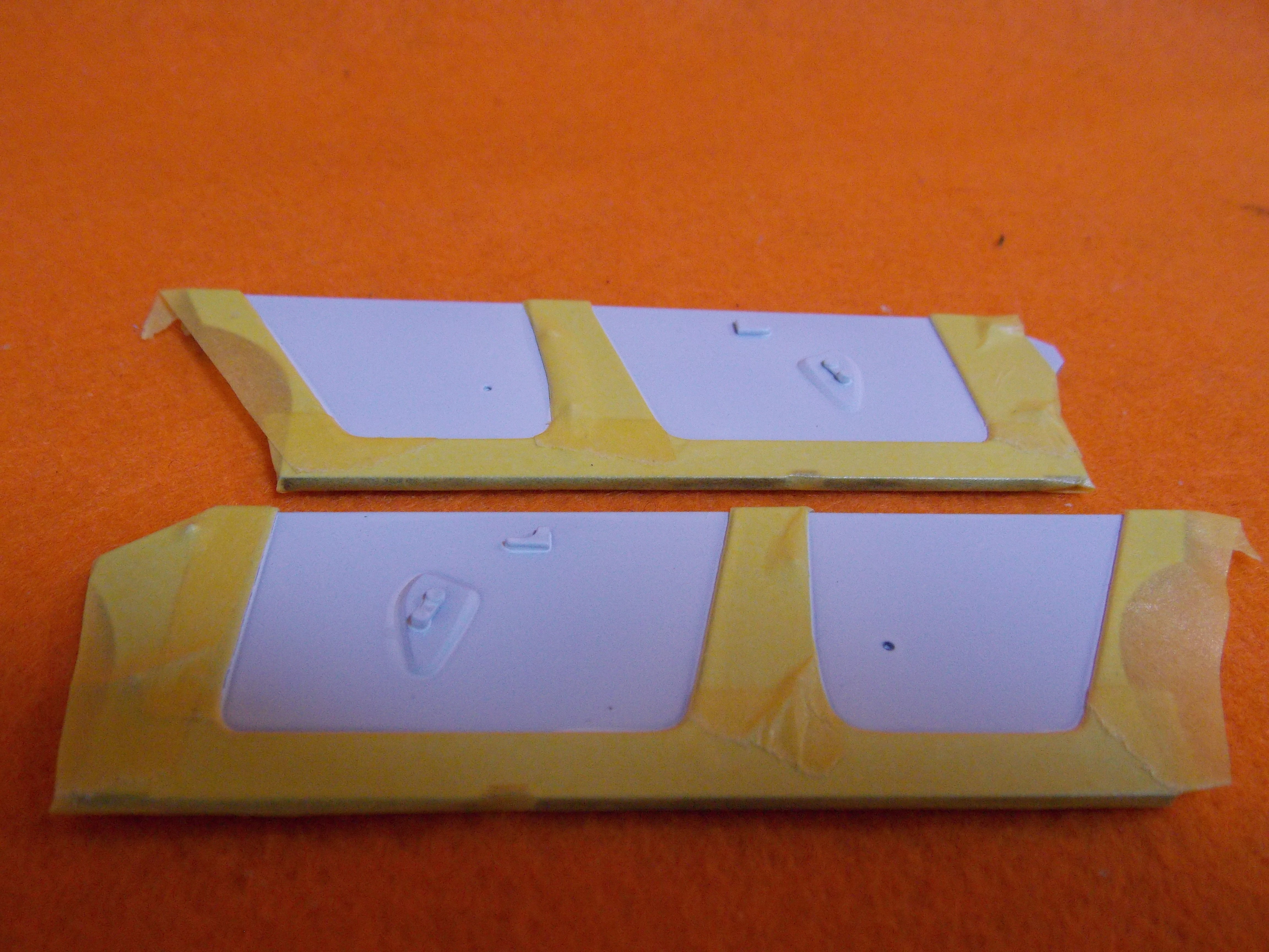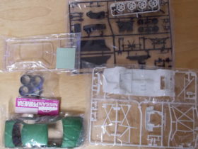 #1 1/24 CASTROL NISSAN PRIMERA JTCC (レビュー編) 全てのパーツです。 パーツ点数はさほど多くはないです。 パーツを切り出しバリを紙やすりで削りながら仮組をしていきます。 仮組をばらして超音波洗浄機で洗浄後、トレーに新聞紙を敷いて乾燥させます。 乾燥後、サフを塗っていきます。 左の黒丸部のウォッシャー液が出る所と、ボンネットピンの所は後でエッチングを付けるので紙やすりで削ります。 後側は黒線の所にパーティングラインがあるので削ります。 メッキパーツはキッチンハイターでメッキを落としました。 乾燥したらサフを塗っていきます。 今日はここまで。