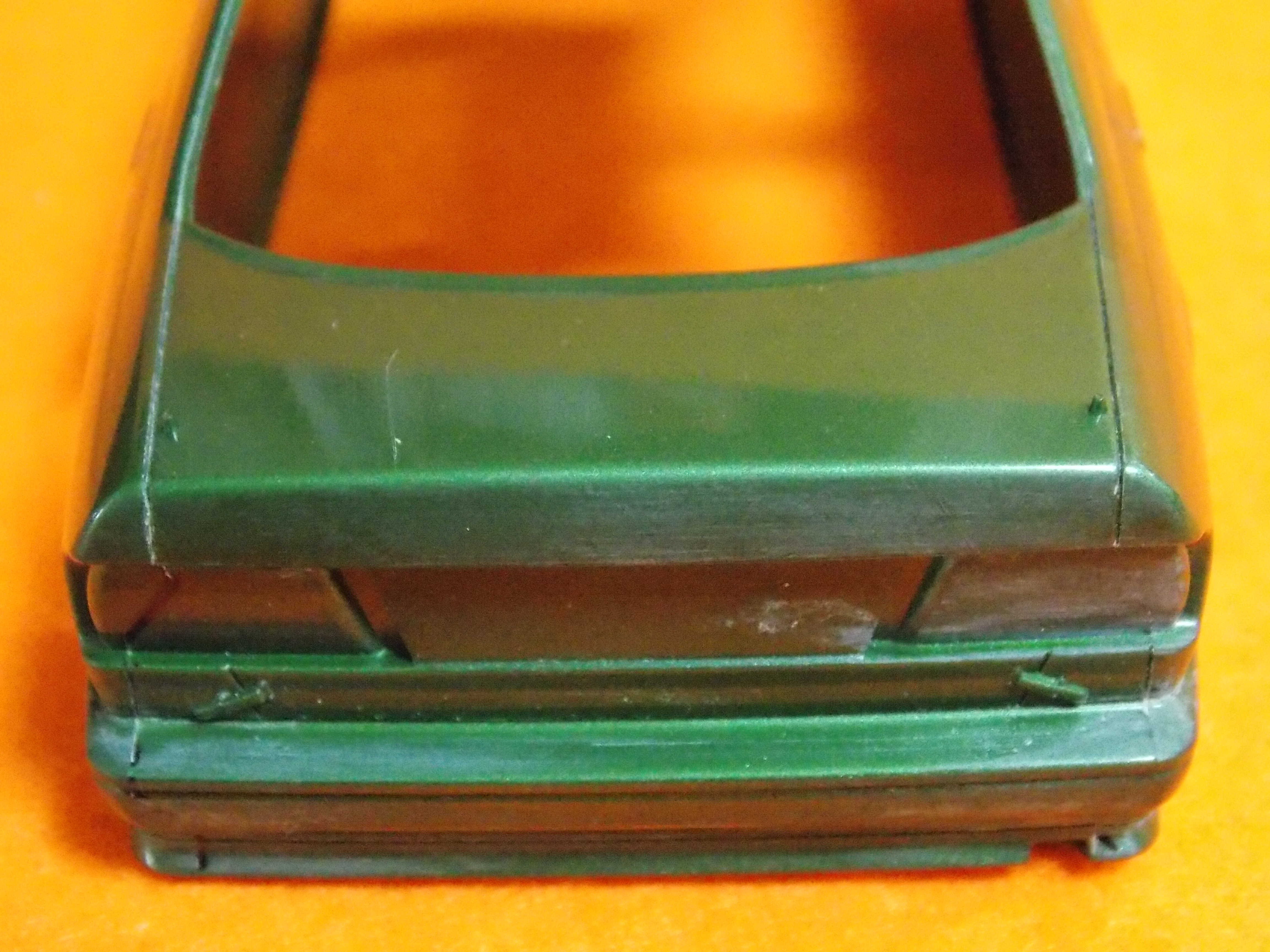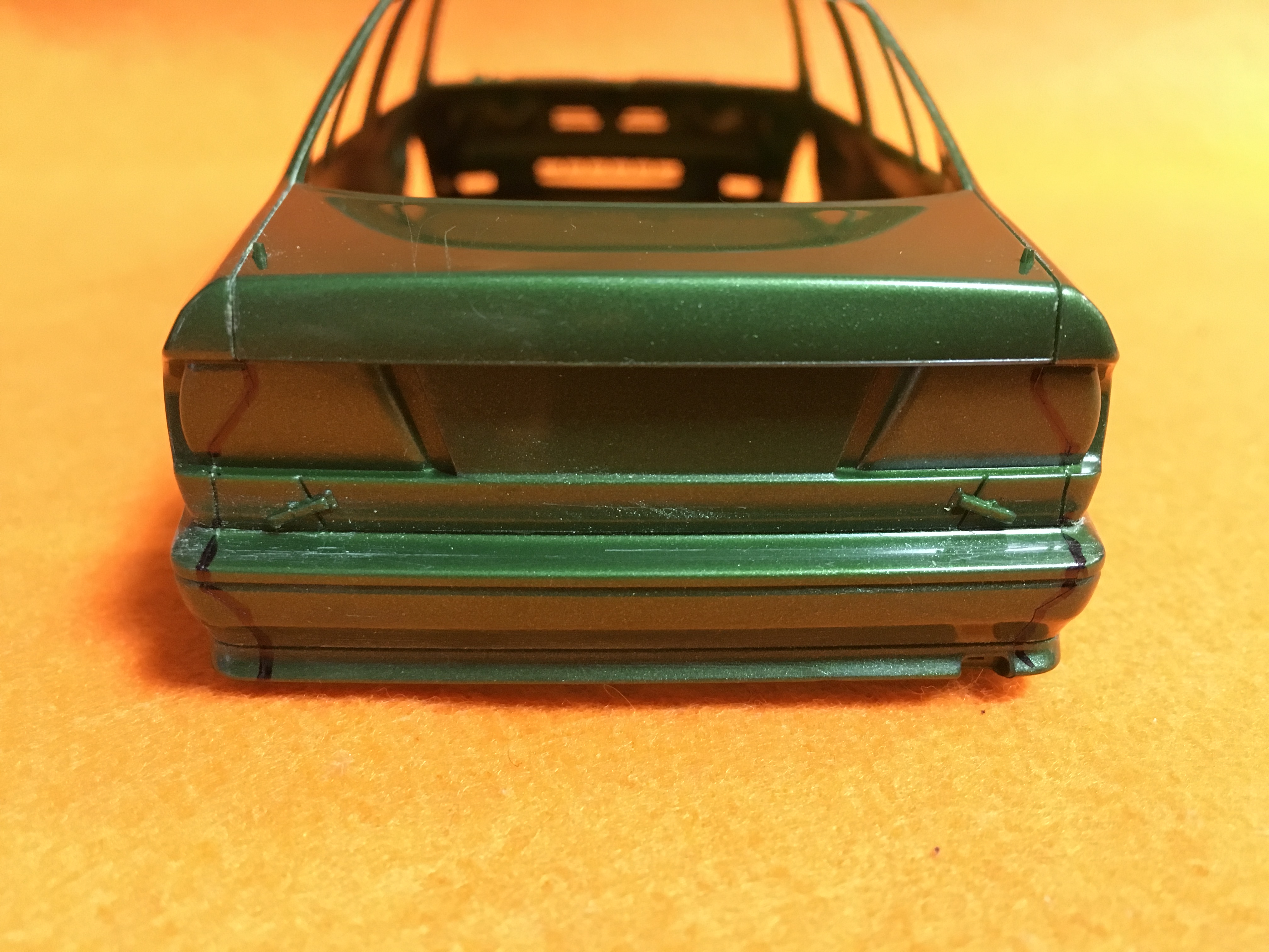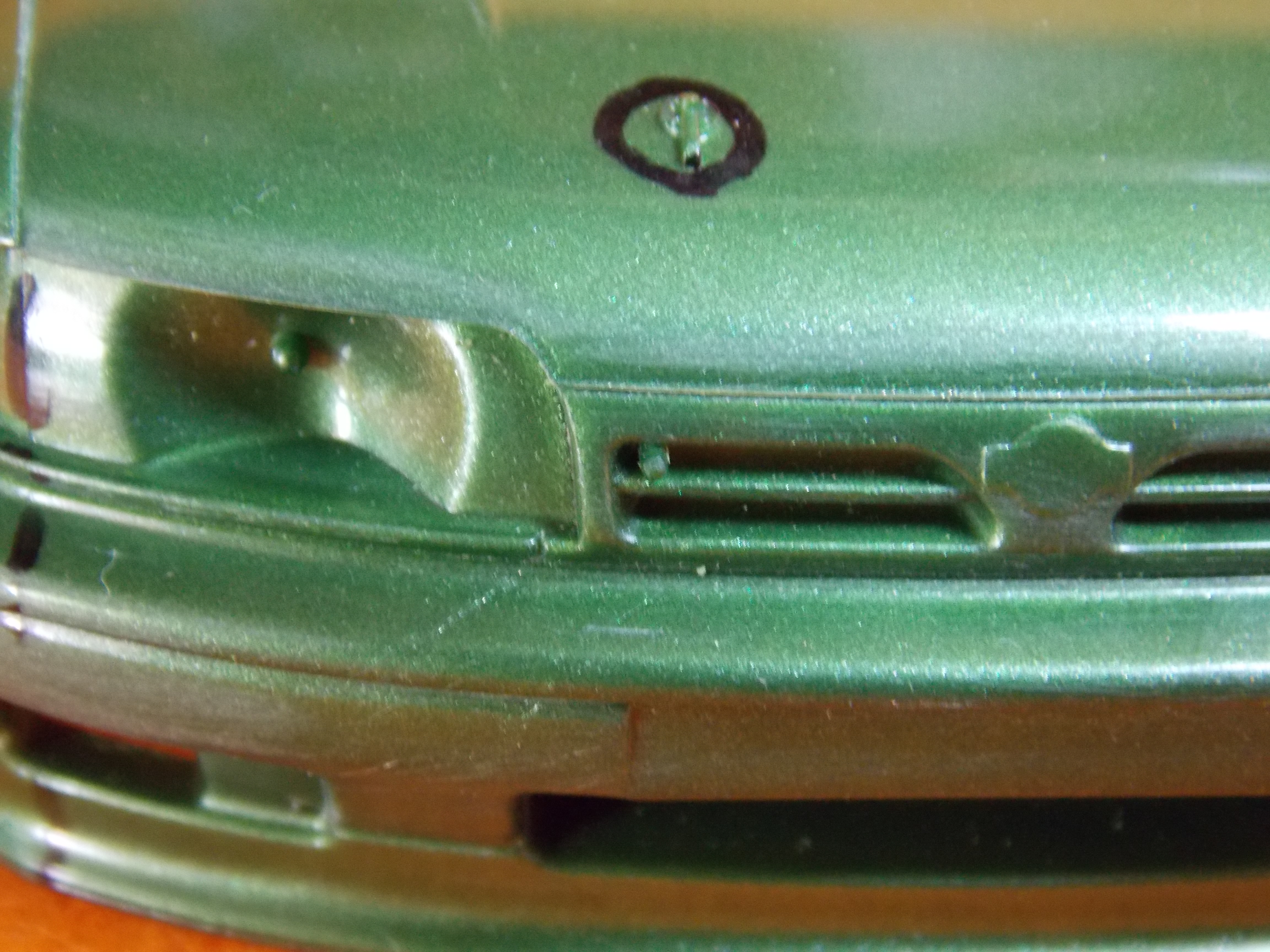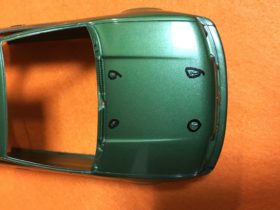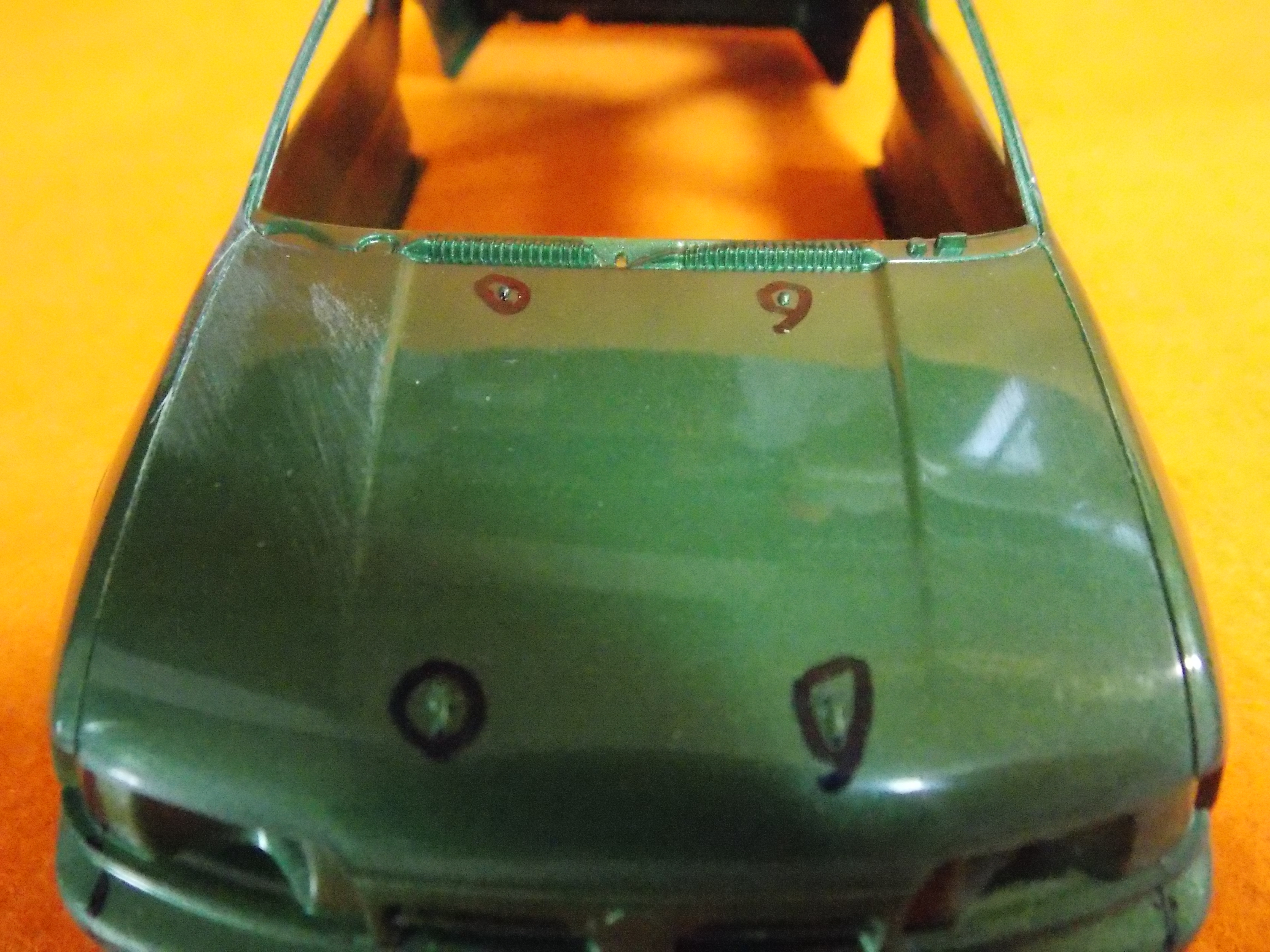 #9 1/24 CASTROL NISSAN PRIMERA JTCC (筋彫り編) ボディの作業に取り掛かります。 まず、キルスイッチと何かのスイッチとウォッシャー液(黒丸)の突起を削ります。 塗装後、自作でそれっぽいのを付けます。 ボンネットピンとトランクピンも削ります。 エアージャッキも削ります。 筋彫りを入れていらない突起は全て磨きに邪魔なので削りました。 次回、サフを吹いてボディチェックをします。 今日はここまで。