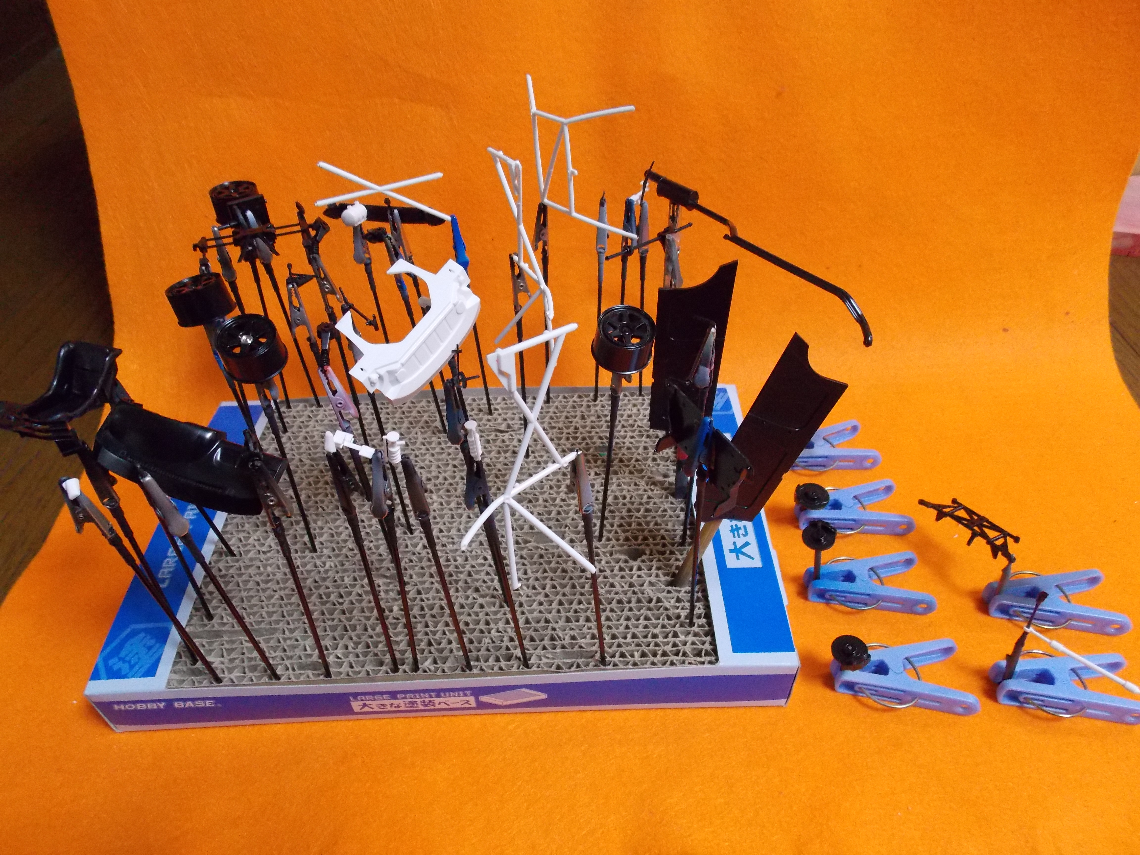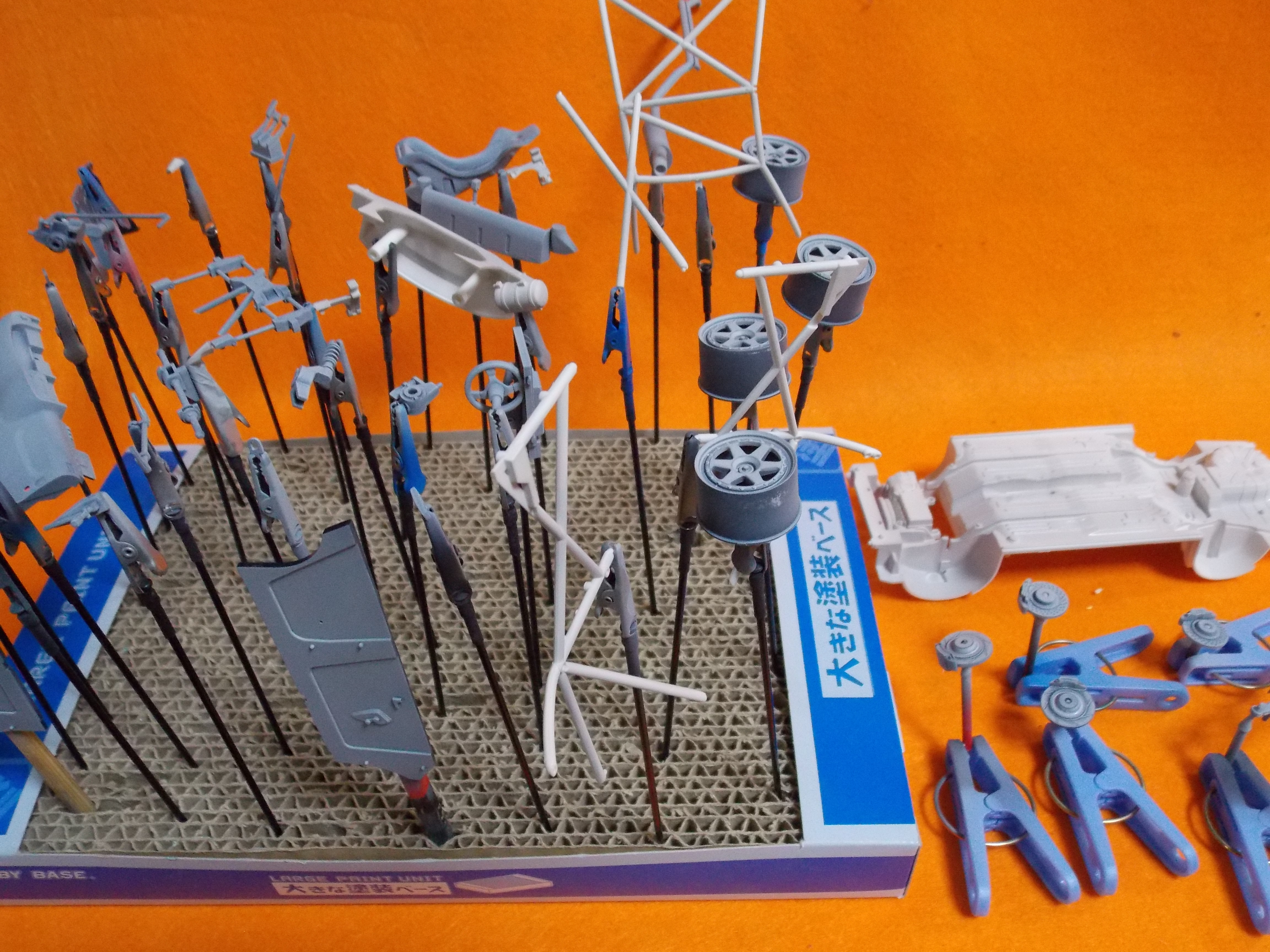 #2 1/24 CASTROL NISSAN PRIMERA JTCC (塗装準備編) パーツ類が乾燥したので塗装がしやすい様に持ち手の確保をしました。 リアウィングの付ける所は凸になってて研ぎ出しに邪魔なので切り落としΦ1.0の穴をあけました。 リアウィングの方は凹だたのでΦ0.9の穴をあけΦ0.8の針金を瞬間接着材で接着。 ボディに付けてみました。 研ぎ出しもしやすくなったし保持力もUPしてこれで良しとします。 今日は時間がなく塗装までには至らず・・・ 今日はここまで。