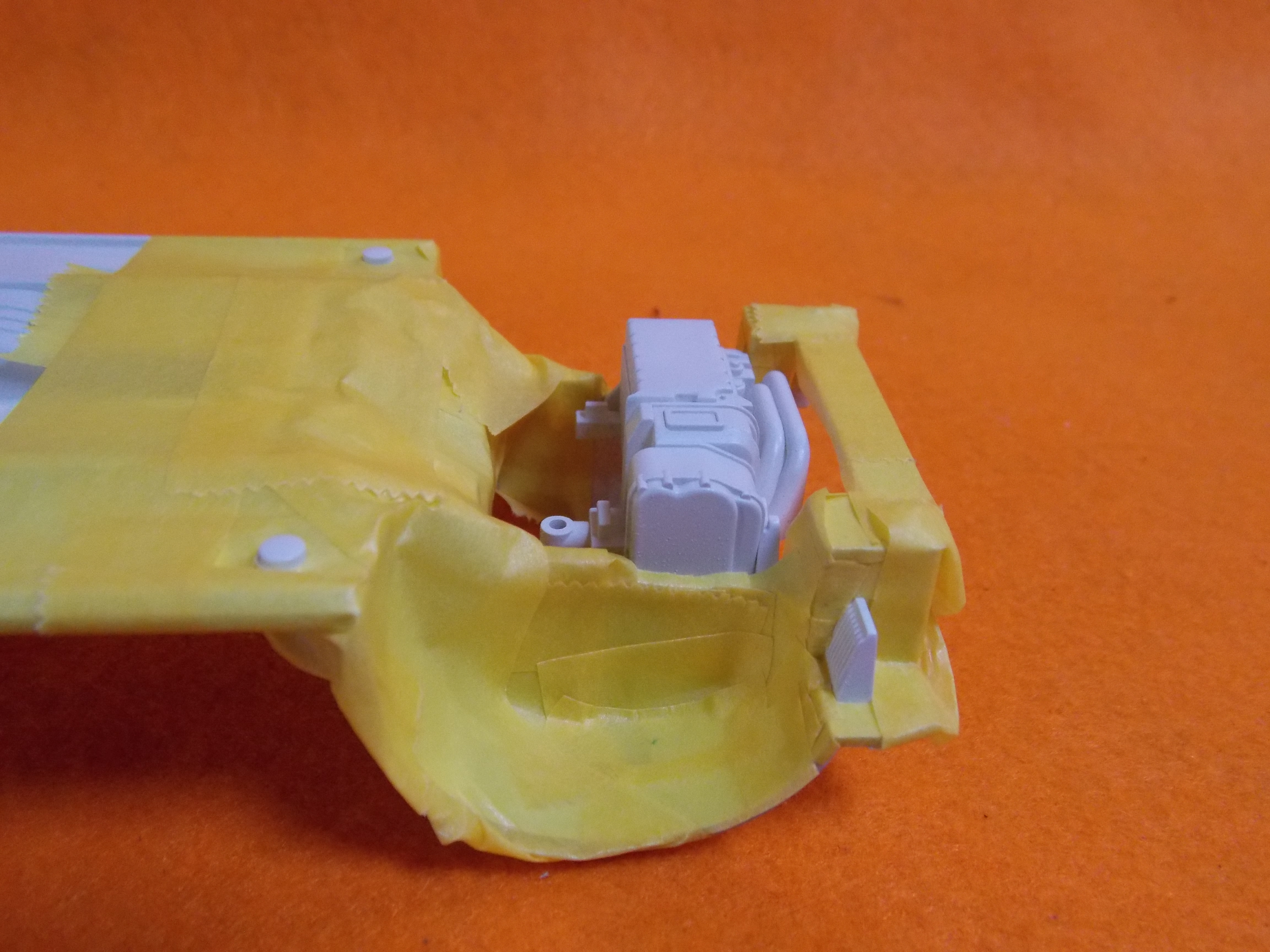 #7 1/24 CASTROL NISSAN PRIMERA JTCC (本塗装編) 前回塗装したパーツをマスキングして、セミグロスブラックを塗り分けました。 シャーシのパーツもエンジン部分を塗装する為マスキング。 インストの指示通り塗り分けました。 エンジン部分にはスミ入れをしました。 シャーシの反対もインストの指示通り塗り分けました。 組立てたら全く見えなくなるので適当です。 今日はここまで。
