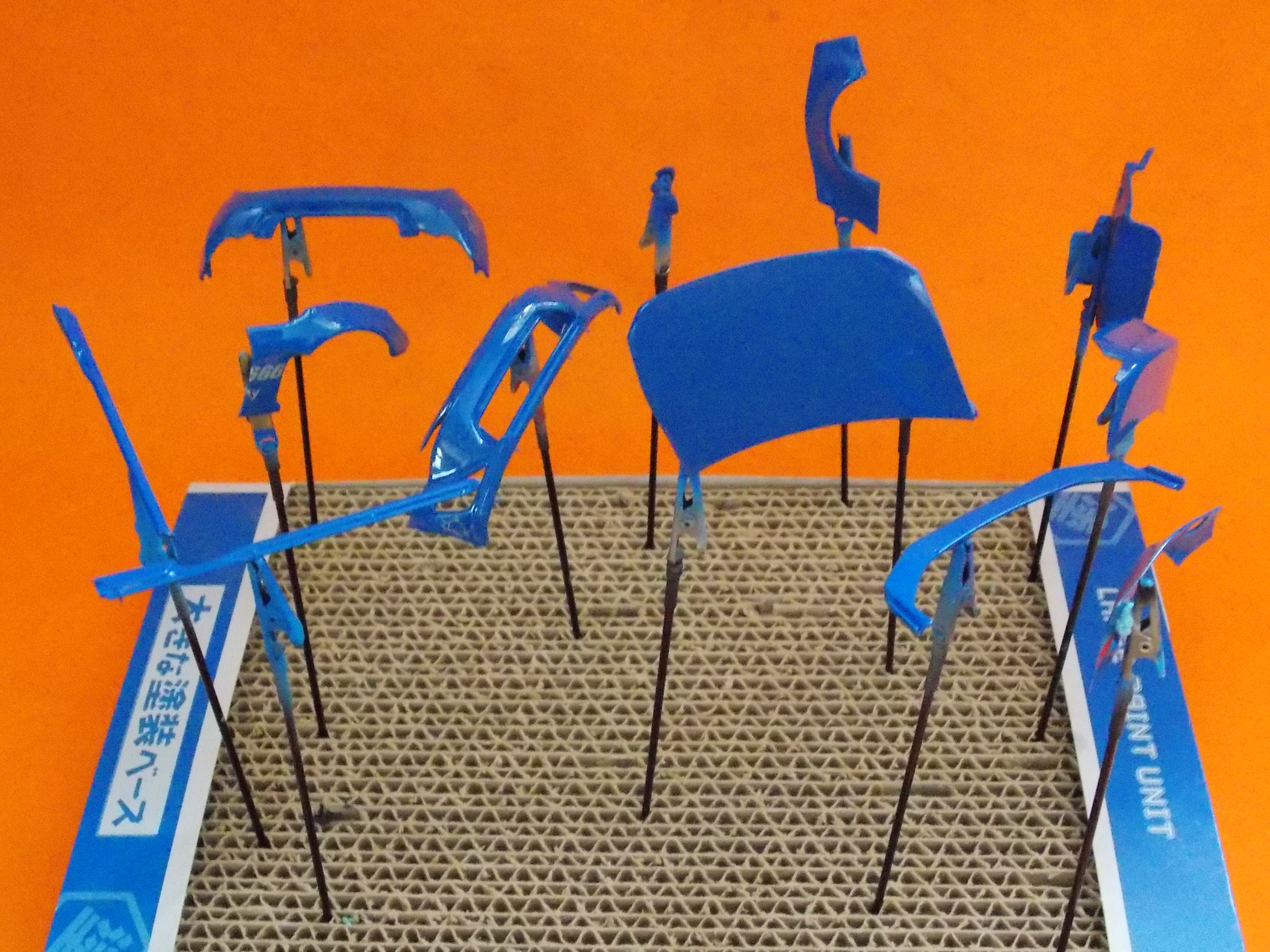 フェンダーを合わせてリベットを付ける穴を開口。(φ0.4) そこにインセクトピンの#00を入れてみました。 ディテールアップと接着強度を上げる為です。 |