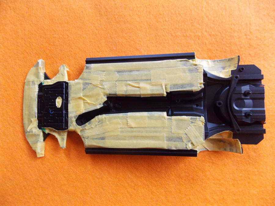 #8 SUBARU BRZ(塗装編) シャーシにセミグロスブラックを塗装後、塗り分ける部分にマスキングをした所。 結構面倒でした。 TS-50(マイカブルー)をスプレーからビンに移して、エアーブラシで塗装。 シルバー部分はMR.COLORのスーパーチタンで塗装。 こちらも上記と同じ色で塗り分けました。 今日はここまで。