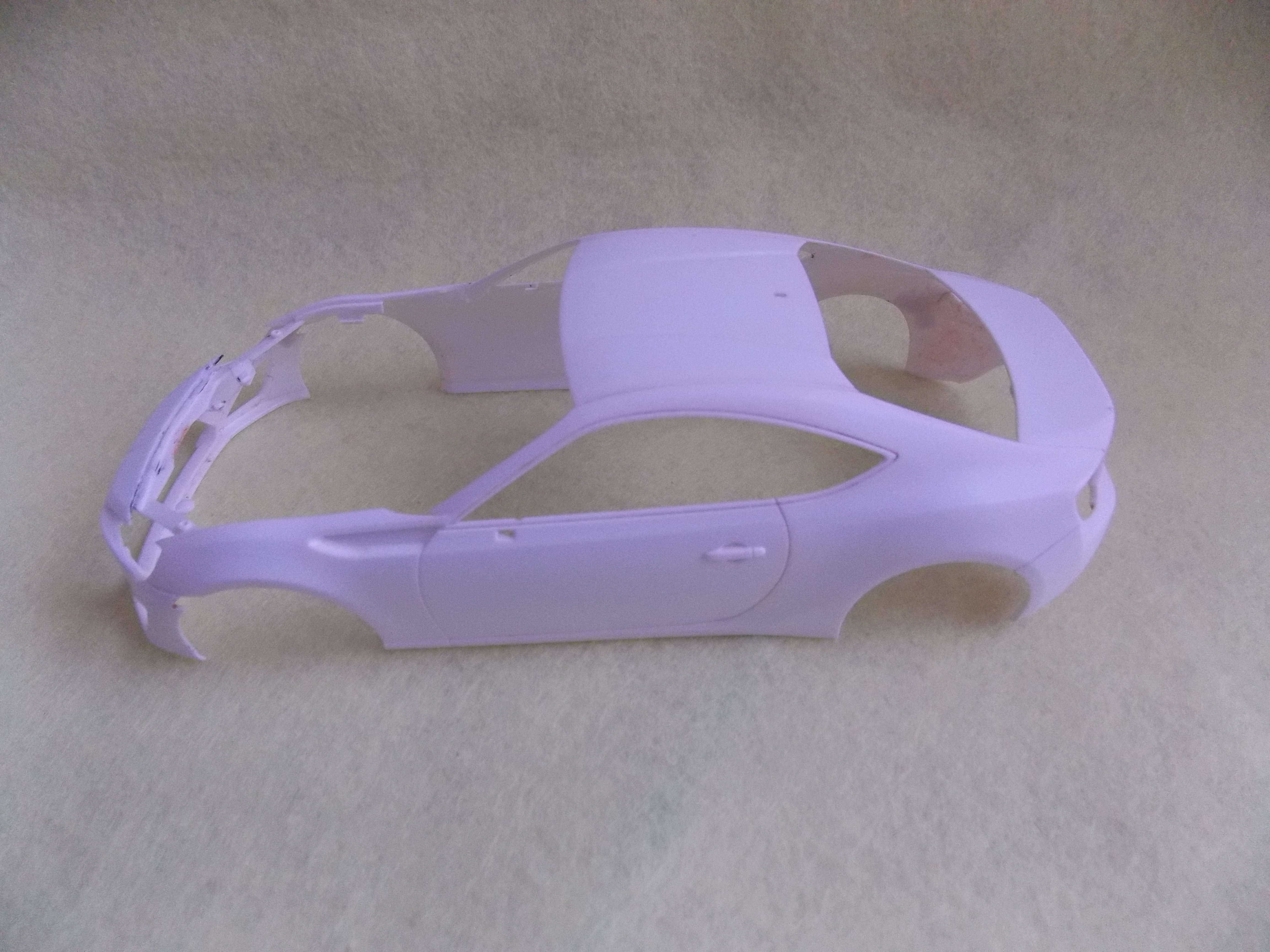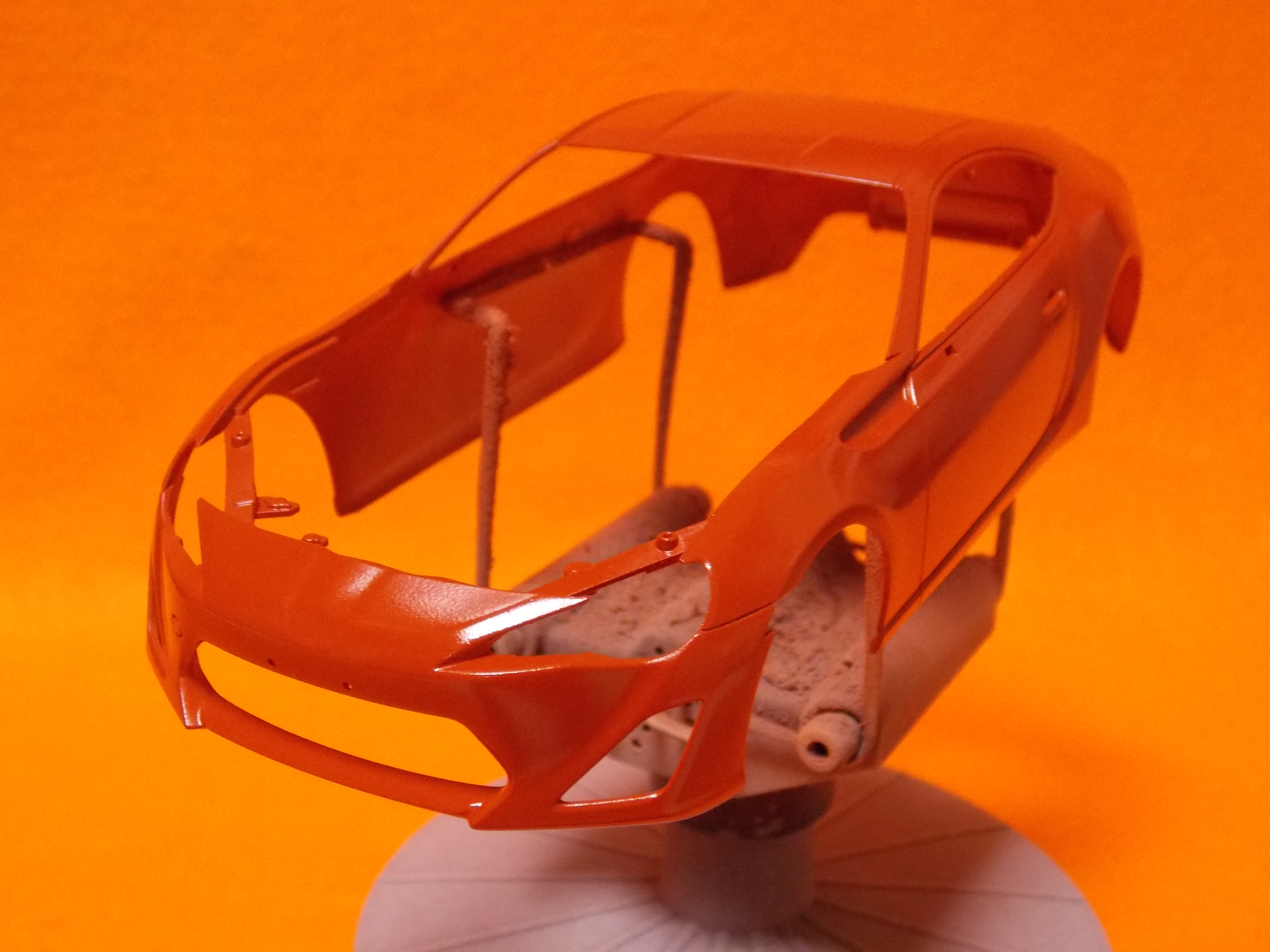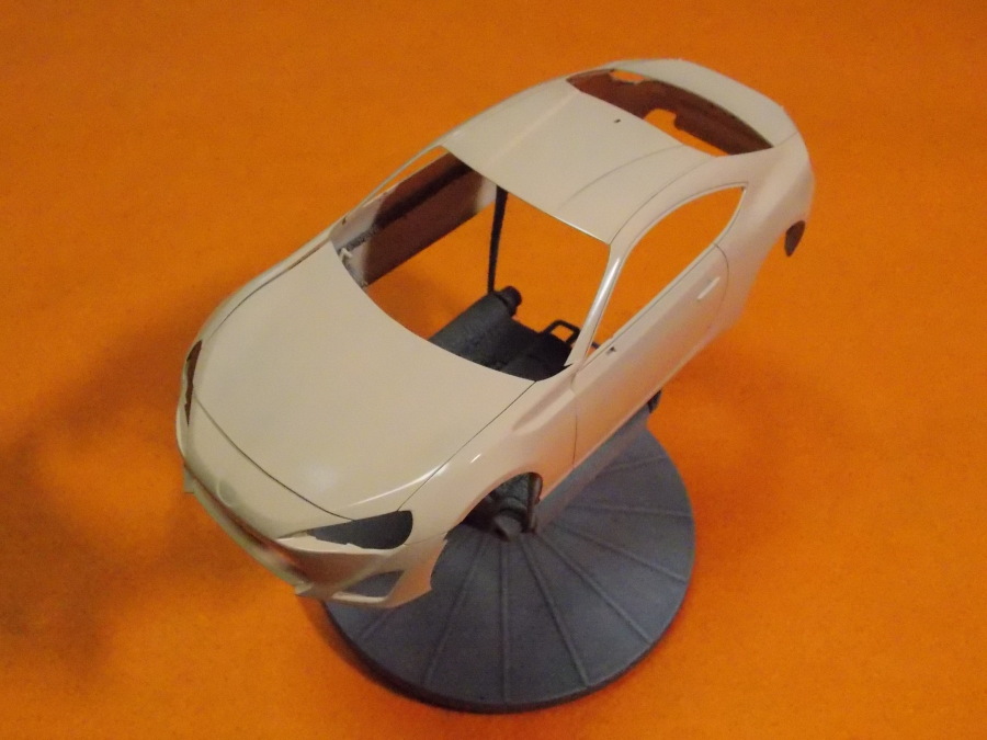 #11 TOYOTA86(塗装編) ボディの表面を紙やすりで整えて、クレオスのサーフェイサーを塗装しました。 筋彫りも深く彫り直しました。 こちらのパーツもクレオスのサーフェイサーを塗装しました。 サーフェイサーを塗装後、表面の傷やパーティングラインのチェックをして、フィニッシャーズのファンデーションホワイトにクリアーオレンジを混ぜて塗装。 こちらのパーツも表面の傷やパーティングラインのチェックをして、フィニッシャーズのファンデーションホワイトにクリアーオレンジを混ぜて塗装。 乾燥したら本塗装に進みます。 今日はここまで。