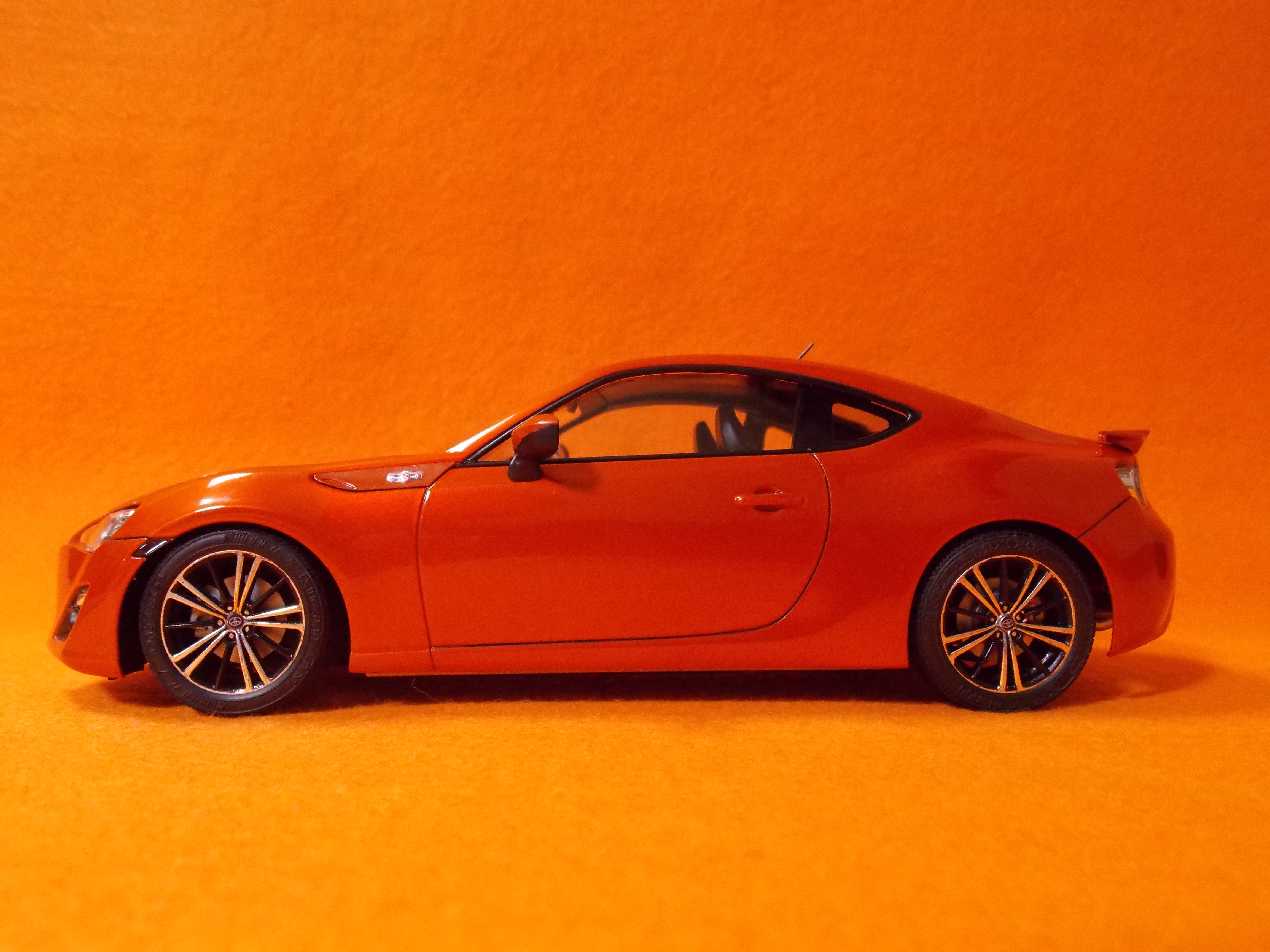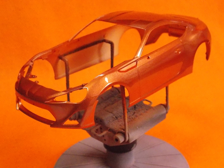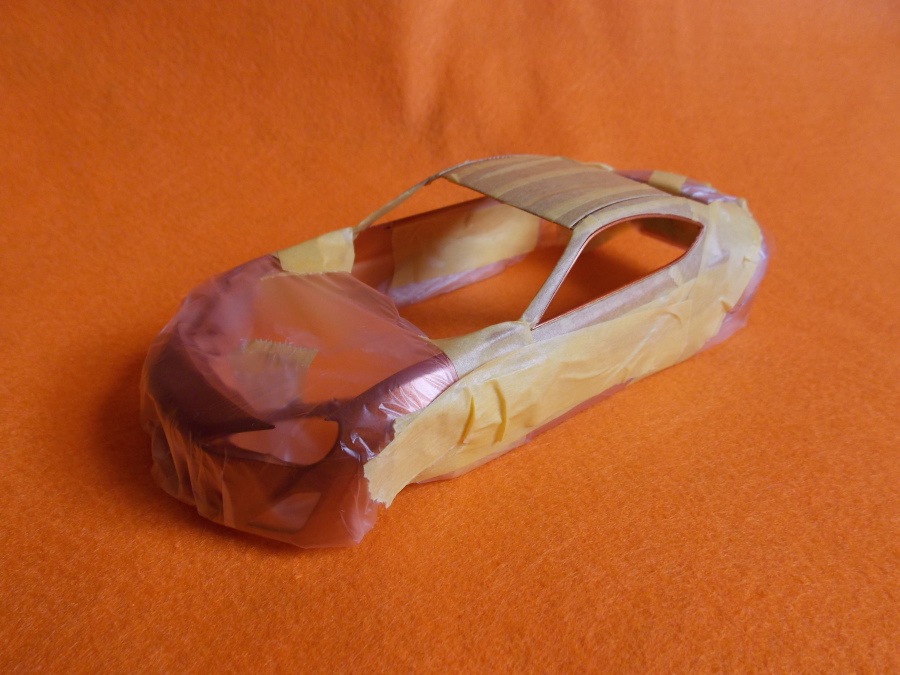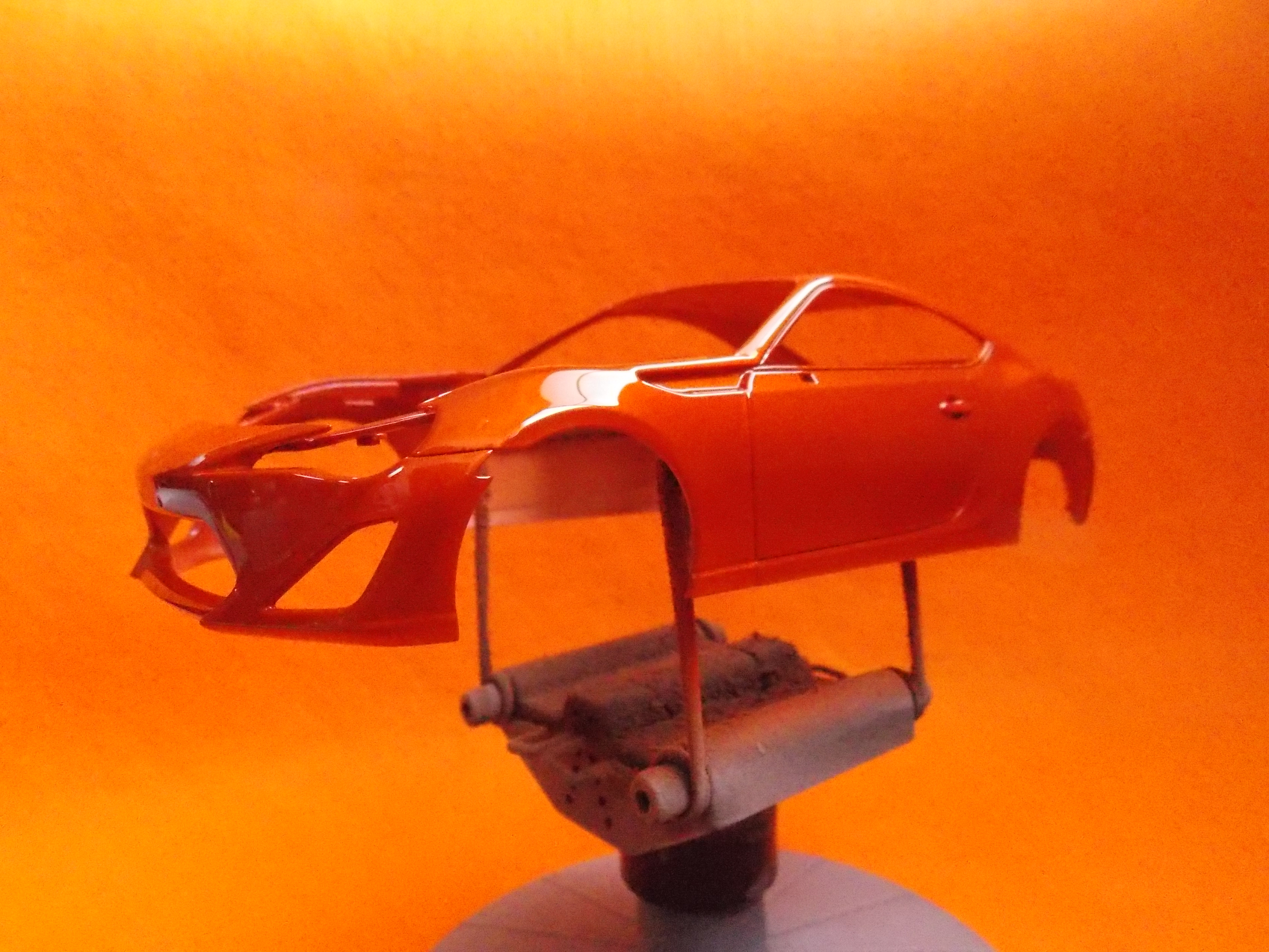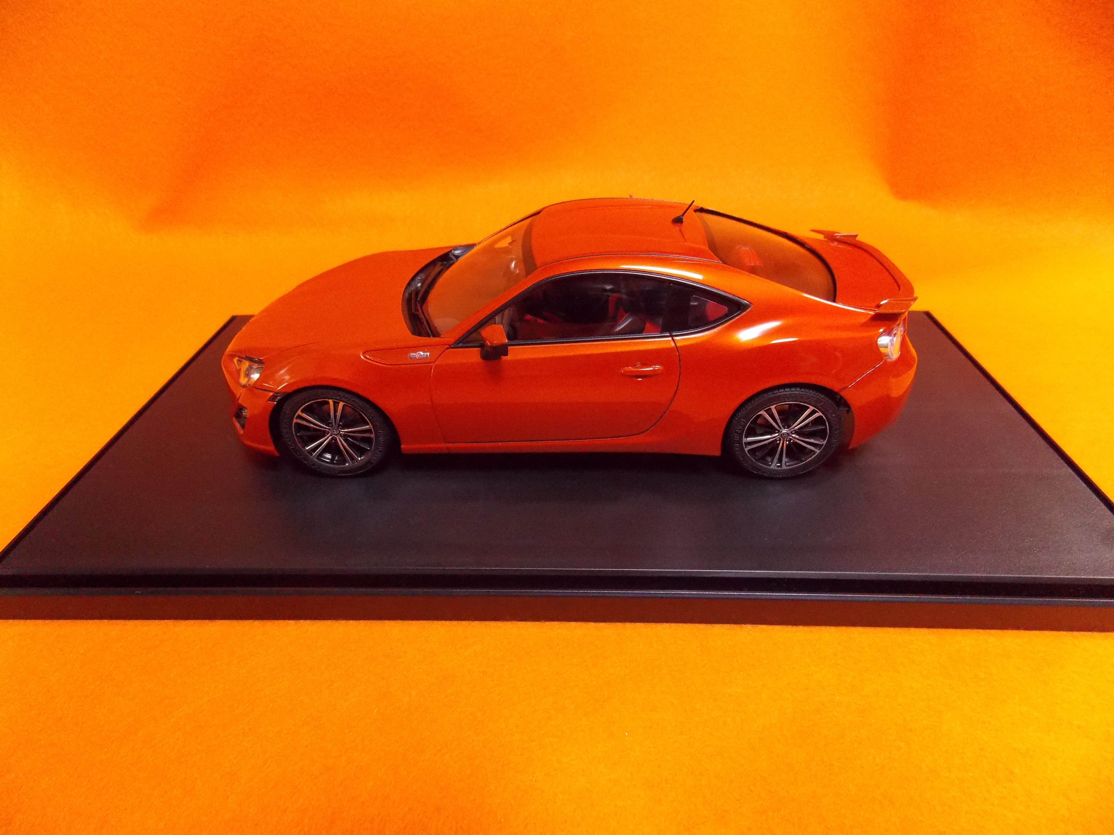 #12 TOYOTA86(塗装編) TS-92(メタリックオレンジ)を塗装しました。 計3回に分けて塗りました。 こちらのパーツもTS-92(メタリックオレンジ)を塗装しました。 フロントガラスとリアガラスも付属のマスキングテープを貼ってセミグロスブラックを塗装しました。 次回はクリアー塗装と小物類の塗装をします。 今日はここまで。