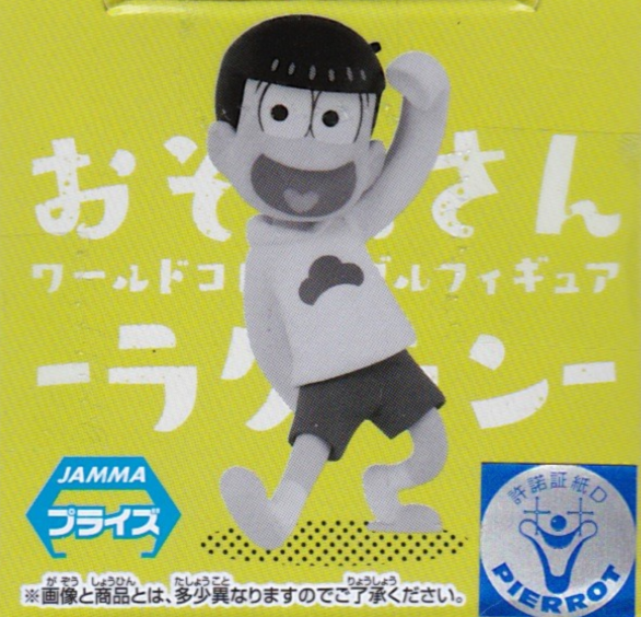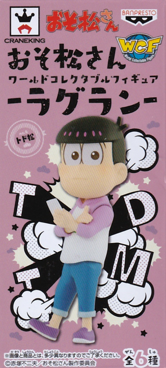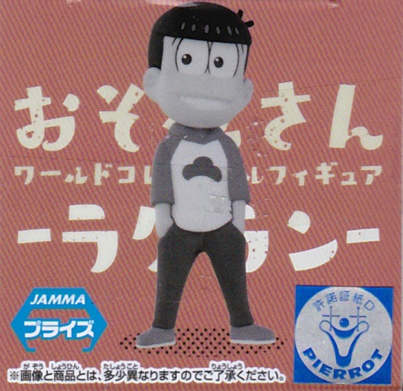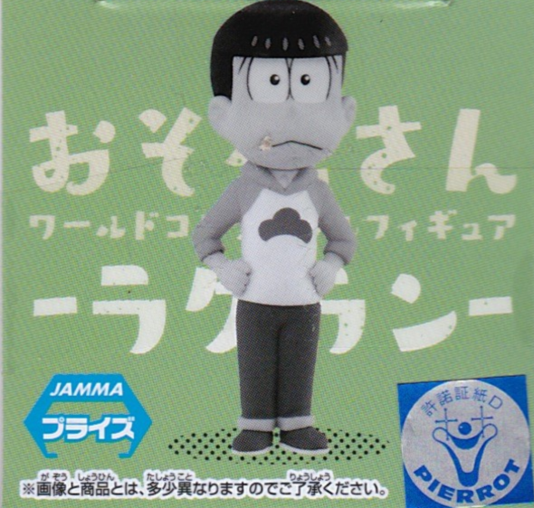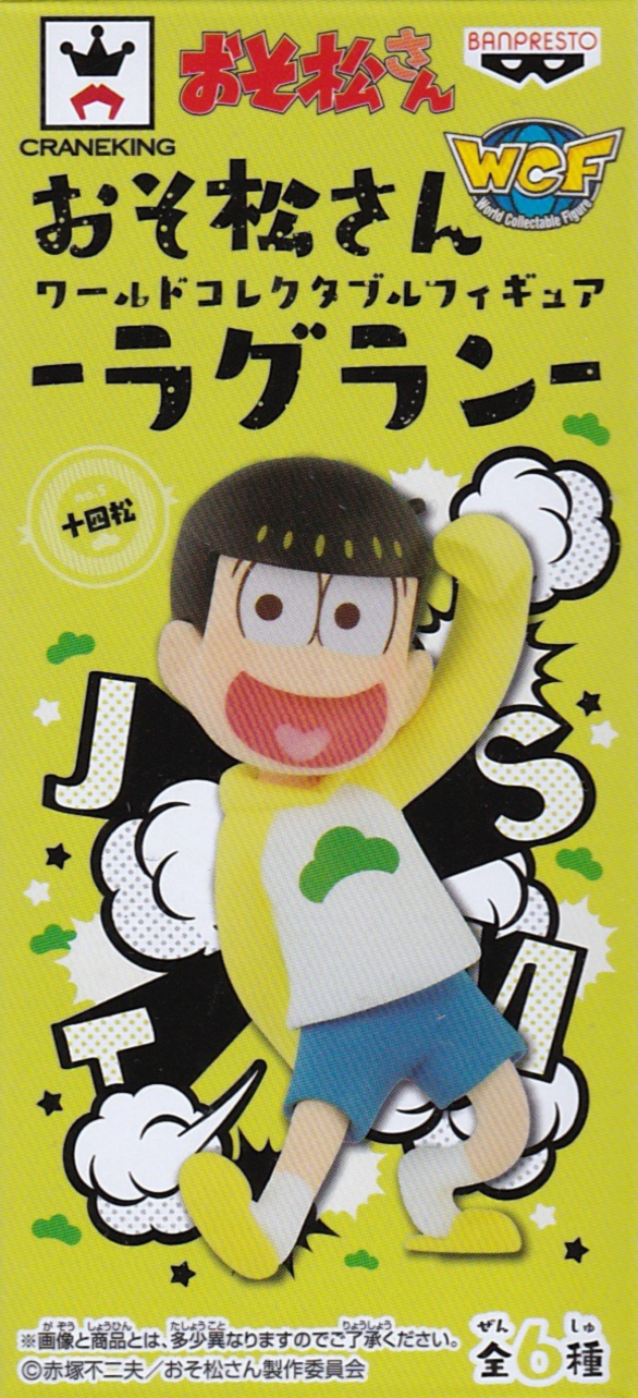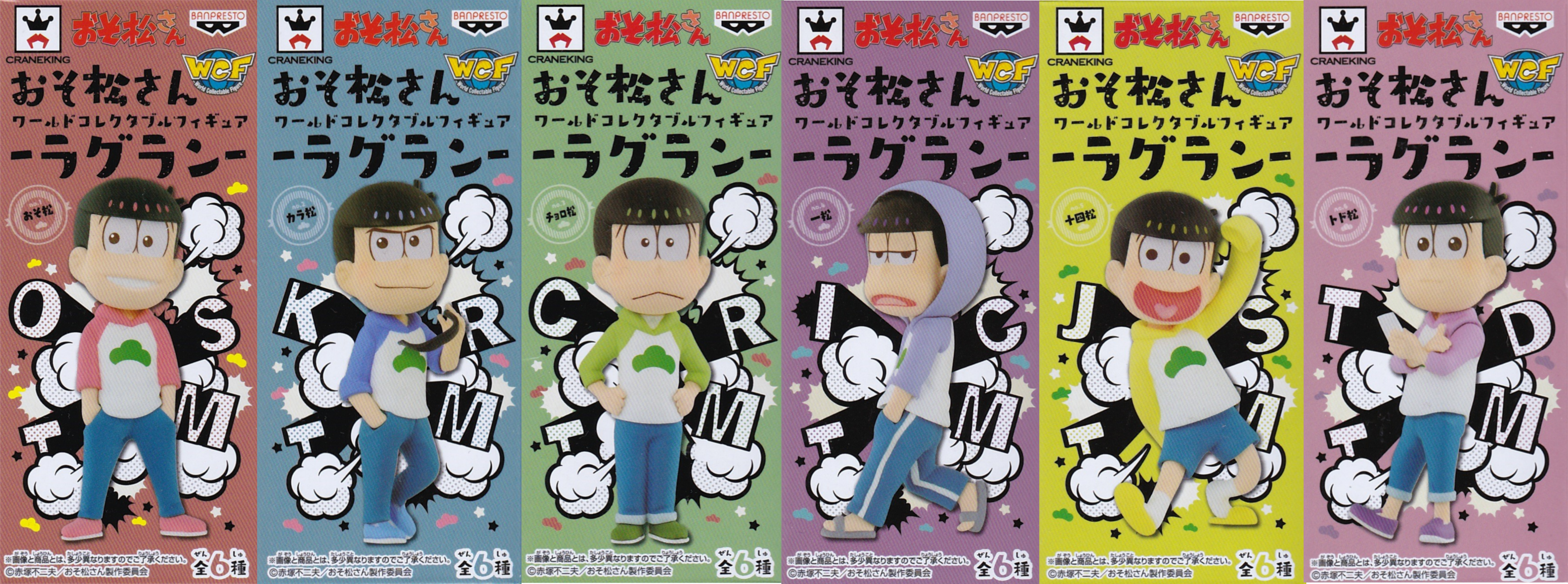 おそ松さん WCF -ラグランー 全6種 発売元 : バンプレスト 名前 : おそ松 番号 : no.1 前面 後面 左横 右横 発売元 : バンプレスト 名前 : カラ松 番号 : no.2 前面 後面 左横 右横 発売元 : バンプレスト 名前 : チョロ松 番号 : no.3 前面 後面 左横 右横 発売元 : バンプレスト 名前 : 一松 番号 : no.4 前面 後面 左横 右横 発売元 : バンプレスト 名前 : 十四松 番号 : no.5 前面 後面 左横 右横 発売元 : バンプレスト 名前 : トド松 番号 : no.6 前面 後面 左横 右横