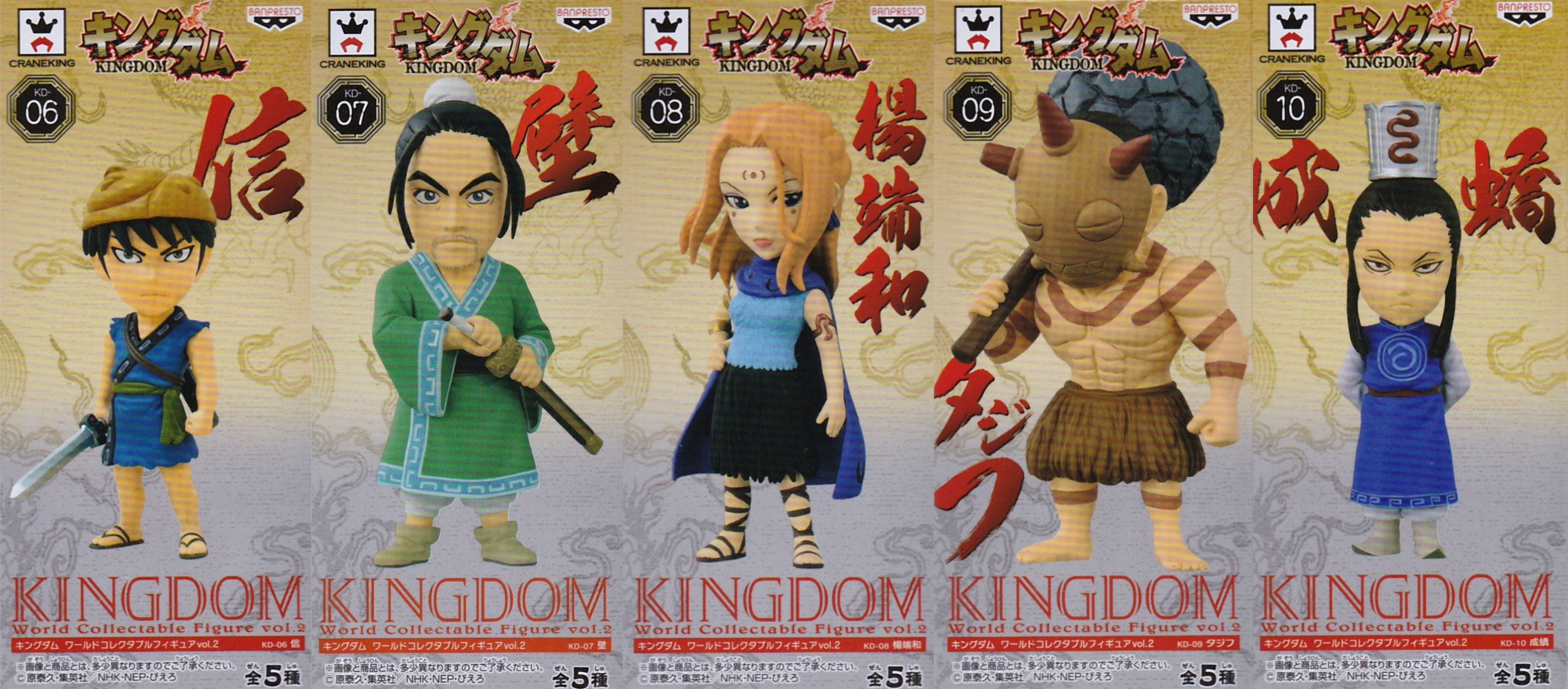 キングダム ワールドコレクタブルフィギュア vol.2 全5種 発売元 : バンプレスト 名前 : 信 番号 : KD-06 前面 後面 左横 右横 発売元 : バンプレスト 名前 : 壁 番号 : KD-07 前面 後面 左横 右横 発売元 : バンプレスト 名前 : 楊端和 番号 : KD-08 前面 後面 左横 右横 発売元 : バンプレスト 名前 : タジフ 番号 : KD-09 前面 後面 左横 右横 発売元 : バンプレスト 名前 : 成蟜 番号 : KD-10 前面 後面 左横 右横