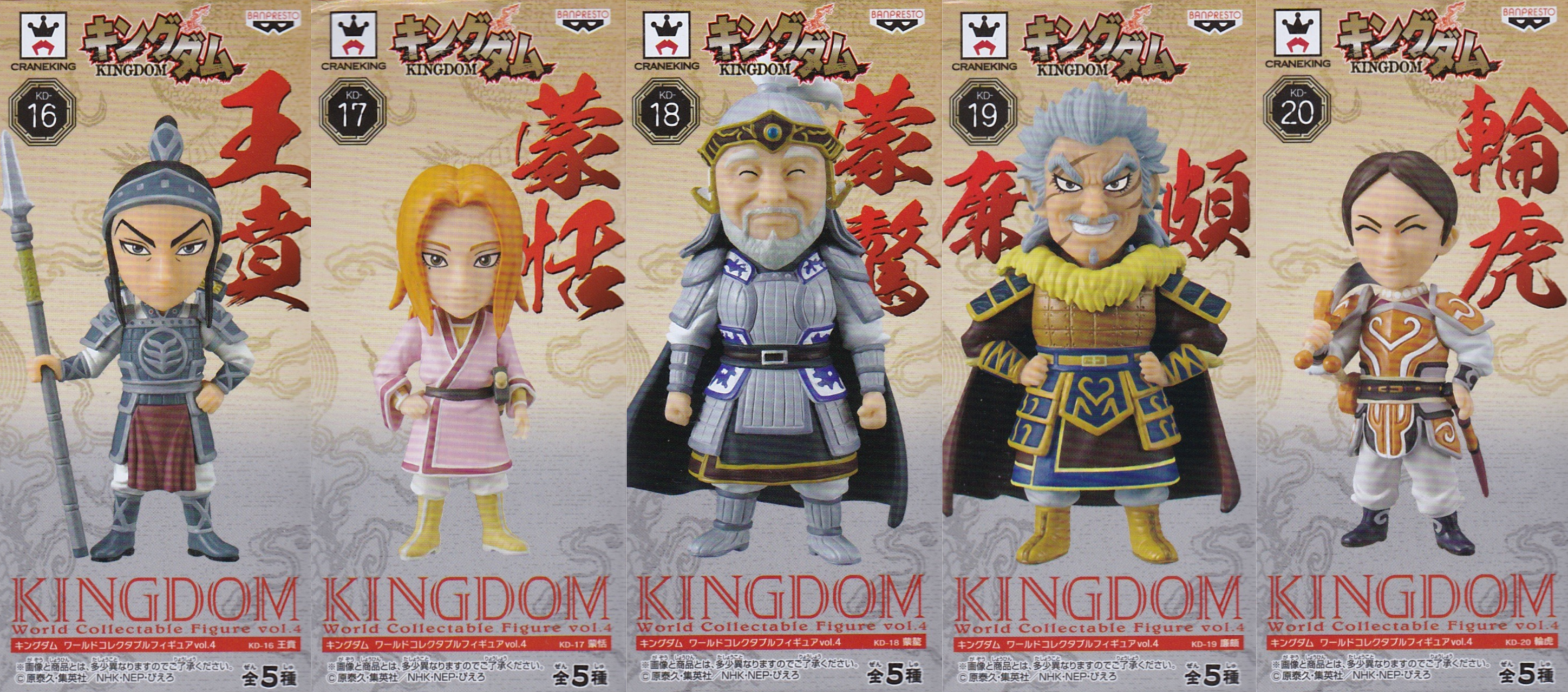 キングダム ワールドコレクタブルフィギュア vol.4 全5種 発売元 : バンプレスト 名前 : 王賁 番号 : KD-16 前面 後面 左横 右横 発売元 : バンプレスト 名前 : 蒙恬 番号 : KD-17 前面 後面 左横 右横 発売元 : バンプレスト 名前 : 蒙驁 番号 : KD-18 前面 後面 左横 右横 発売元 : バンプレスト 名前 : 廉頗 番号 : KD-19 前面 後面 左横 右横 発売元 : バンプレスト 名前 : 輪虎 番号 : KD-20 前面 後面 左横 右横