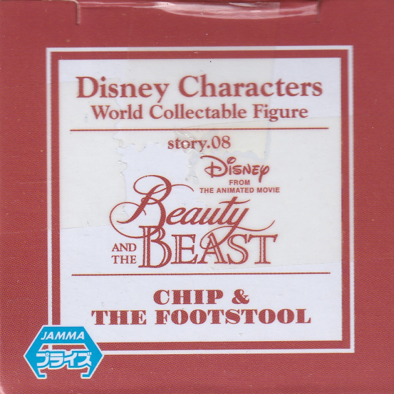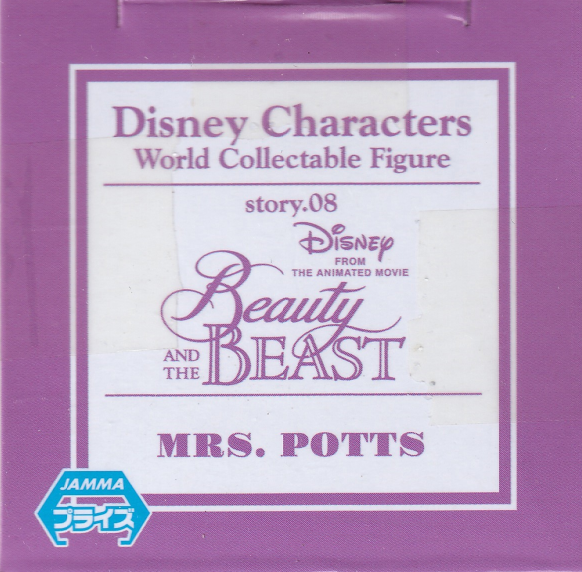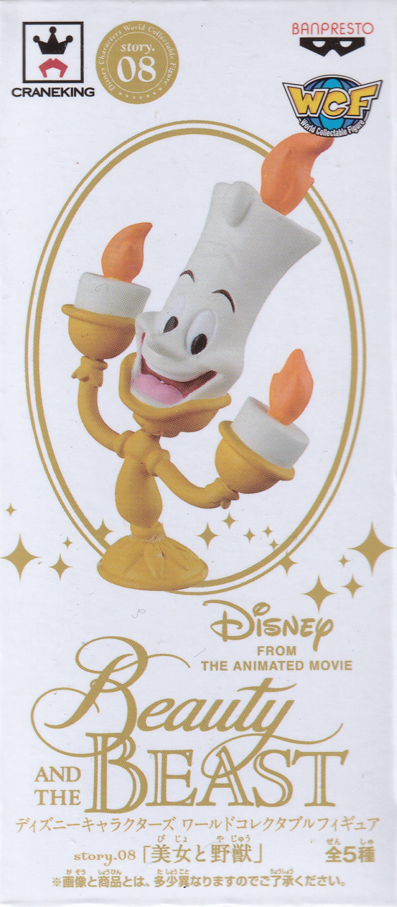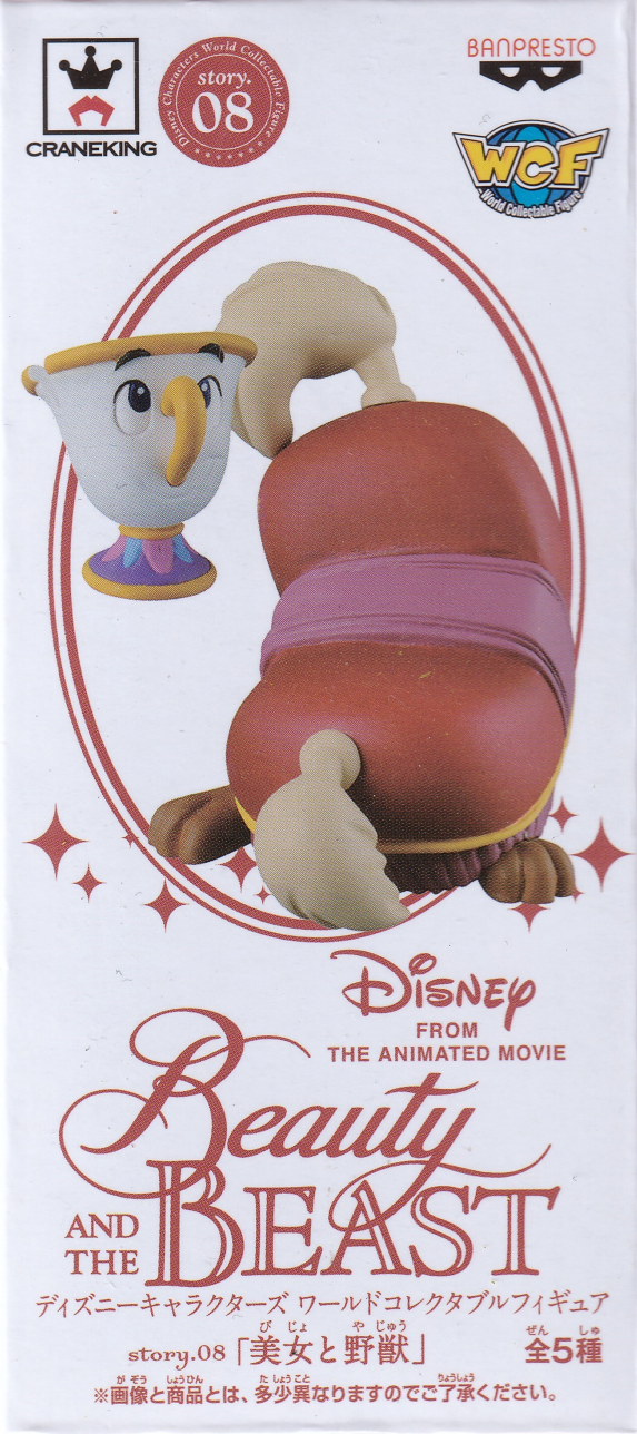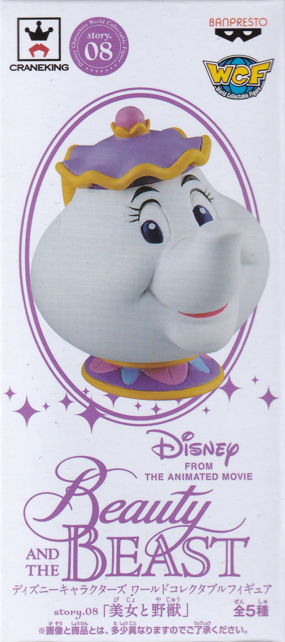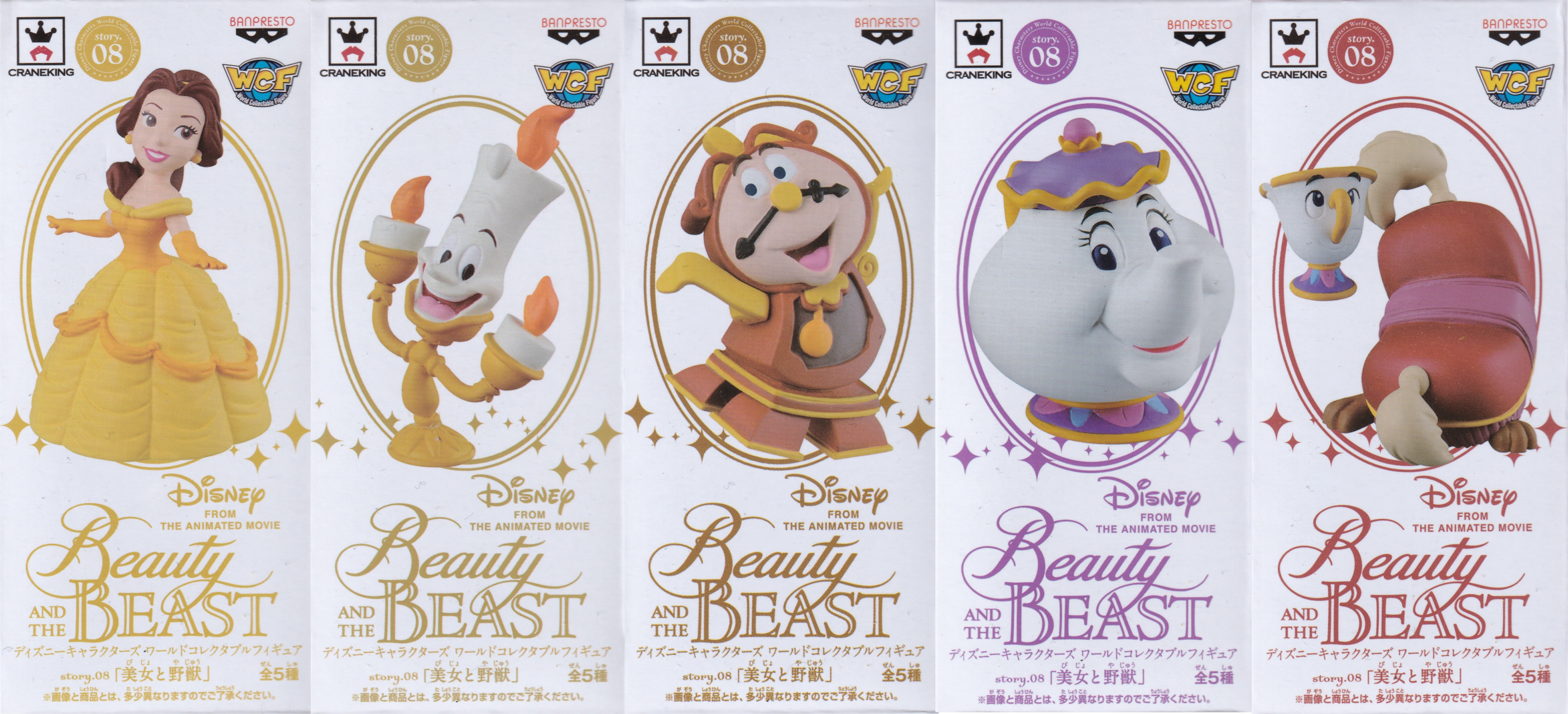 ディズニーキャラクターズ WCF story.08 「美女と野獣」 全5種 発売元 : バンプレスト 名前 : ベル 番号 : A 前面 後面 左横 右横 発売元 : バンプレスト 名前 : ルミエール 番号 : B 前面 後面 左横 右横 発売元 : バンプレスト 名前 : コグスワース 番号 : C 前面 後面 左横 右横 発売元 : バンプレスト 名前 : ポット夫人 番号 : D 前面 後面 左横 右横 発売元 : バンプレスト 名前 : チップ&フットスツール 番号 : E 前面 後面 左横 右横