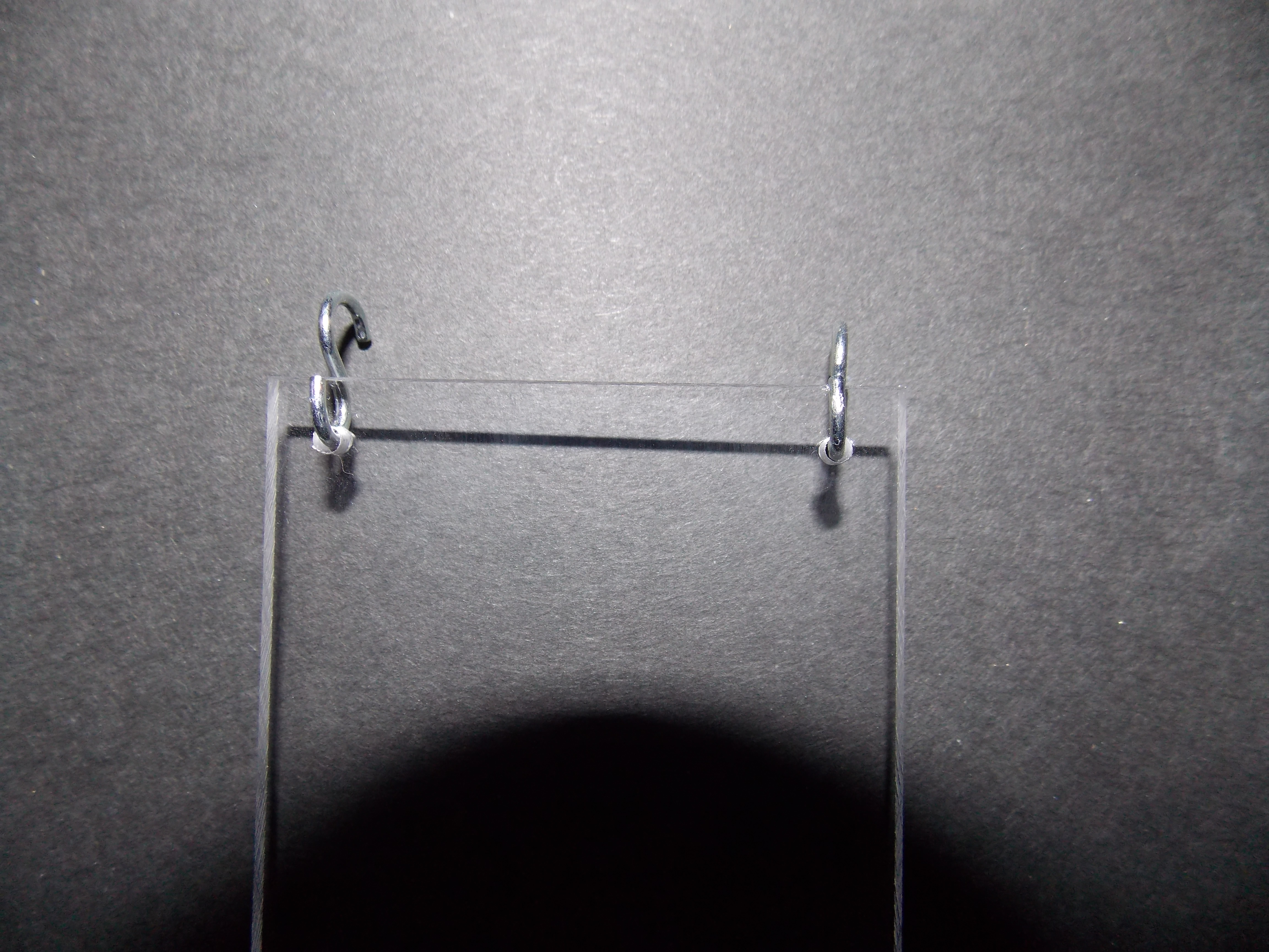 アクリル板とボックスを重ねて、Φ3.0の穴を開けピンで留めています。