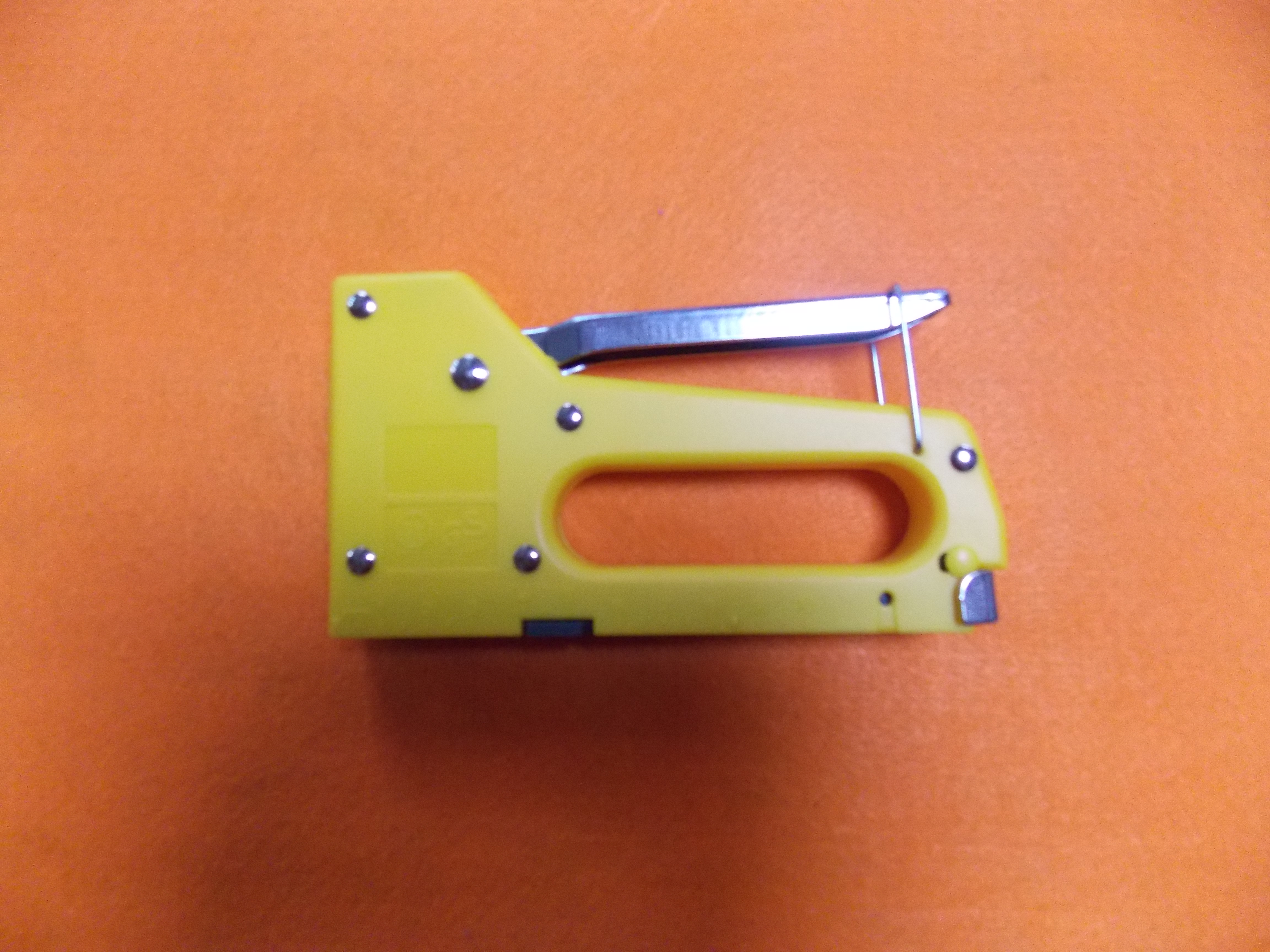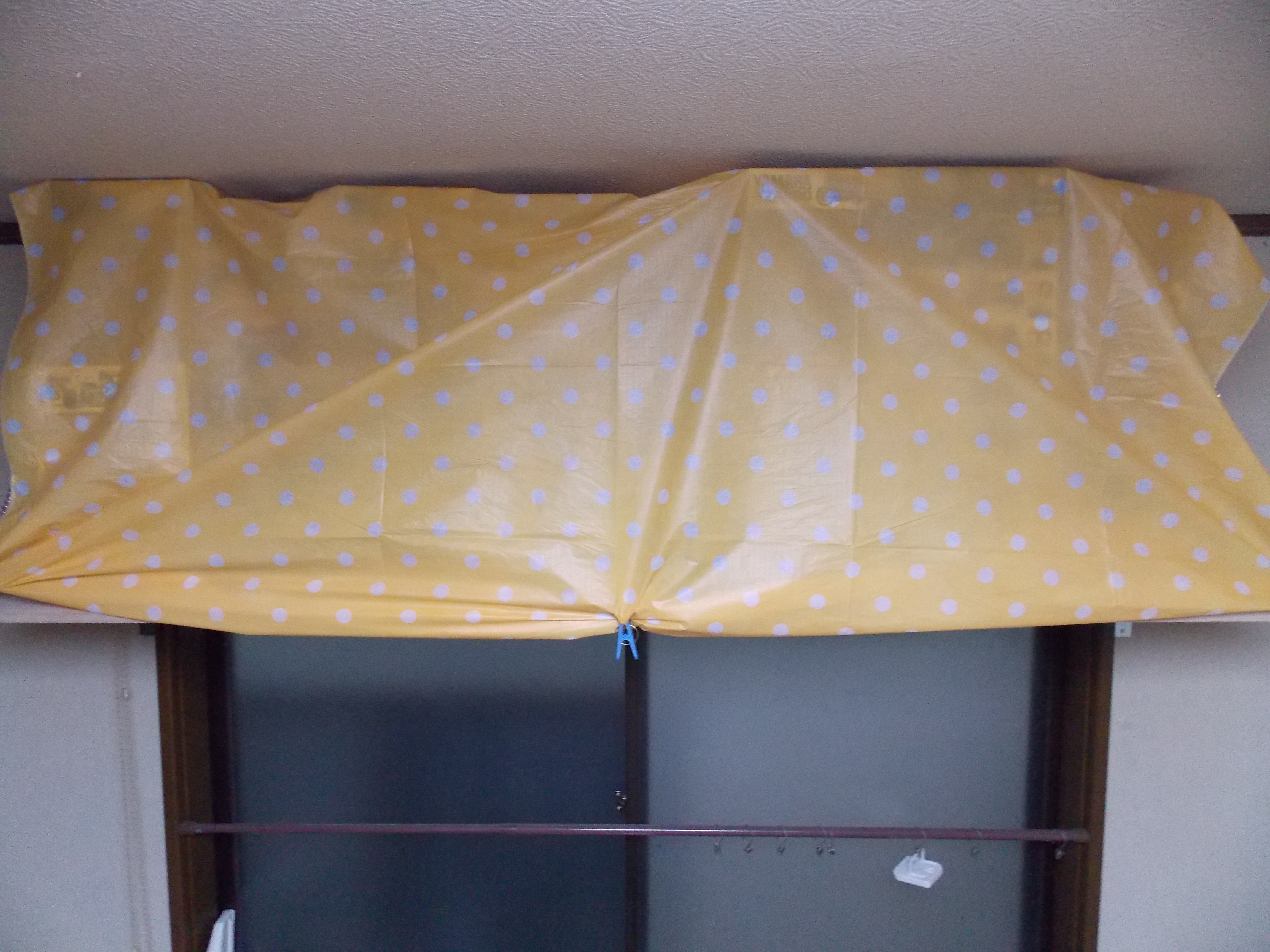 100均で買ったテーブルクロスをホッチキスでとめます。