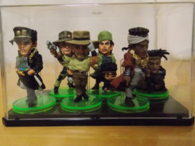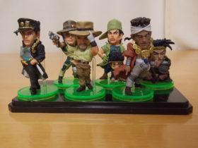このフィギュアの台座は幅が広いので1段に5体しか並べなかったが、小さい台座なら6体並びそうです。
