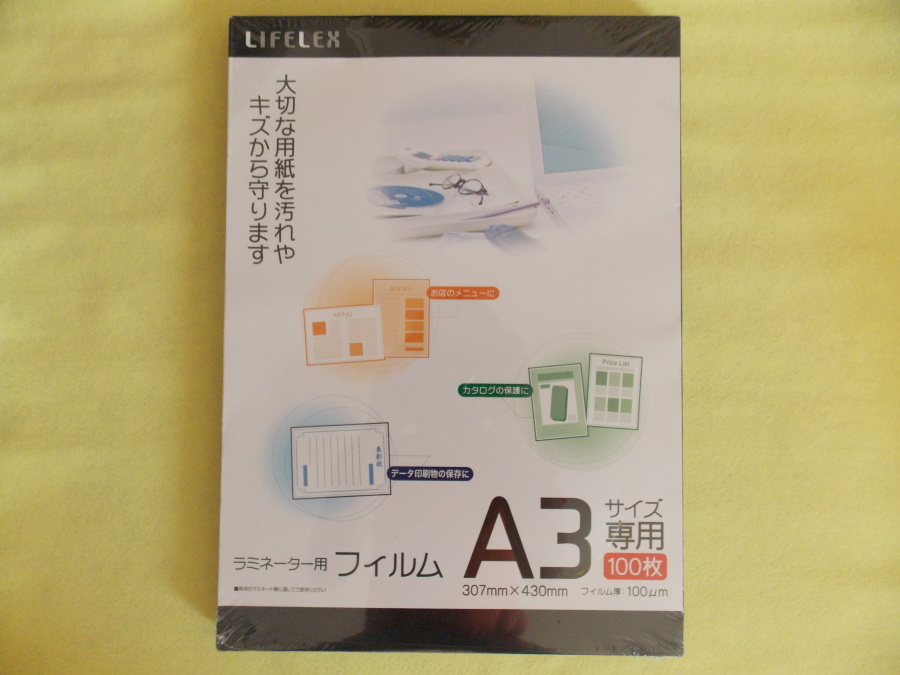 ラミネーター用フィルムに箱を好きな位置にセット。 |