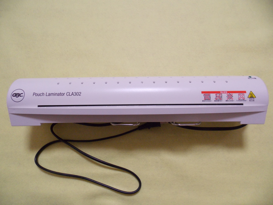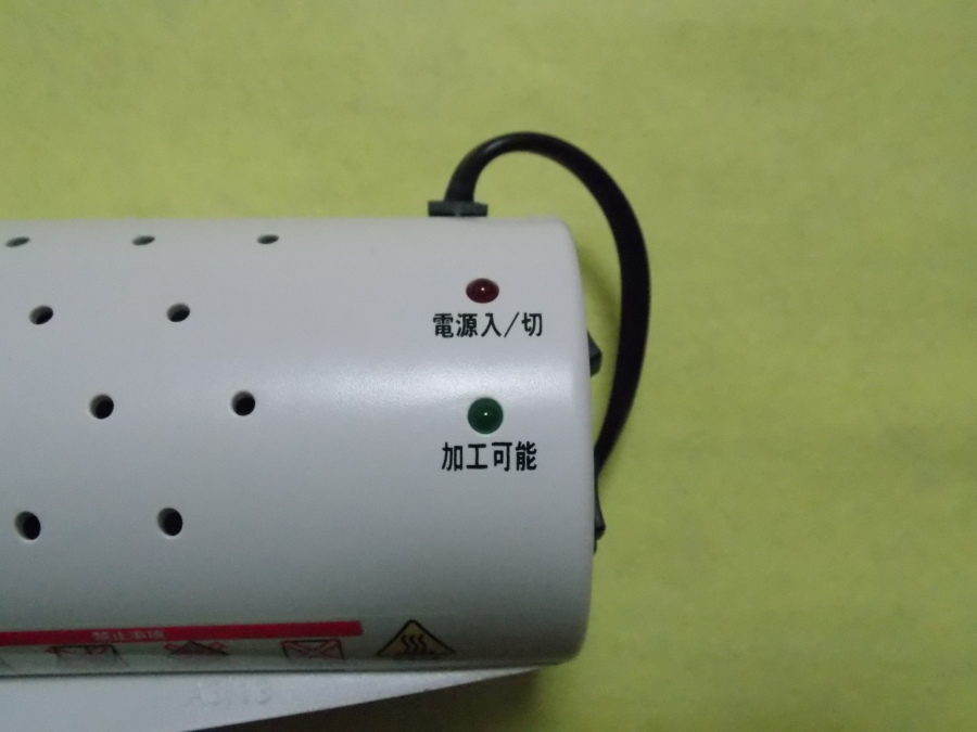 約5分後に加工可能が点灯し、ラミネート可能になる。後はフィルム挿入口に真っ直ぐに差し込むだけ。 |