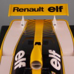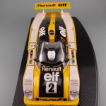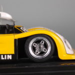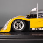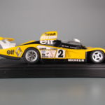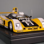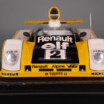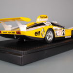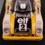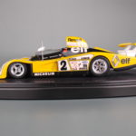 アルピーヌ・ルノーA442Bターボについて>1978年、挑戦3度目にして念願のル・マン制覇をはたしたオールフランス製レーシングカーがアルピーヌ・ルノーA442Bターボです。76年、77年に走ったA442の改良型で、シャーシはパイプを組合わせたスペースフレーム構造を採用。流れるようなロングテールボディは全体的に丸味をおび、コクピットに取りつけられた半透明のカバーが大きな特徴となっています。エンジンはルノーV型6気筒DOHC1997ccで、ターボチャージャー1基を装備。最高速度は時速約350キロを記録しました。フランス人のディディエ・ピローニとジャン・ピエール・ジャッソーのドライブで、4年ぶりにル・マンの栄光を地元フランスに持ち帰ったのです。