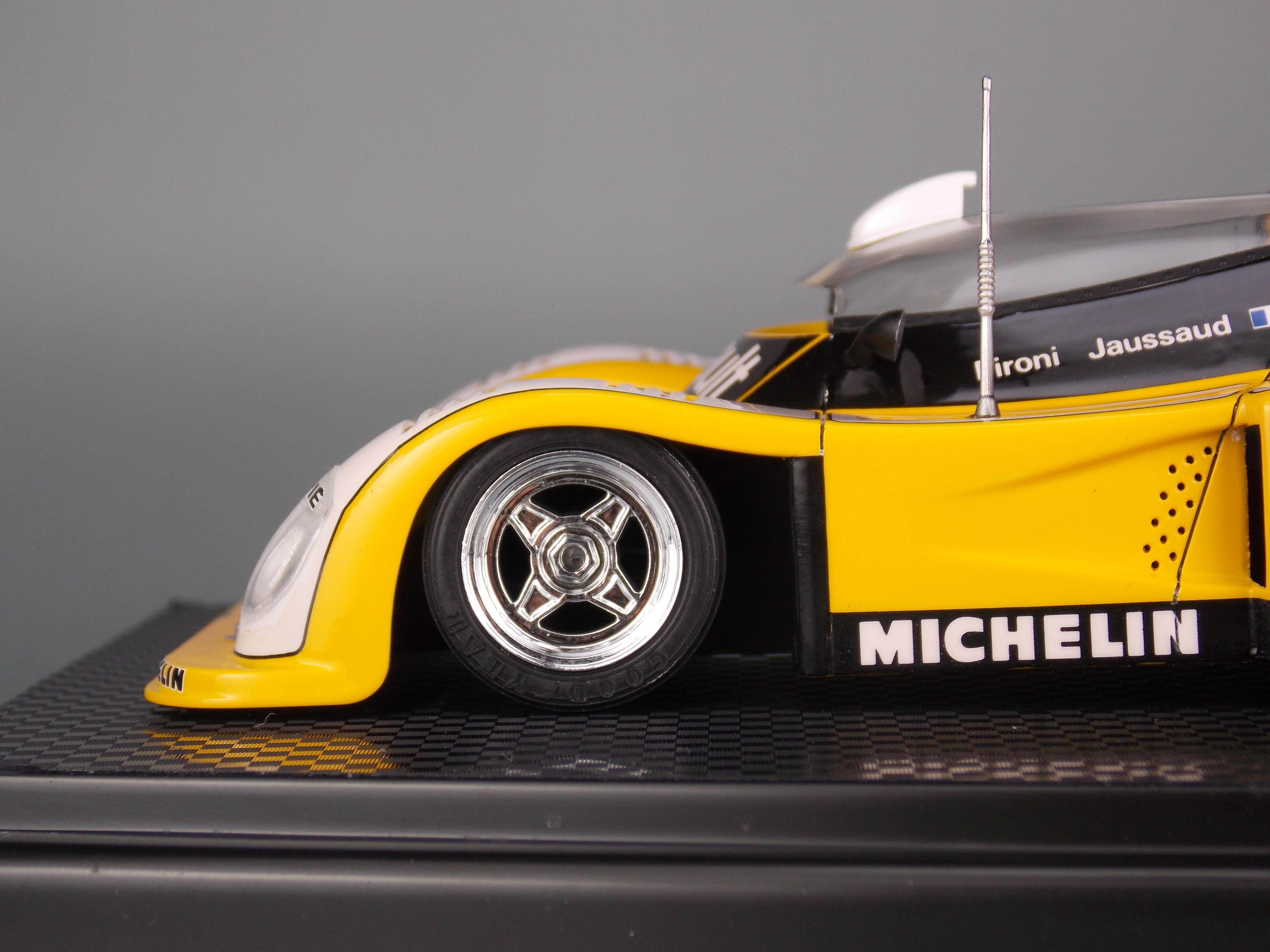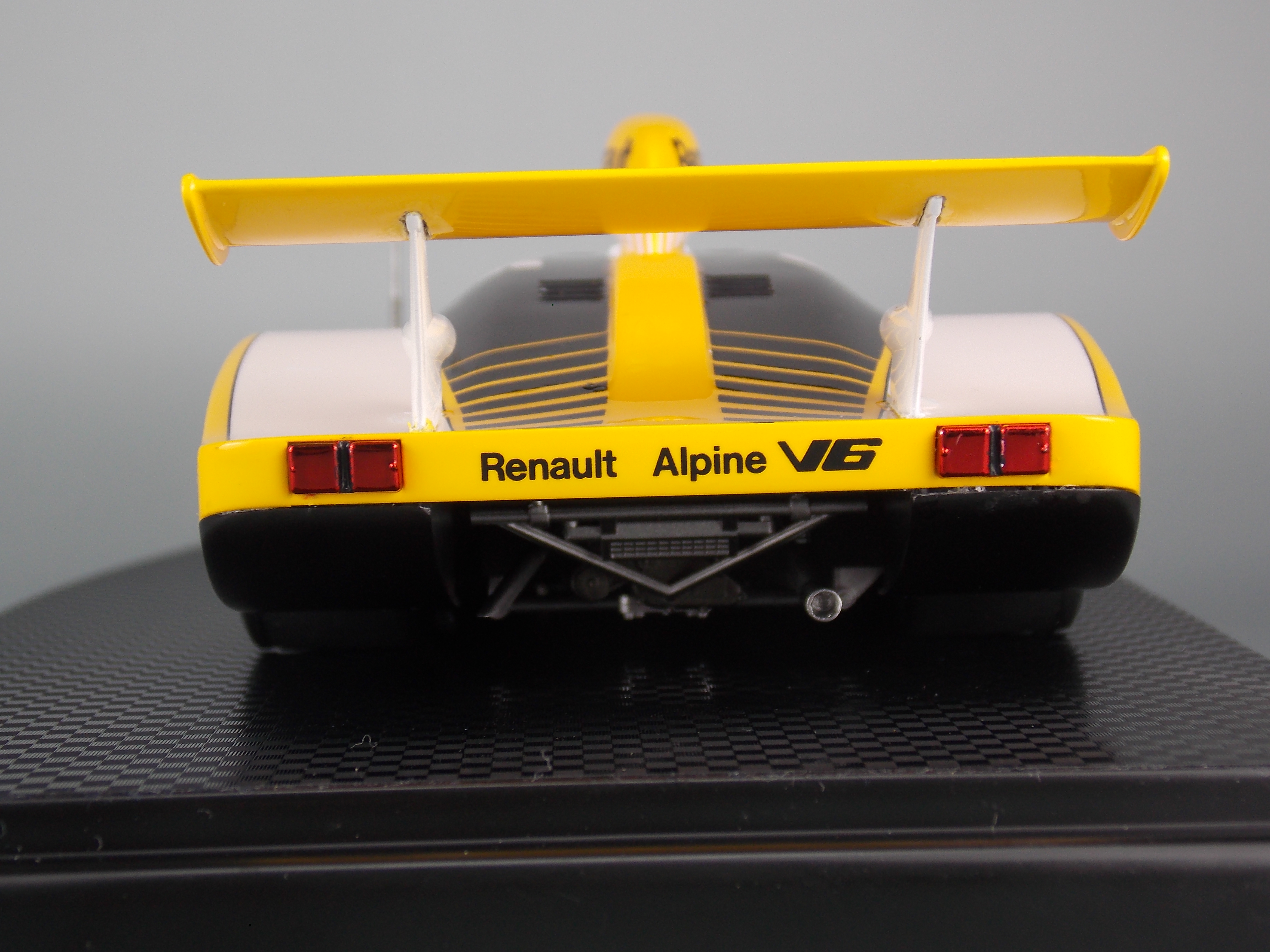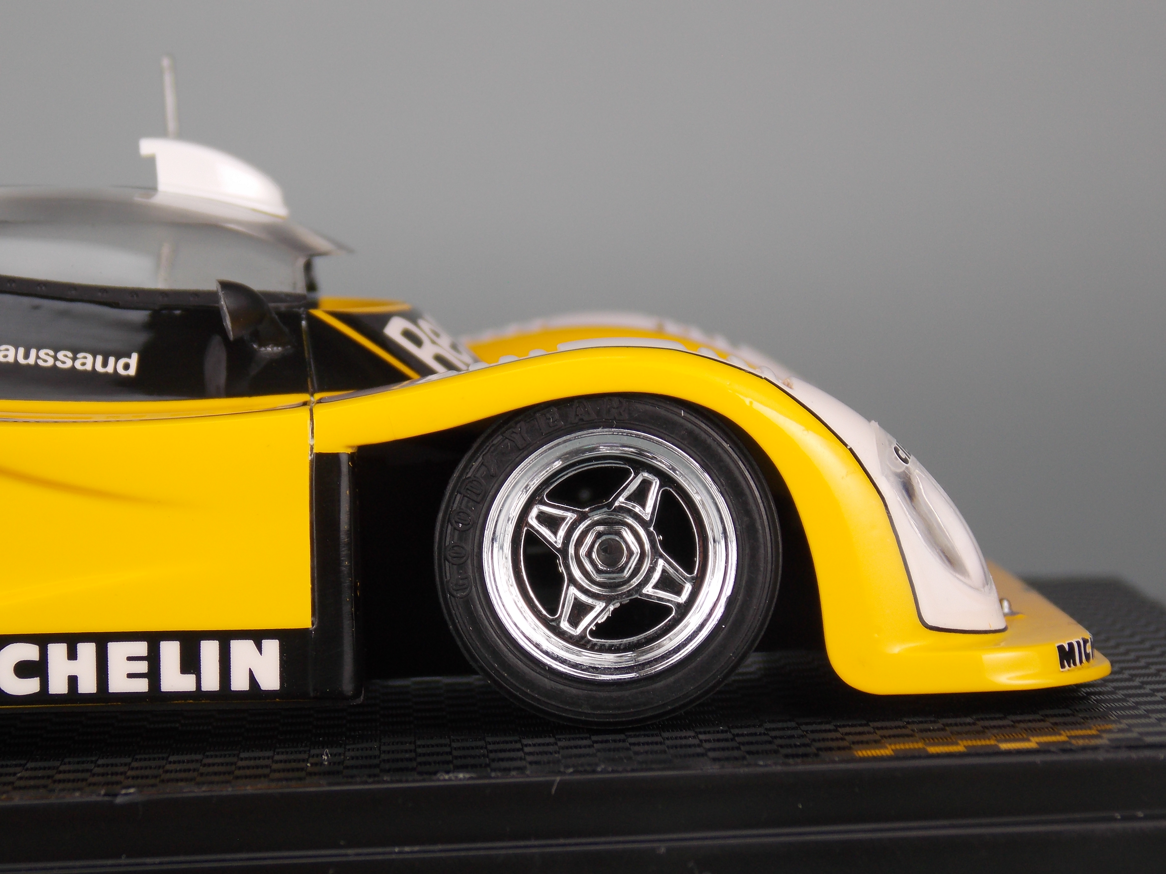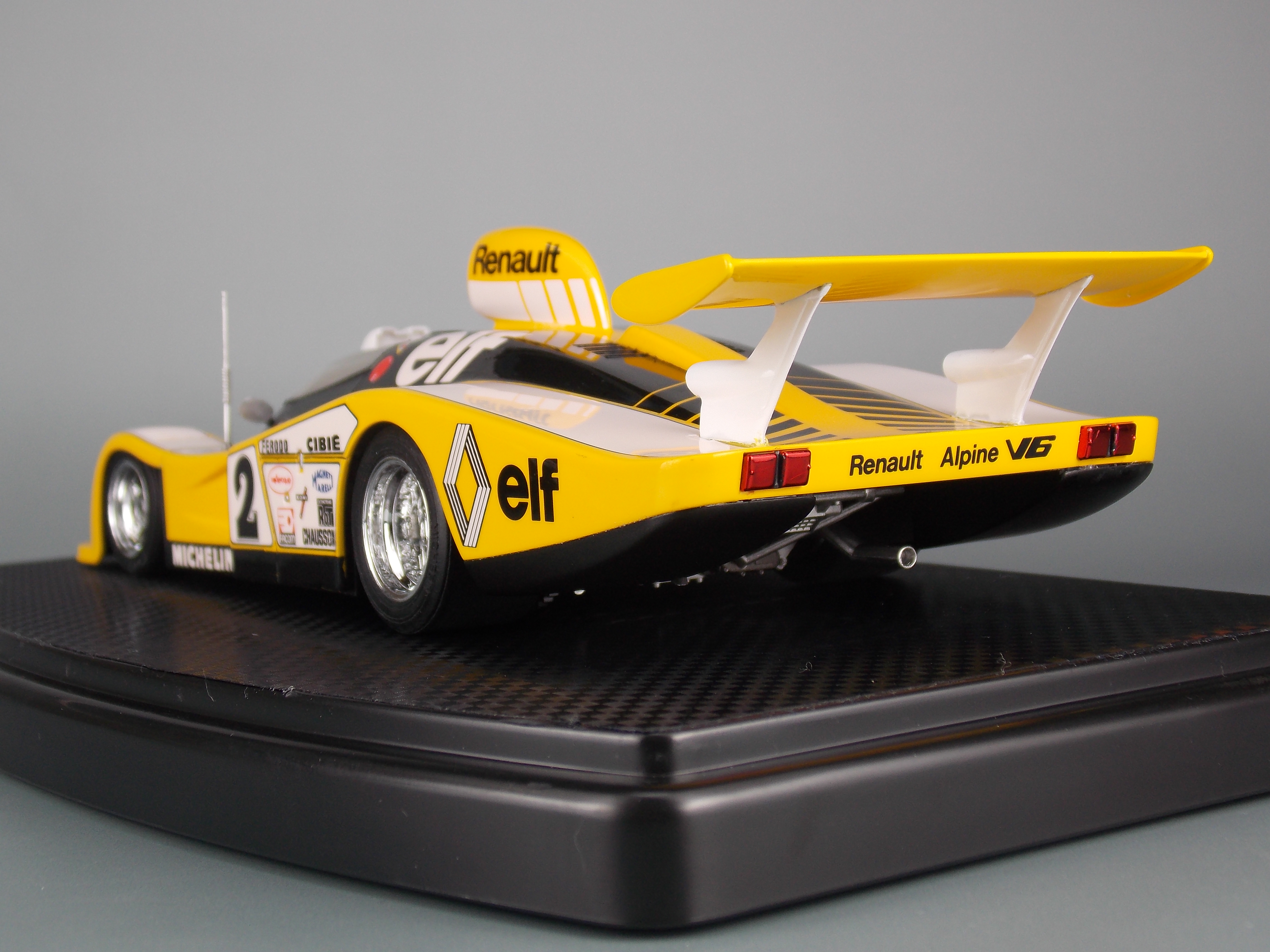 アルピーヌ・ルノーA442Bターボについて>1978年、挑戦3度目にして念願のル・マン制覇をはたしたオールフランス製レーシングカーがアルピーヌ・ルノーA442Bターボです。76年、77年に走ったA442の改良型で、シャーシはパイプを組合わせたスペースフレーム構造を採用。流れるようなロングテールボディは全体的に丸味をおび、コクピットに取りつけられた半透明のカバーが大きな特徴となっています。エンジンはルノーV型6気筒DOHC1997ccで、ターボチャージャー1基を装備。最高速度は時速約350キロを記録しました。フランス人のディディエ・ピローニとジャン・ピエール・ジャッソーのドライブで、4年ぶりにル・マンの栄光を地元フランスに持ち帰ったのです。