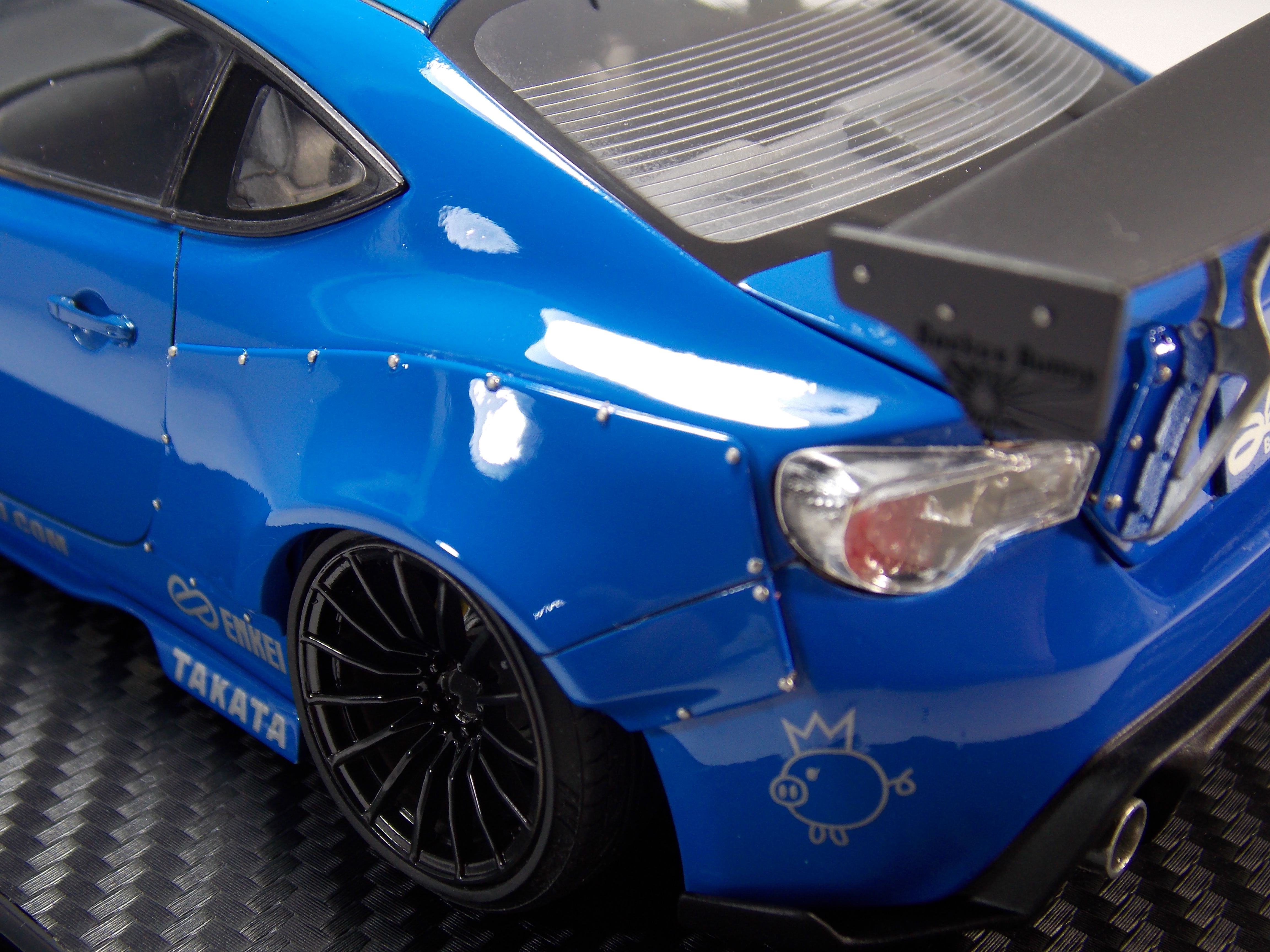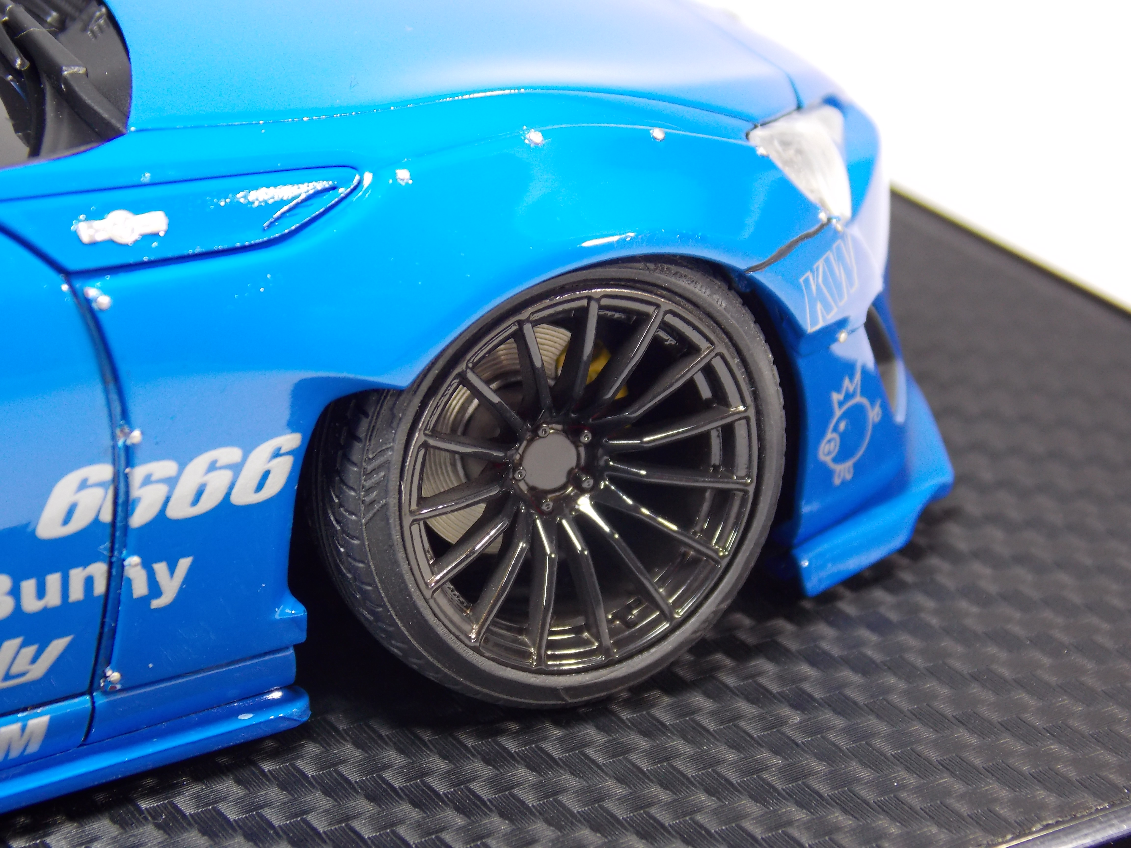 <感想>フェンダーを付けるのにボディーを削るのにすごく時間がかかったのと、インセクトピンを付ける穴を開けるのとインセクトピンを付けるのが苦労しました。何本もインセクトピンが飛んでいきイライラしながら接着しました。今までタミヤ製品中心で製作してきたのですが、今回、アオシマ製品を触っていて、タミヤ製品と違う構造の所もあり苦労しました。満足度としたら50点です。まだまだ粗さが目立ちます。こちらの製作日記はこちらから。