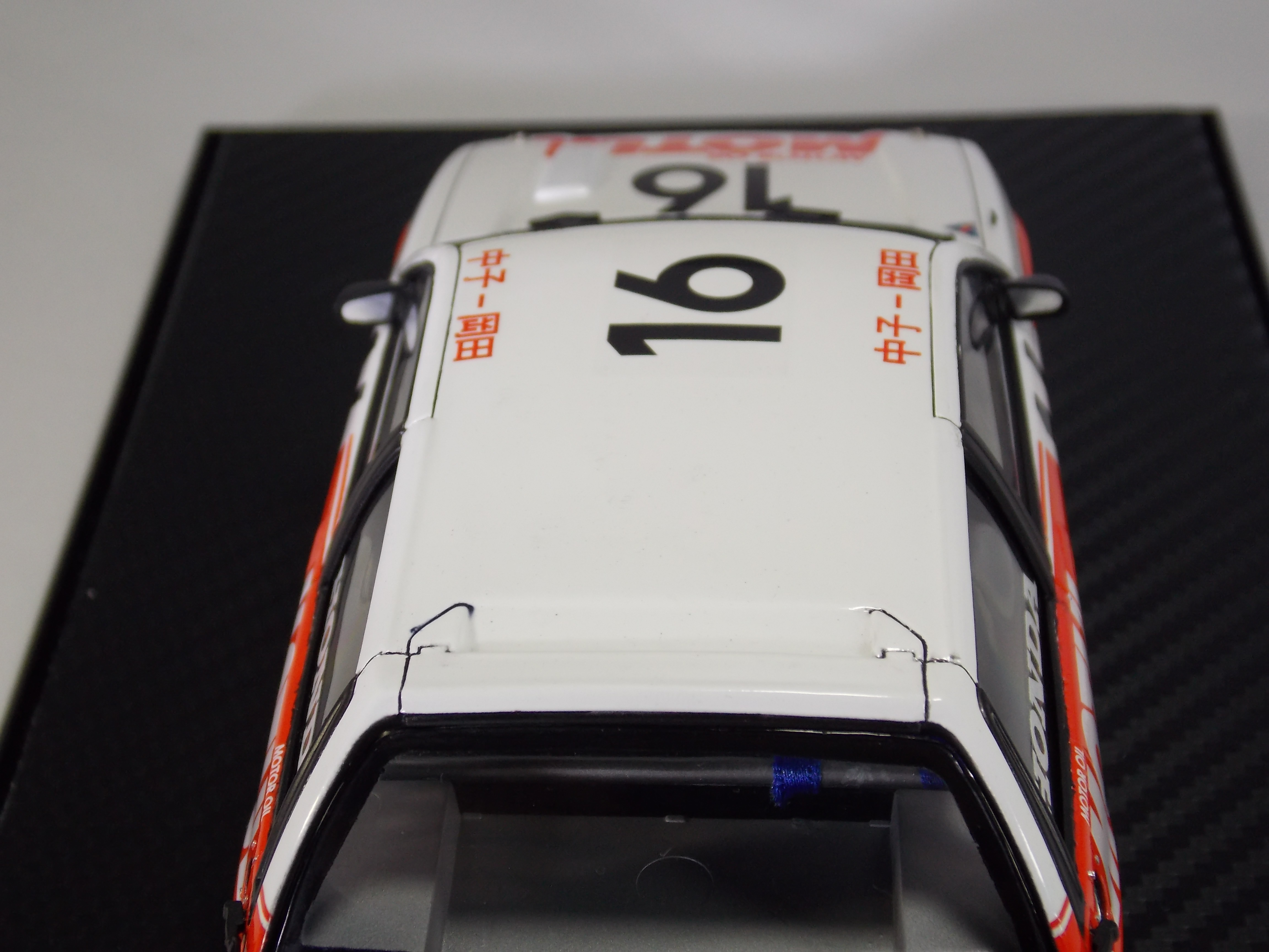 <感想>このキットかなり古いのをオークションで落札したのでデカールが死んでいました。ちょっと箱絵とは違いますが何と完成できました。ボンネットピン、シートベルト、給油口周りなど少し改造しました。まだまだ納得いく出来ではないので満足度は30点です。デカールを貼るより色を塗り分けた方が綺麗に仕上がった様な気がします。次のキット製作はその辺も考慮して製作していきます。