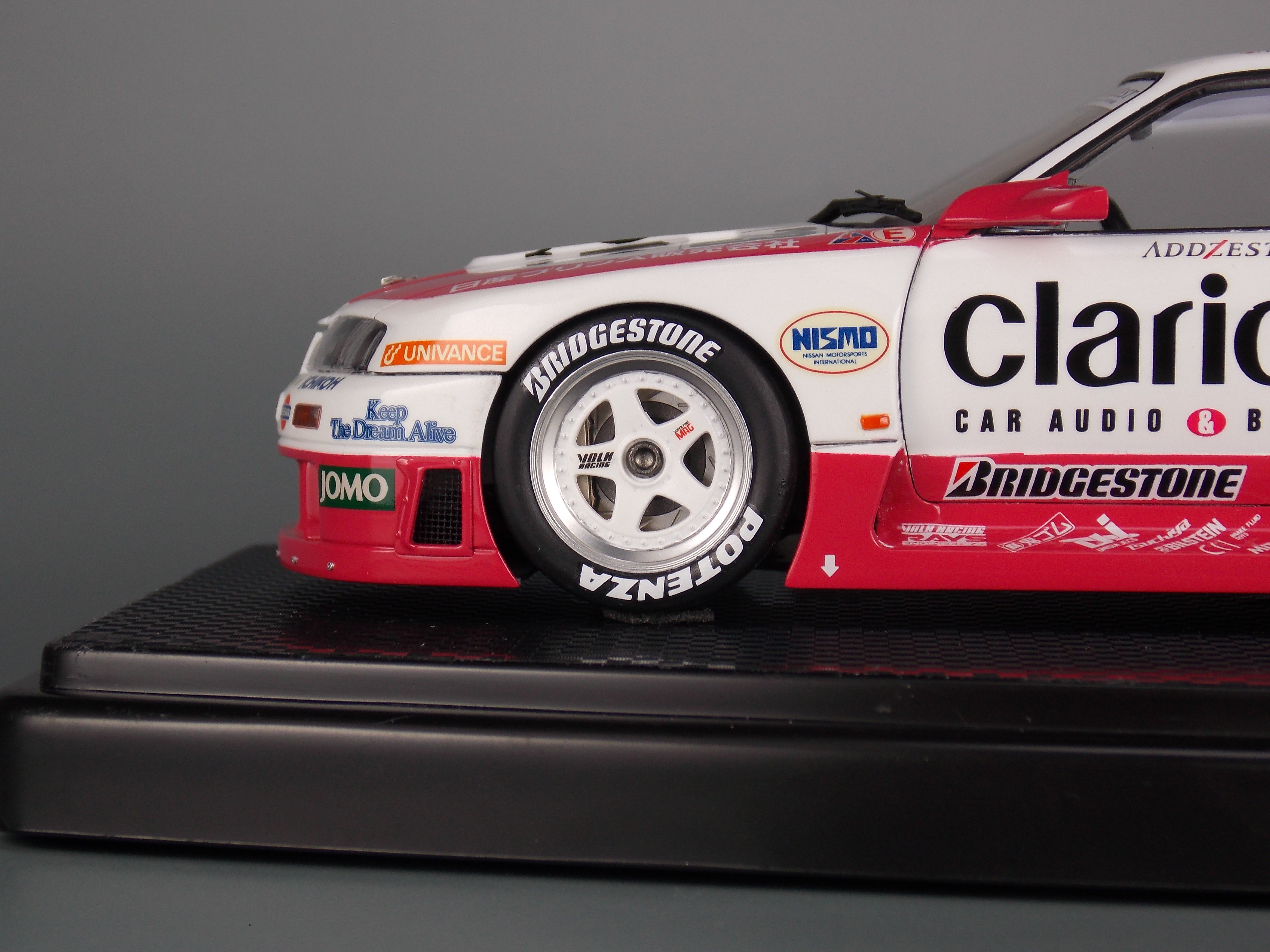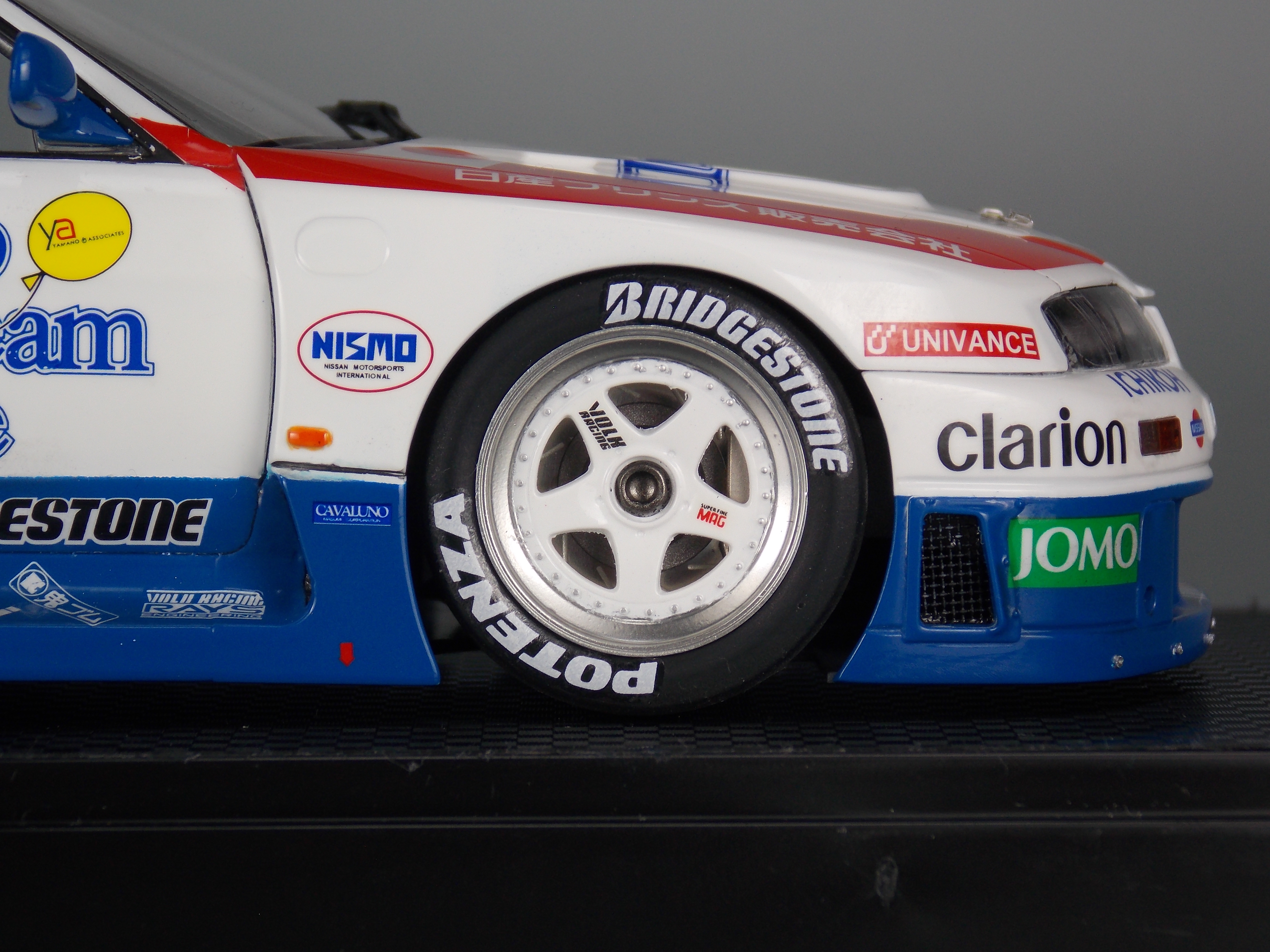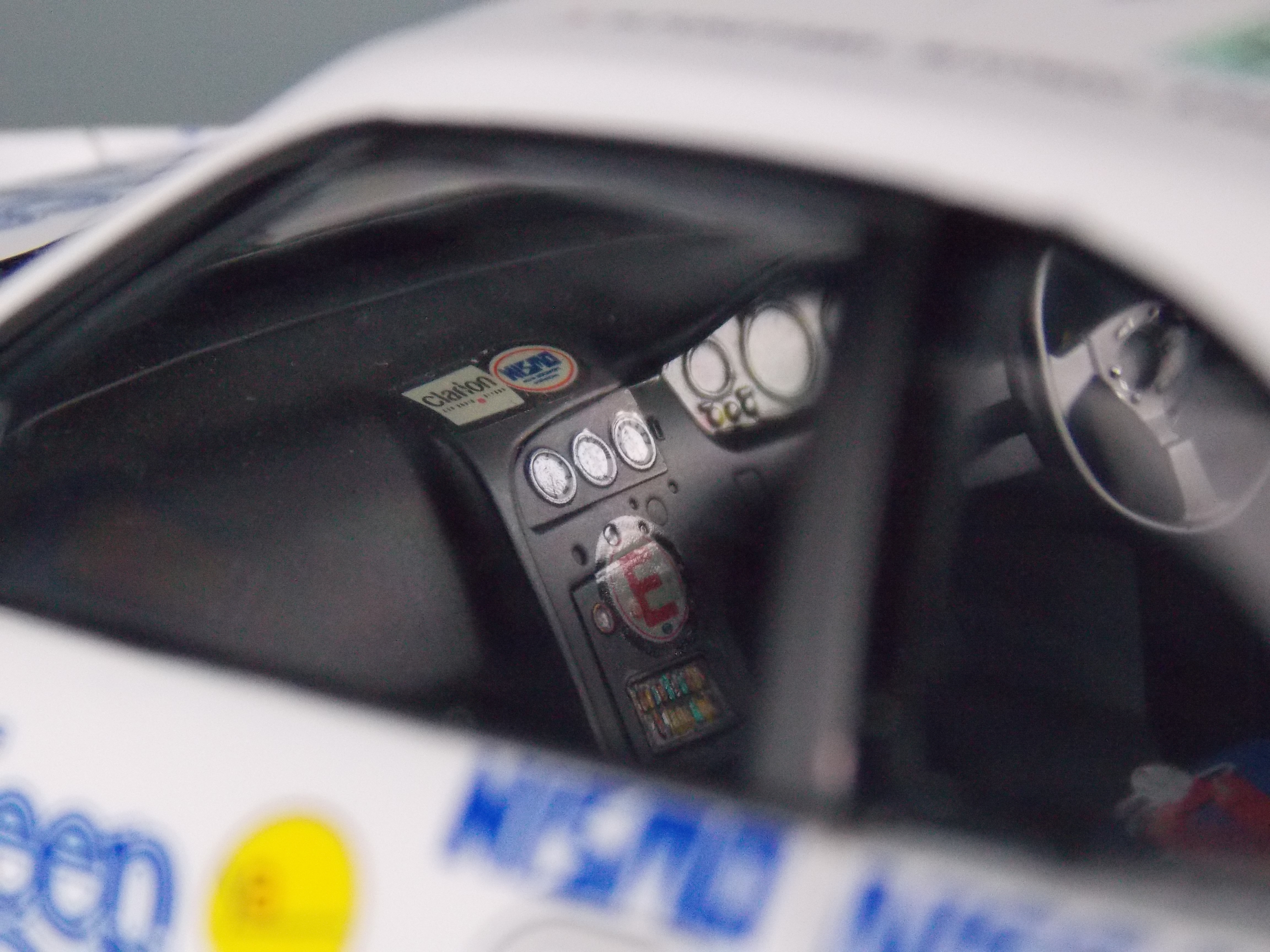 <感想>このキットはかなり古いのをオークションで落札したのでデカールが死んでいました。購入したデカールで代用しました。一部デカールの接着があまくシルバリングしています。ボンネットピンやキルスイッチなど自作やエッチングパーツで代用しています。ホイールの塗り分けがいまいち上手くいかなく2回塗り直しました。まだまだ粗い所があり満足度は30点です。時間がかかった割には納得いかないです。