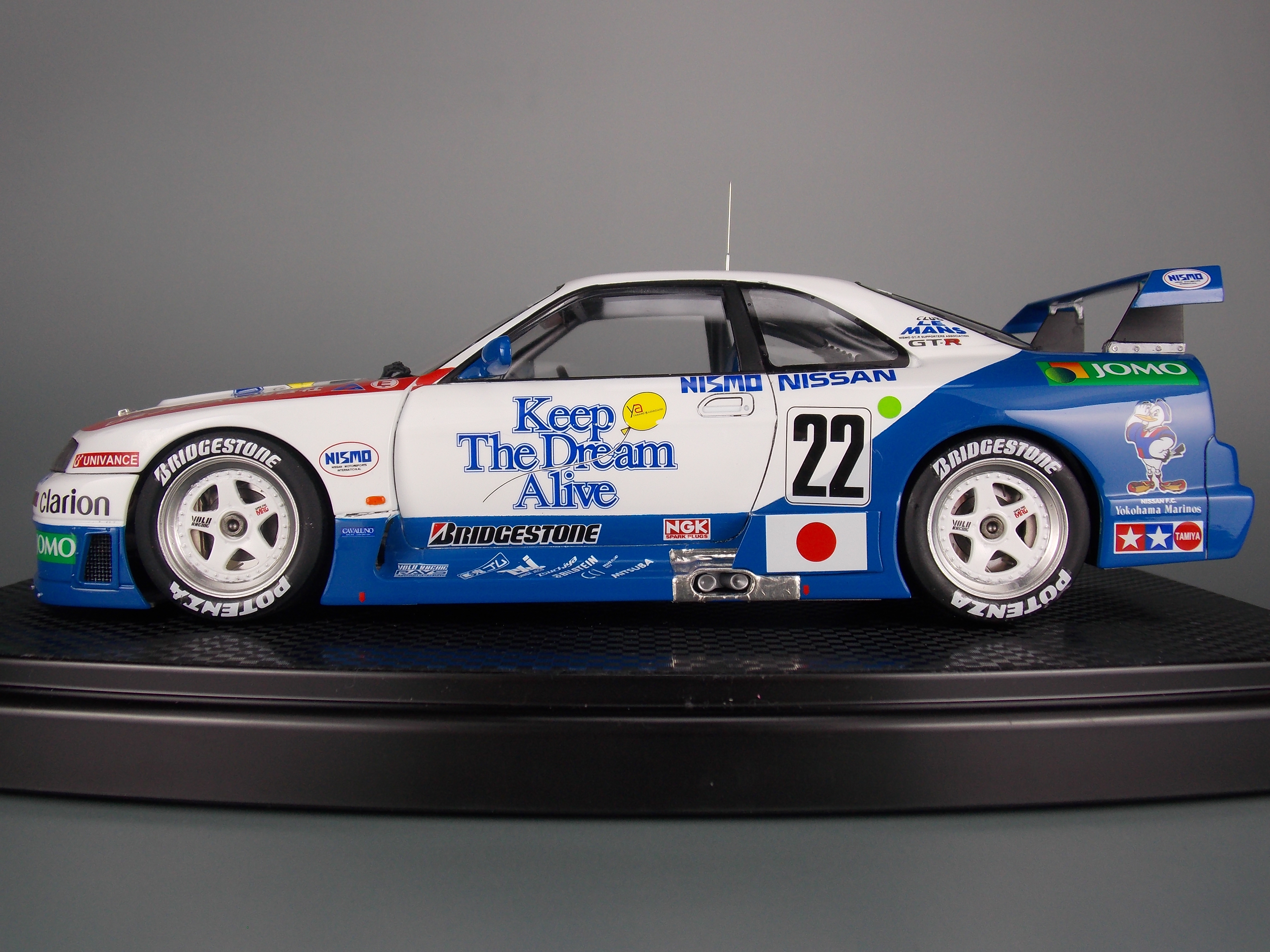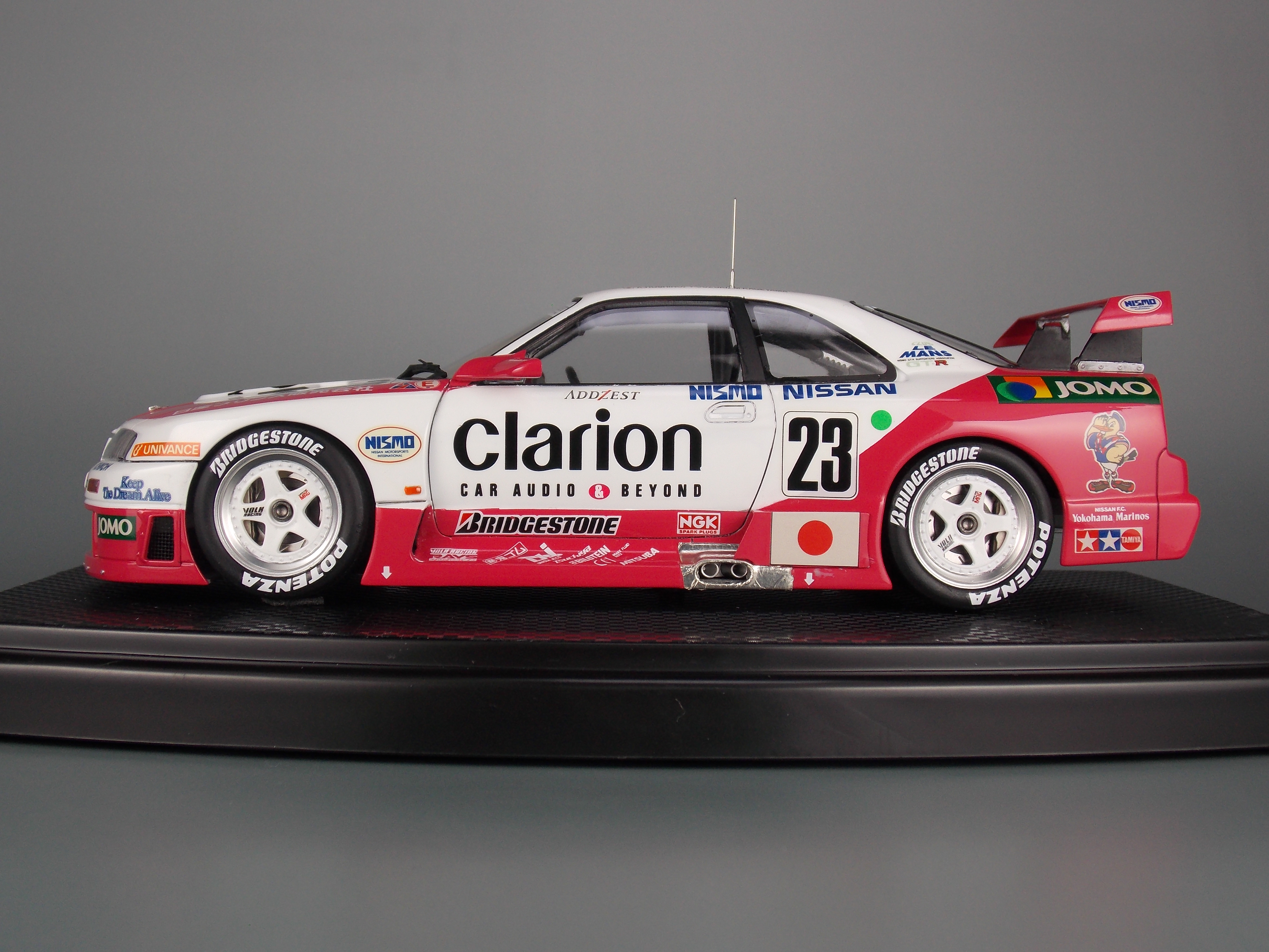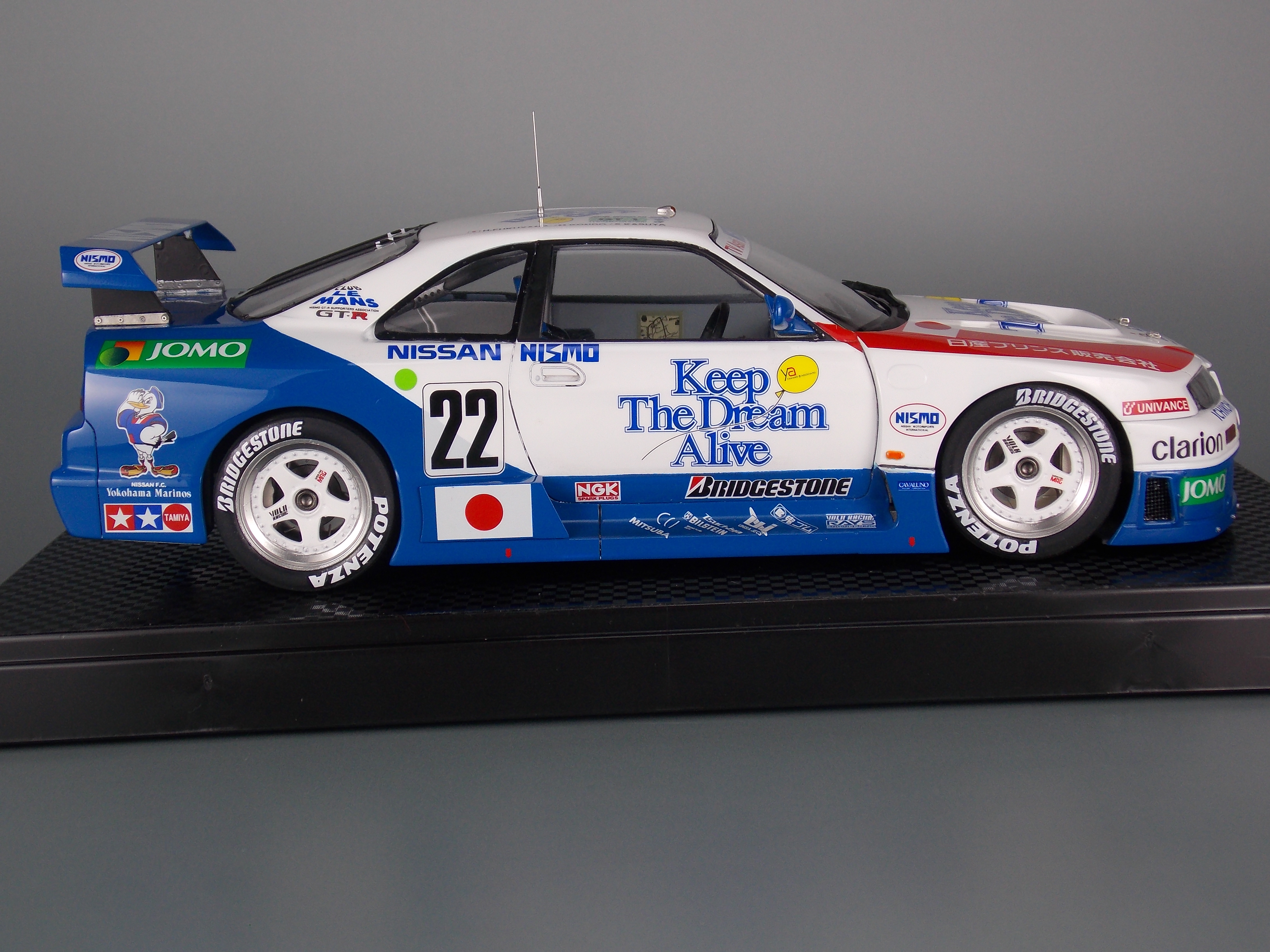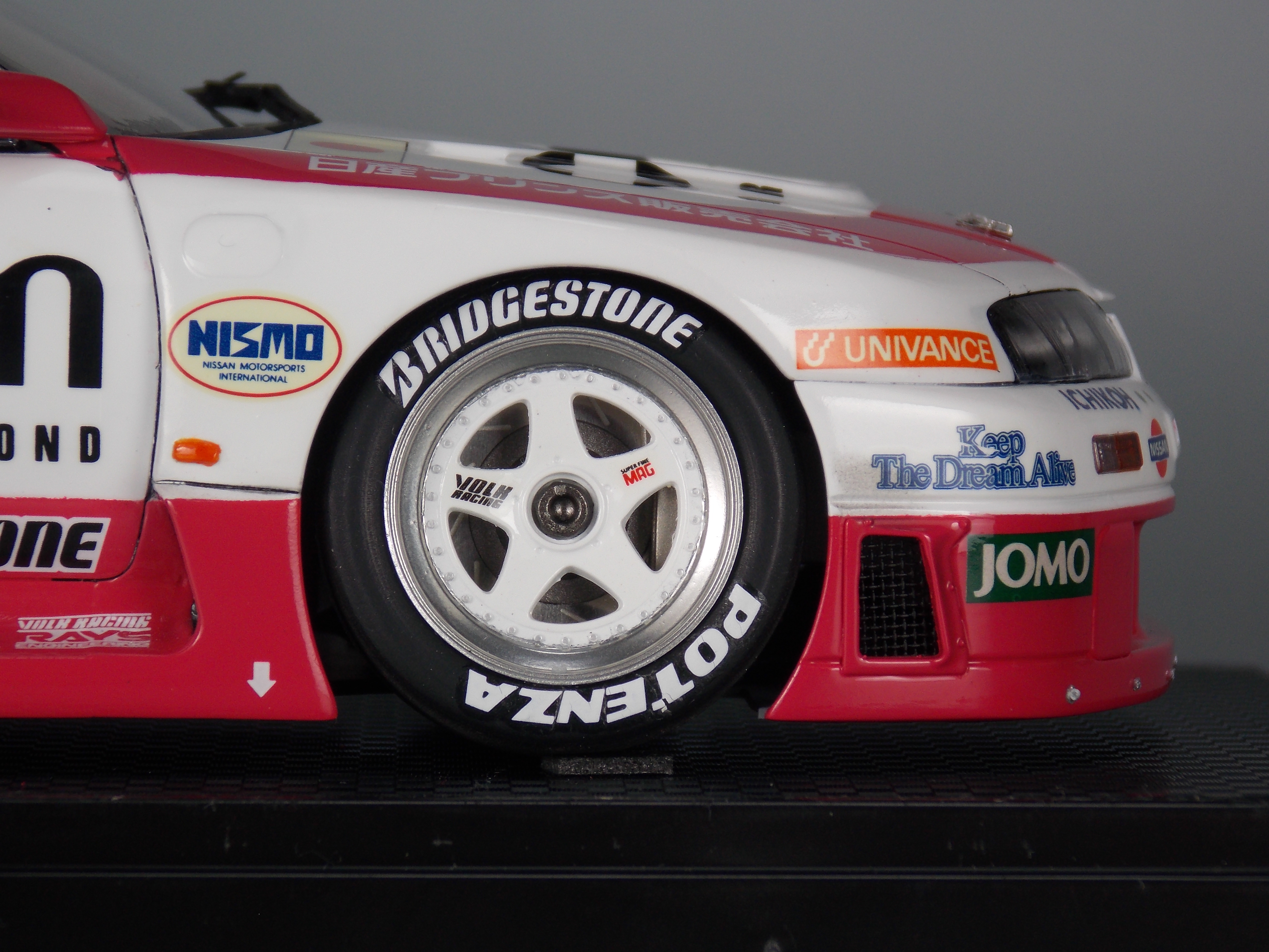 <感想>このキットはかなり古いのをオークションで落札したのでデカールが死んでいました。購入したデカールで代用しました。一部デカールの接着があまくシルバリングしています。ボンネットピンやキルスイッチなど自作やエッチングパーツで代用しています。ホイールの塗り分けがいまいち上手くいかなく2回塗り直しました。まだまだ粗い所があり満足度は30点です。時間がかかった割には納得いかないです。