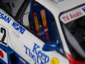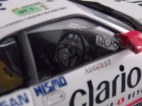 <カルソニック・プリメーラ JTCCについて>1994年の全日本ツーリングカー選手権最終戦となったインターTECにおいて、星野一義選手のドライブで優勝を飾ったのがカルソニック・プリメーラです。290馬力オーバーの2リットル4気筒エンジンを搭載し、室内はロールケージが張り巡らされ、足回りも大幅に強化されています。