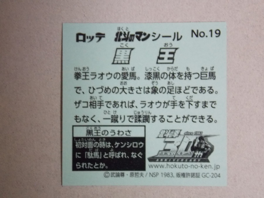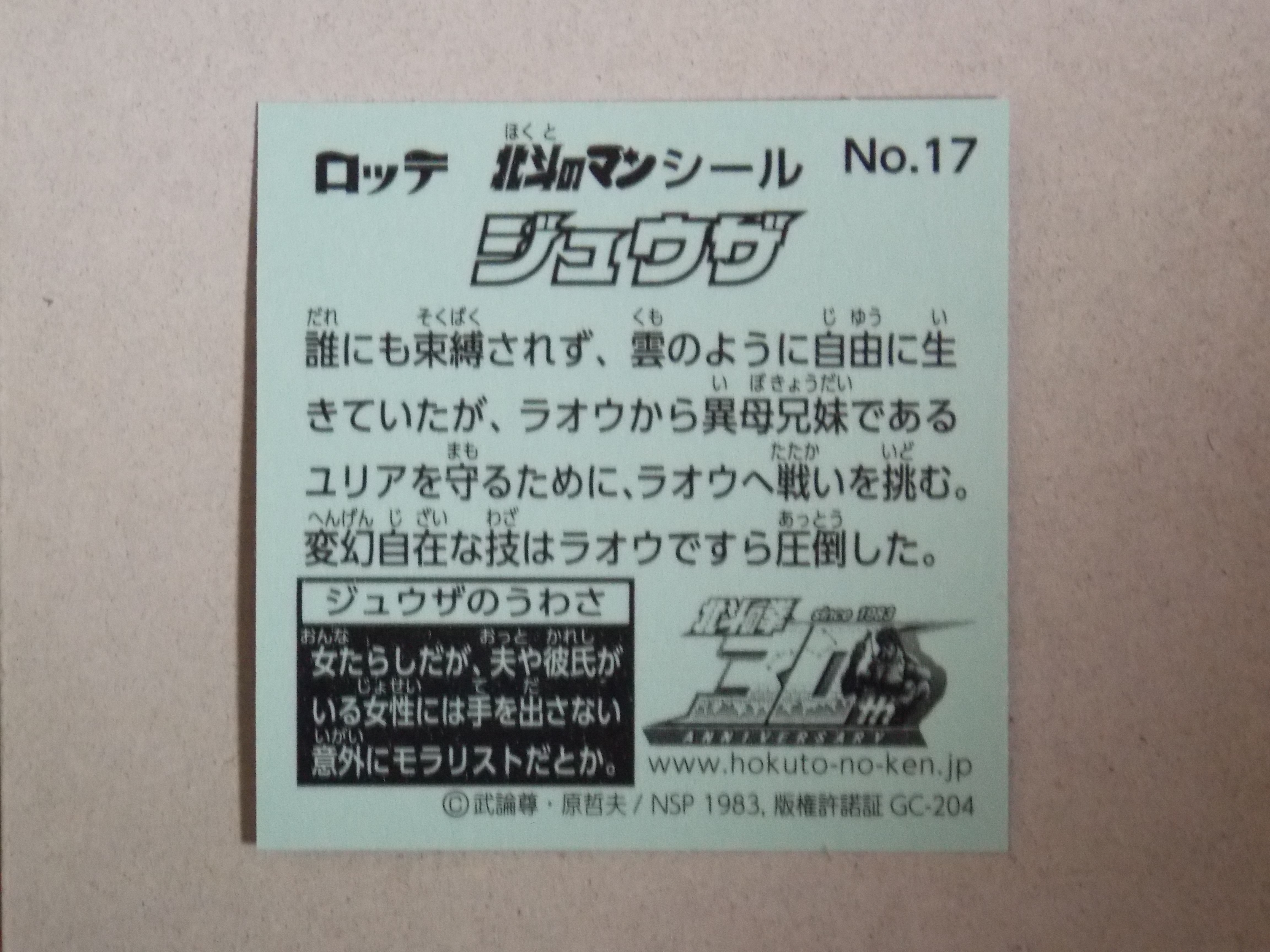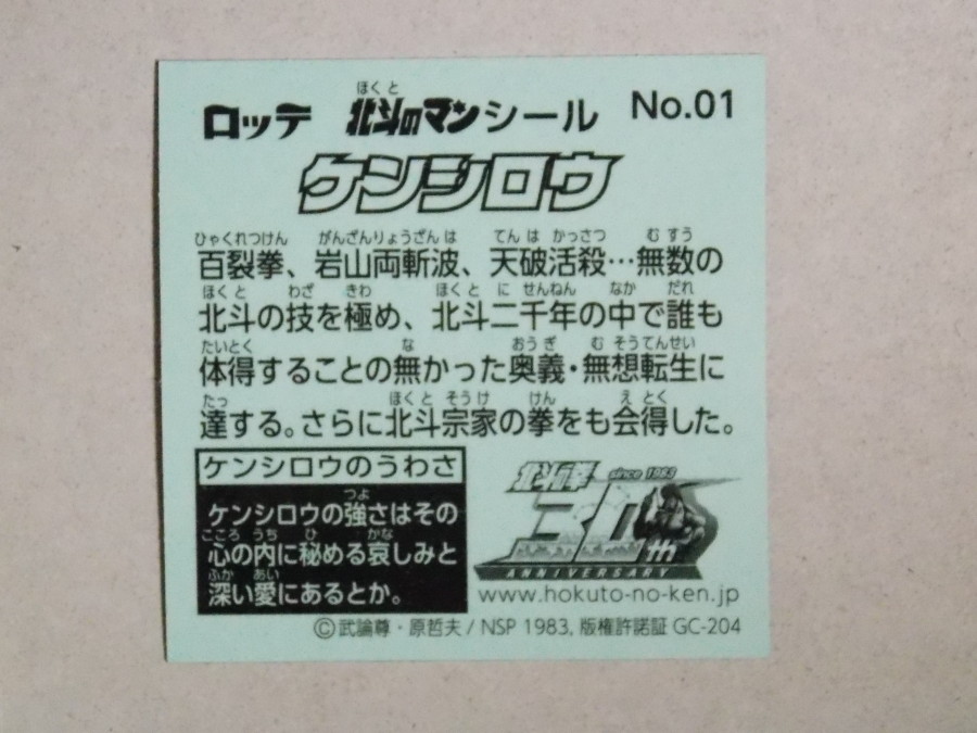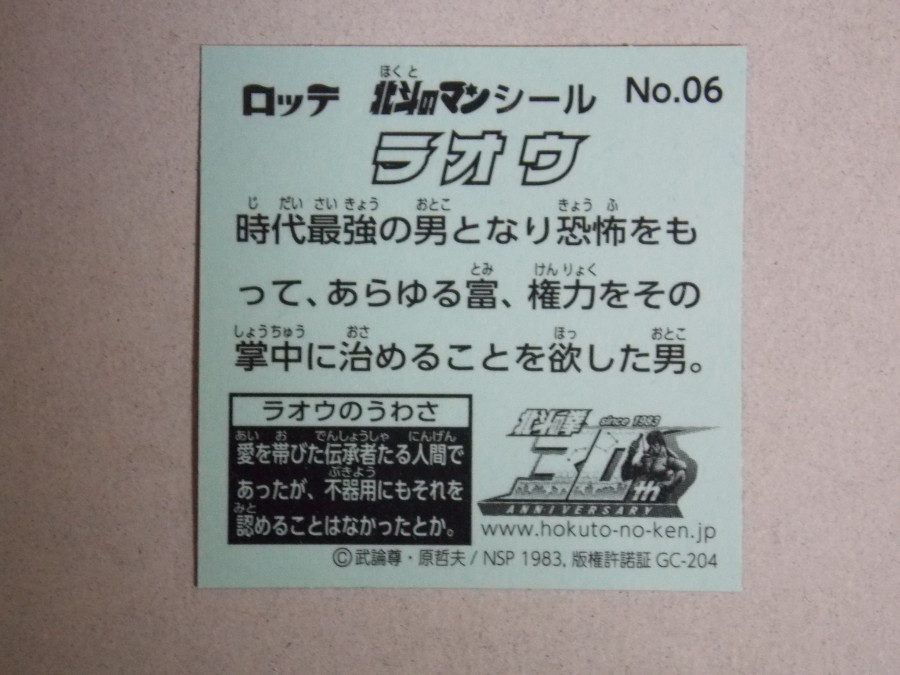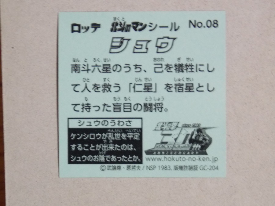 表絵は2種類(ラオウバージョン、ケンシロウバージョン)でシールの種類は計20種(ノーマル18種、シークレット2種)があります。